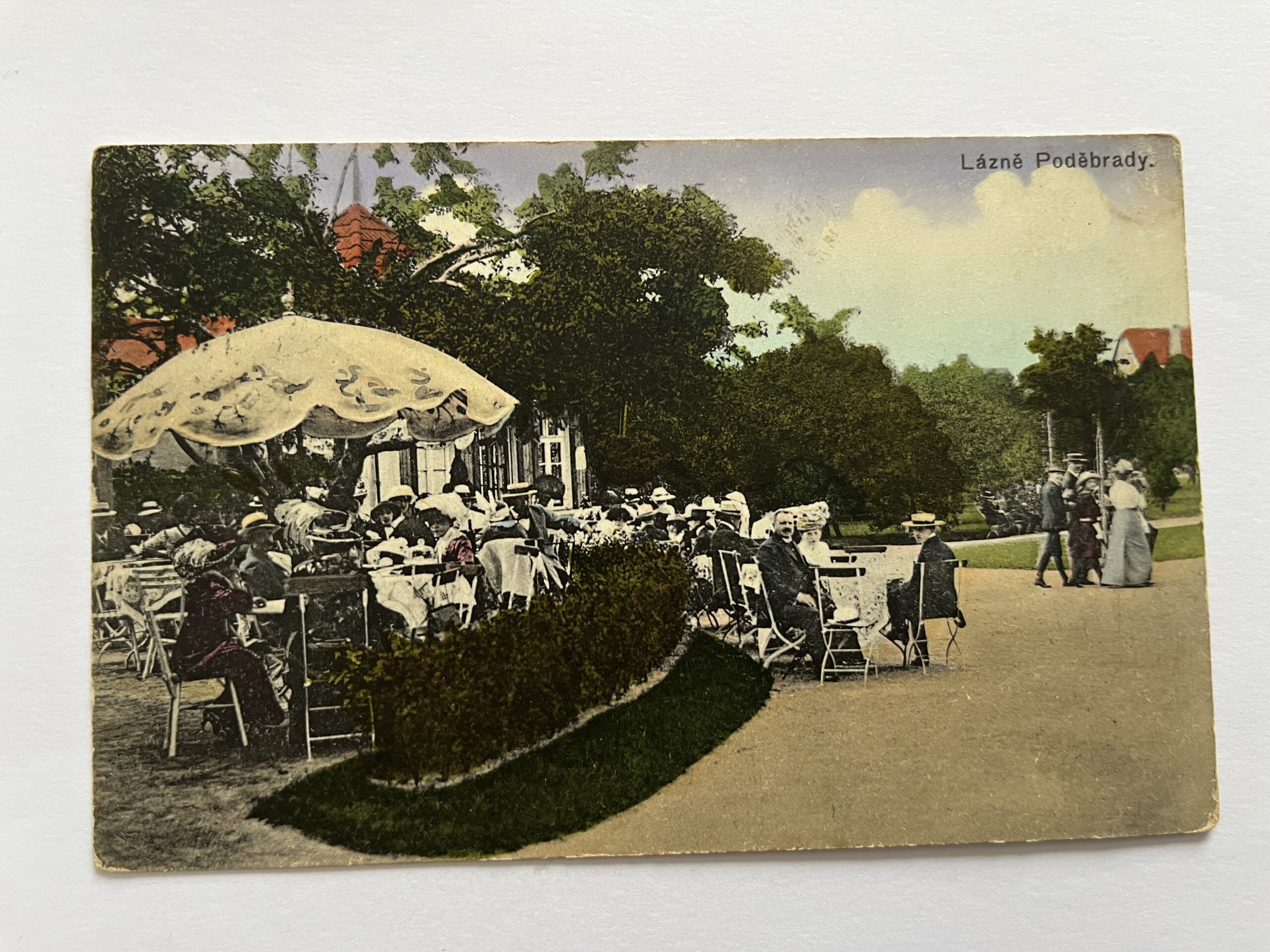 Pohlednice místopis Lázně Poděbrady, lázenští hosté, okr. Nymburk 1916