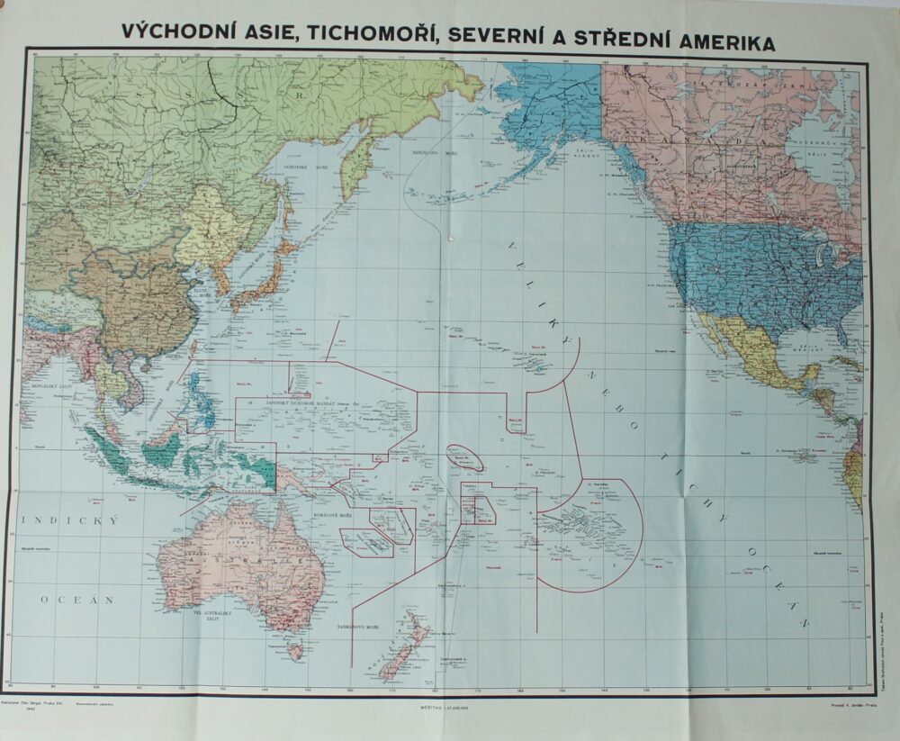 Mapa Východní Asie, Tichomoří, Amerika, J.Otto 1942