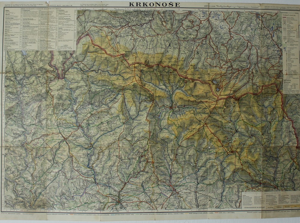 Mapa Krkonoše, měřítko 1:50.000, 1.pol.20.století