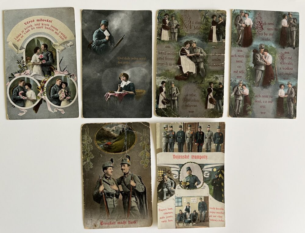 Vojenská pohlednice WW1 Polní lístky vesničani venkov Weiss série 8ks