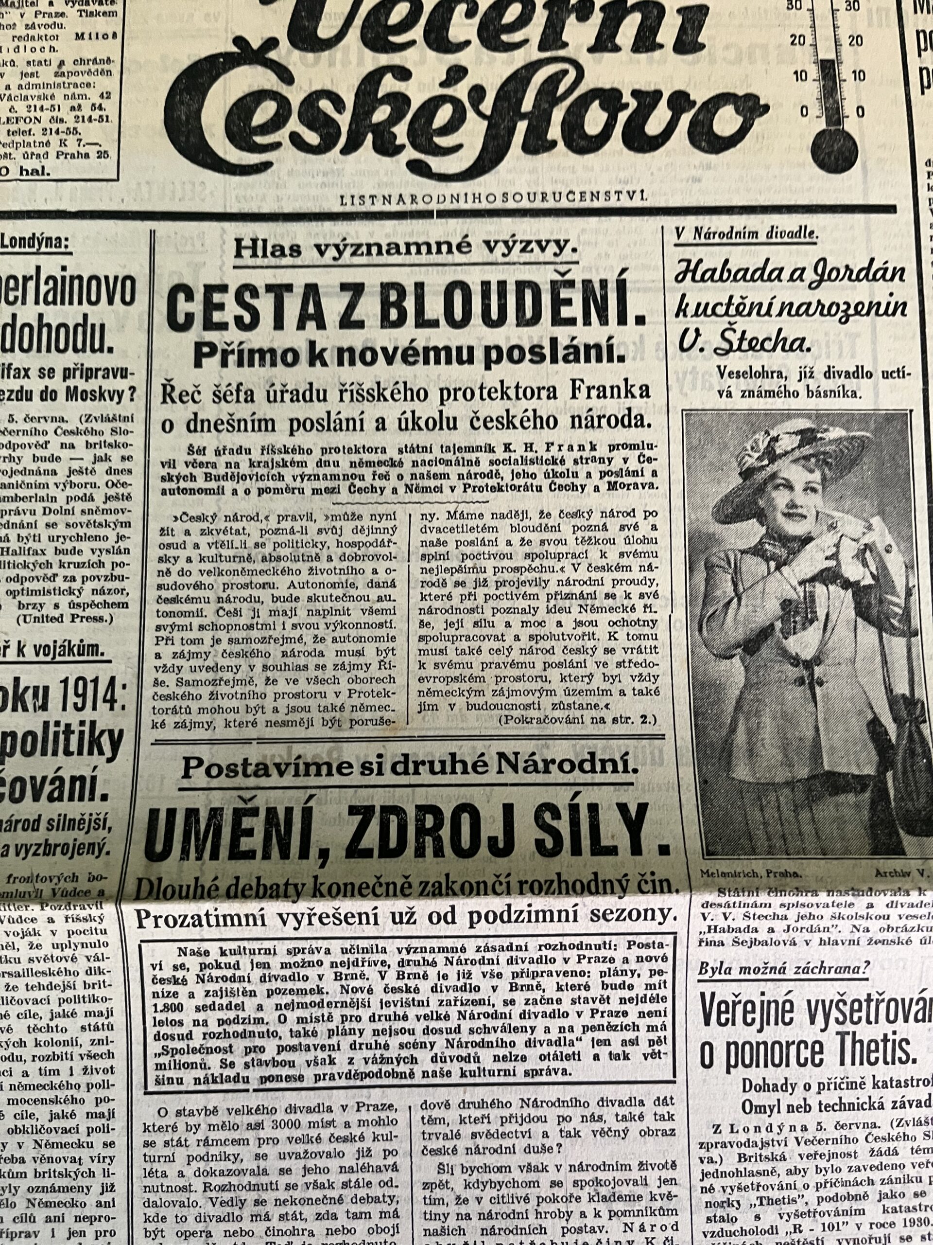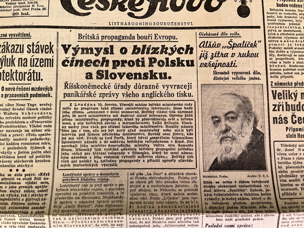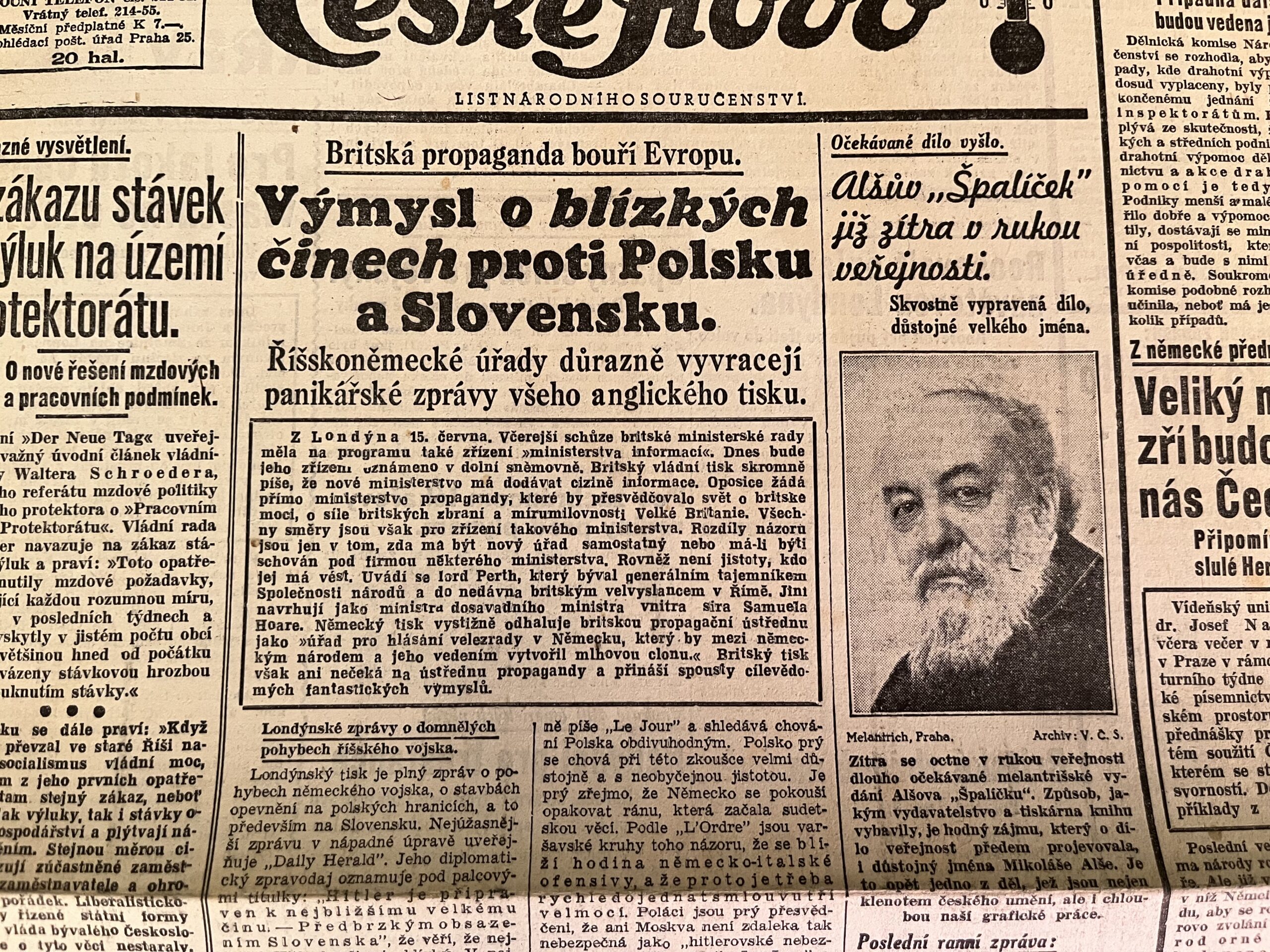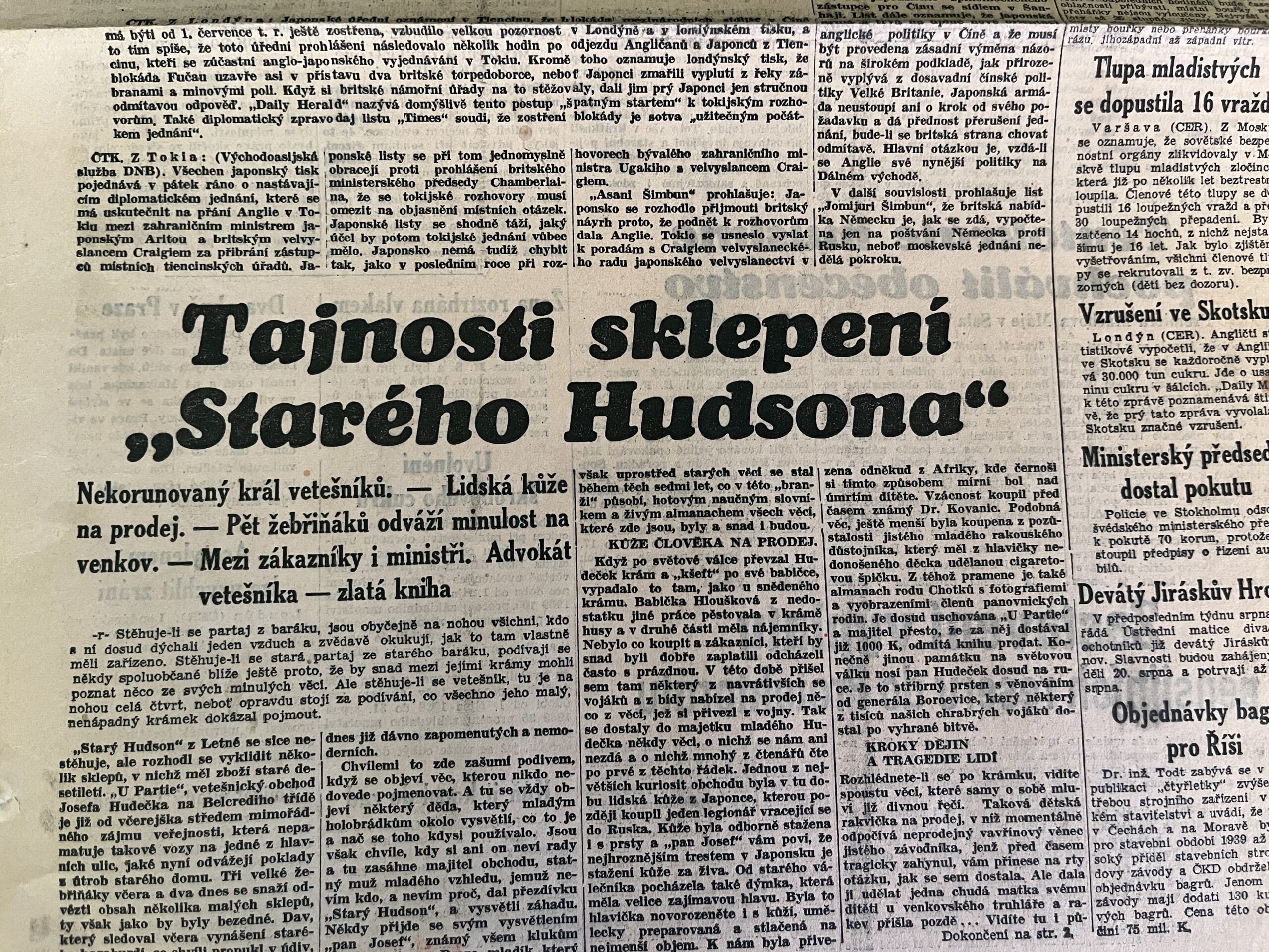 7 (K3-2) Lidové,Expres,A-Zet,Nedělní list,Večerní Čes.Slovo Rozměr 32 x 47 cm. Celek novin obsahuje Expres List národního souručenství 30.června 1939 – Zase dva požáry v Londýně. Dvě britské válečné lodi uzavřeny ve Fučau. Tvář Prahy. Tajnosti sklepení „Starého Hudsona“…ad. 1 list. A-Zet List národního souručenství 28.června 1939 – Zásadní úvahy italského tisku. Strach z dohody SSSR s Říší. Dni sokolského mládí. Dokonalá blokáda Číny. Pověsti o Gibraltaru…ad. 8 stran. A-Zet List národního souručenství 13.června 1939 – Moskva chce tajnou smlouvu. Německý kulturní týden. Angličané ustoupili. V Bělehradě návrat prince Pavla. Polský vyzvědač v Gdansku…ad.8 stran. Nedělní list List národního souručenství 4.června 1939 – Hra velmocí o mír světa. Beneš v Americe. Záchranné práce u ponorky „Thetis“…ad. 4 strany. Lidové noviny List národního souručenství 23.července – O Gdansku nelze smlouvat. Před dohodou s Charváty…ad. 12 stran. Večerní České Slovo List národního souručenství – Britská propaganda bouří Evropu. Alšův „Špalíček“ již zítra v rukou veřejnosti. K zákazu stávek a výluk na území Protektorátu. Stavební pozemky ve Velké Praze…ad. 6 stran. Večerní České Slovo List národního souručenství 5.června 1939 – Hlas významné výzvy. Cesta z bloudění. Chamberlainovo úsilí o dohodu. Vášeň v dostihové hře: od pětikoruny výš. Veřejné vyšetřování o ponorce Thetis…ad. 6 stran.