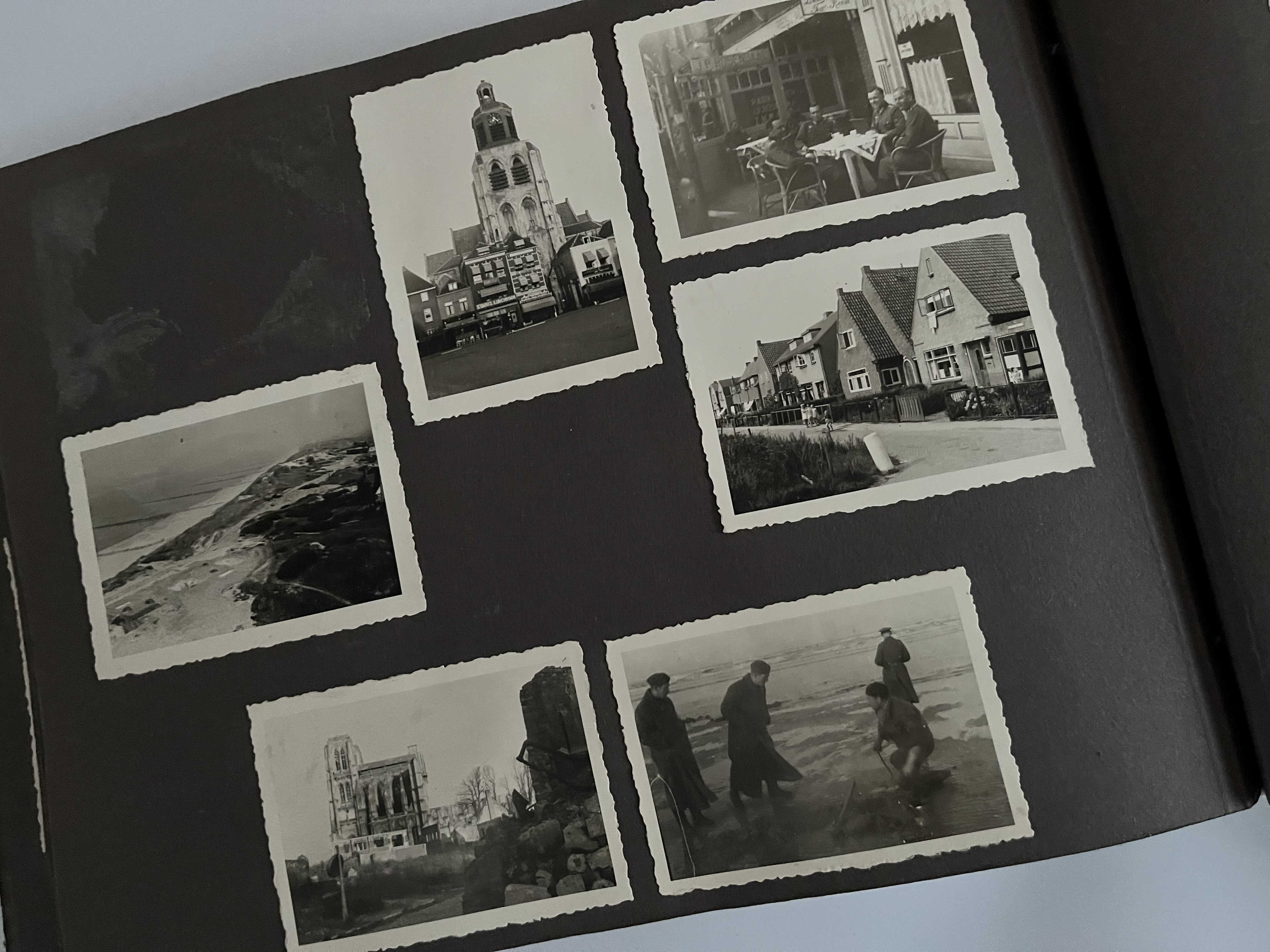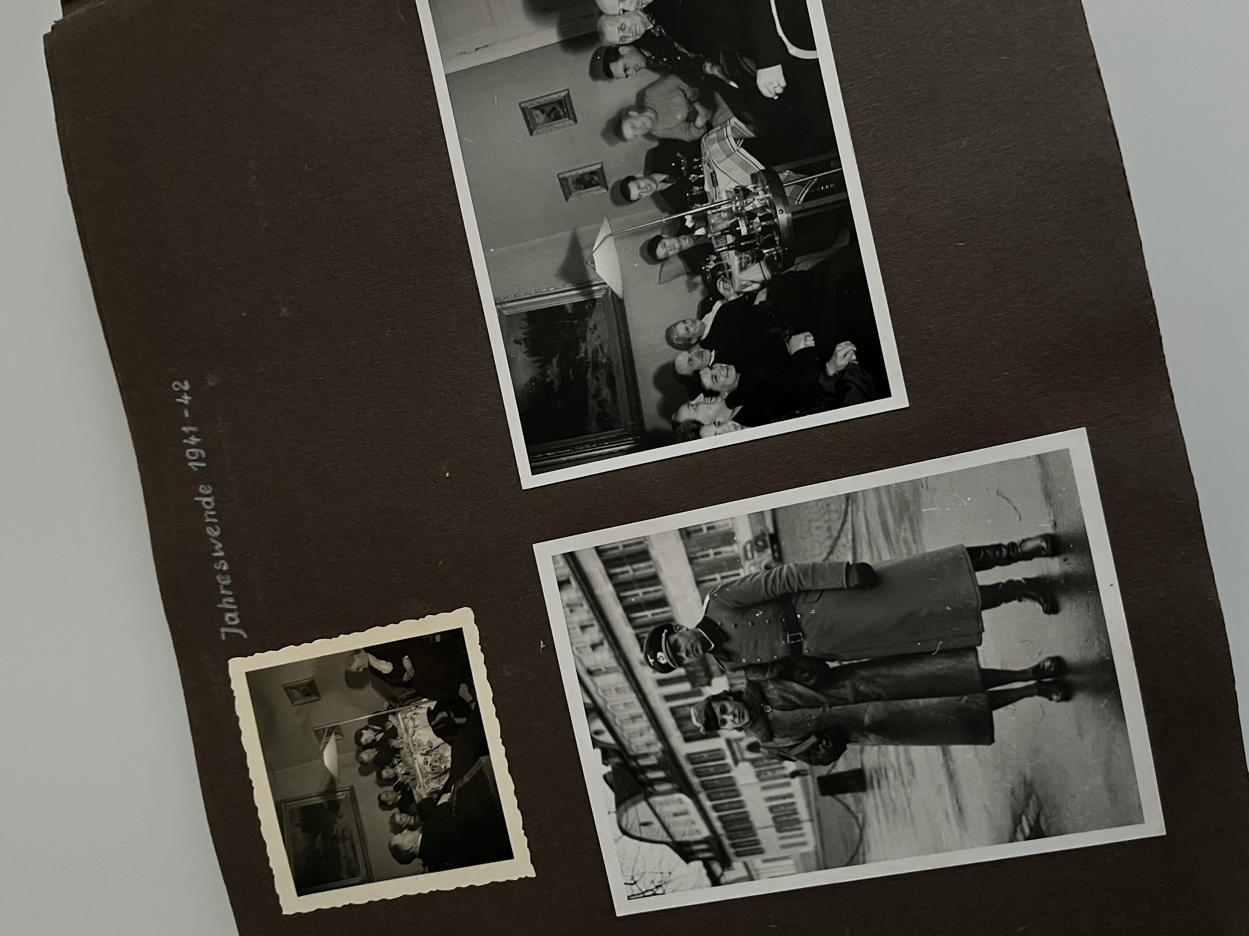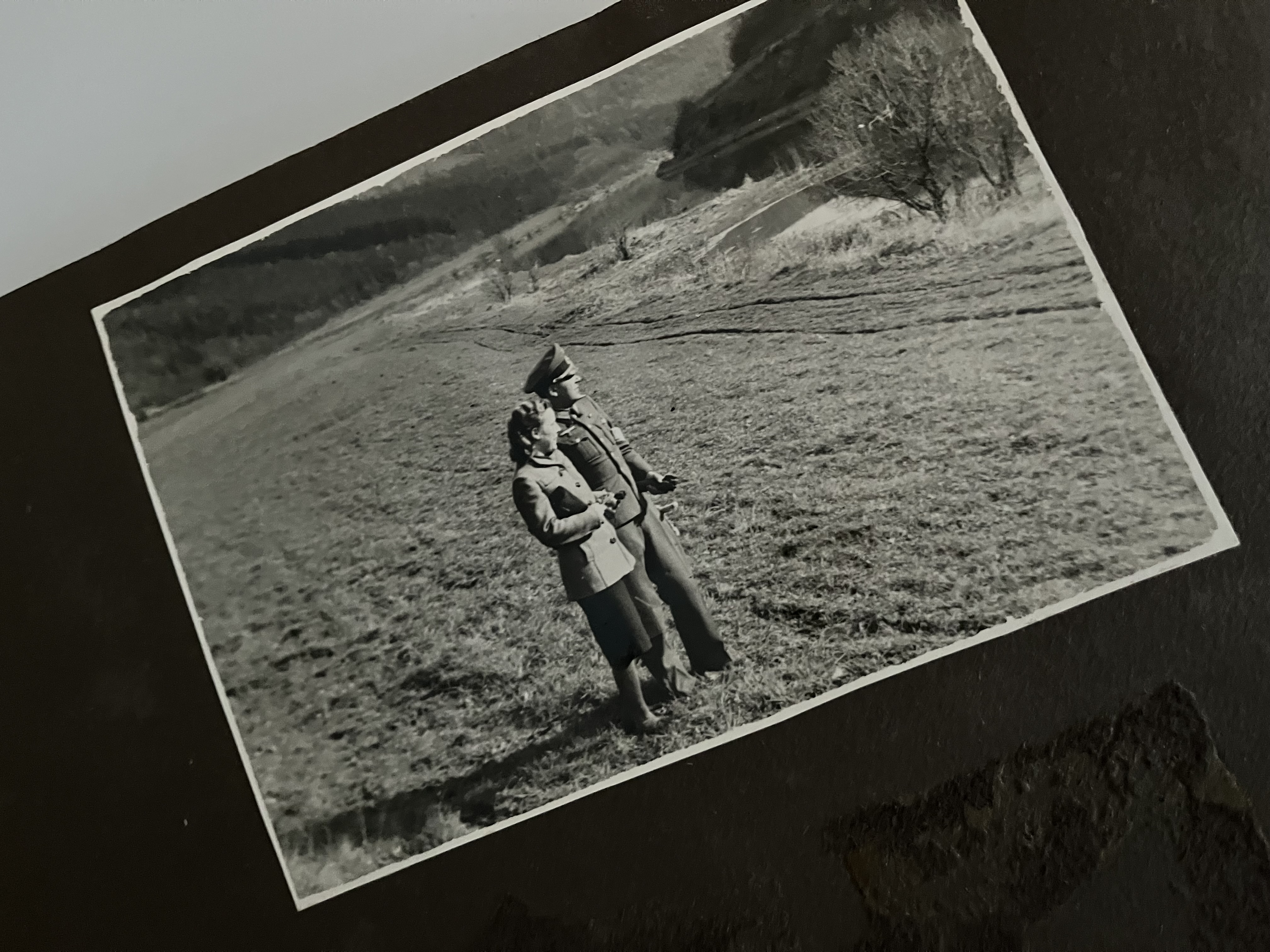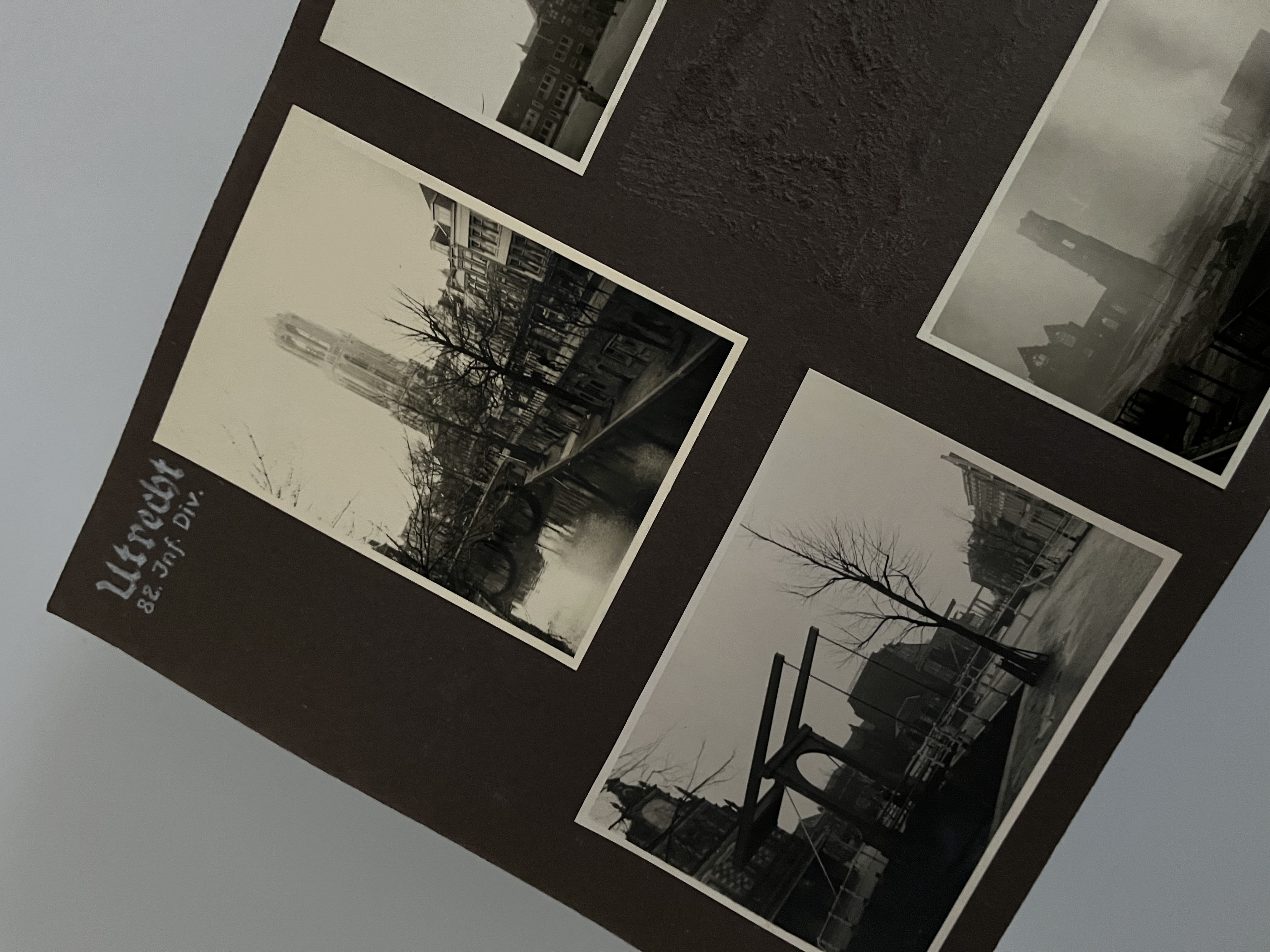26 (K3-3) Z běžného života a bojů ve válečné Evropě r.1938-1945. Vojenská technika, život na frontě, mapování postupu. Fotografie mají různé formáty, nejmenší 3 x 4 cm, největší 13 x 18 cm. Rozměr kufříku 22,5 x 19 cm, v. 6 cm, obsahuje 144 ks menších formátu. Album rozměr 32 x 24 cm. V albumu jsou fota nalepená, místy archy poškozeny odlepením fotografií. Fotografií v albumu 256 ks. Fotografie civilní i vojenské z fronty, okupované oblasti….Fotografie např. Přelom roku 1941/1942. Německé divadlo Lille Tannhäuser. Z dovolené Kassel, Německo, září 1941.Brusel – Radnice. Velký trh. Mnichov. Prázdniny květen 1942. Graz, Štýrský Hradec. Antverpy. Vojáci s rodinou. V terénu. aj. Kromě domácí fronty obsahuje i řadu kvalitních a dokumentačních záběrů z bojiště a života na frontě německých vojáků včetně civilistů. Některé fotografie obsahují popisky na druhé straně. Zajímavý dokumentační materiál. Vojenská technika, výstroj, výzbroj, bajonety, helmy, zvířata na frontě.