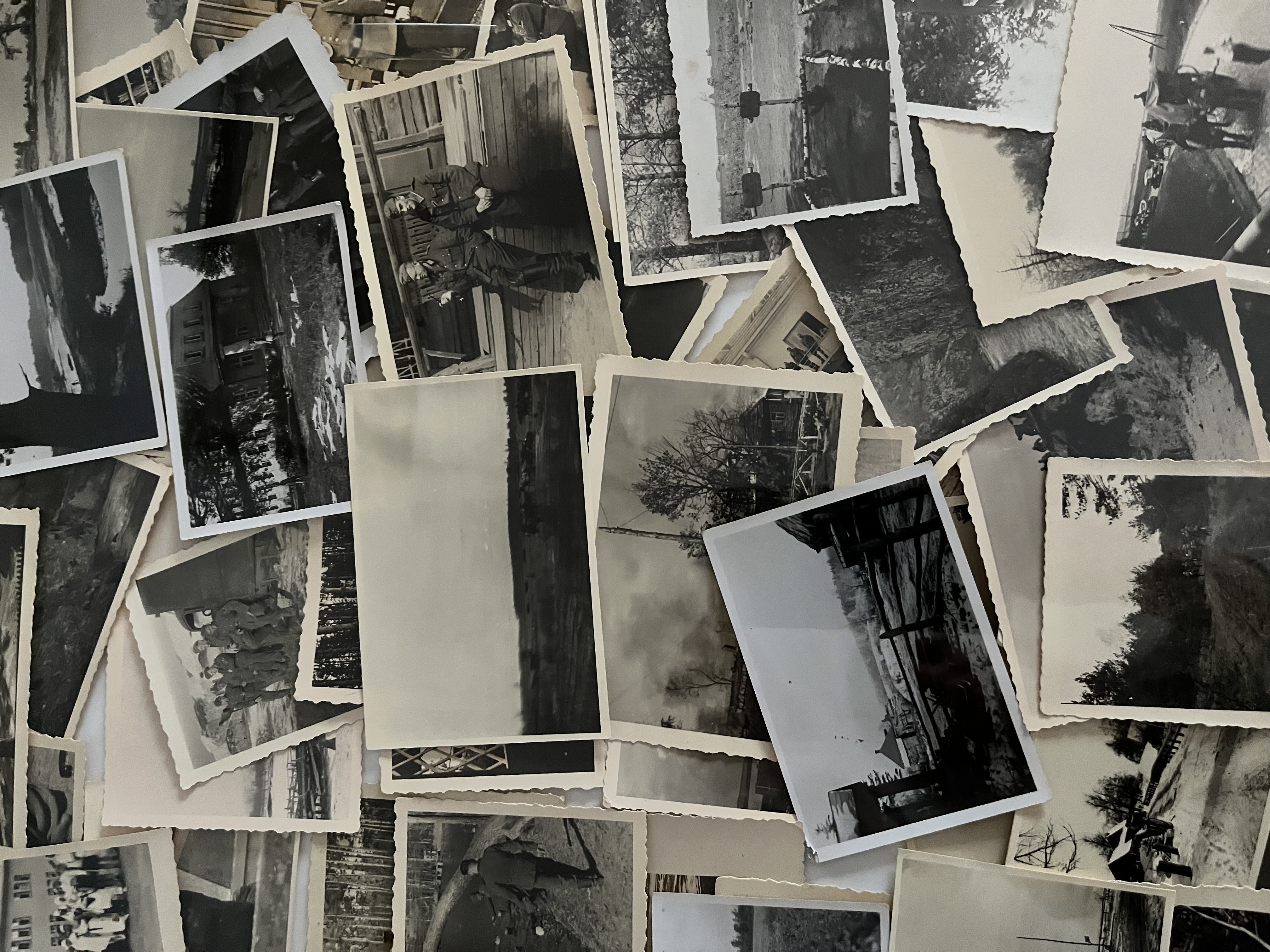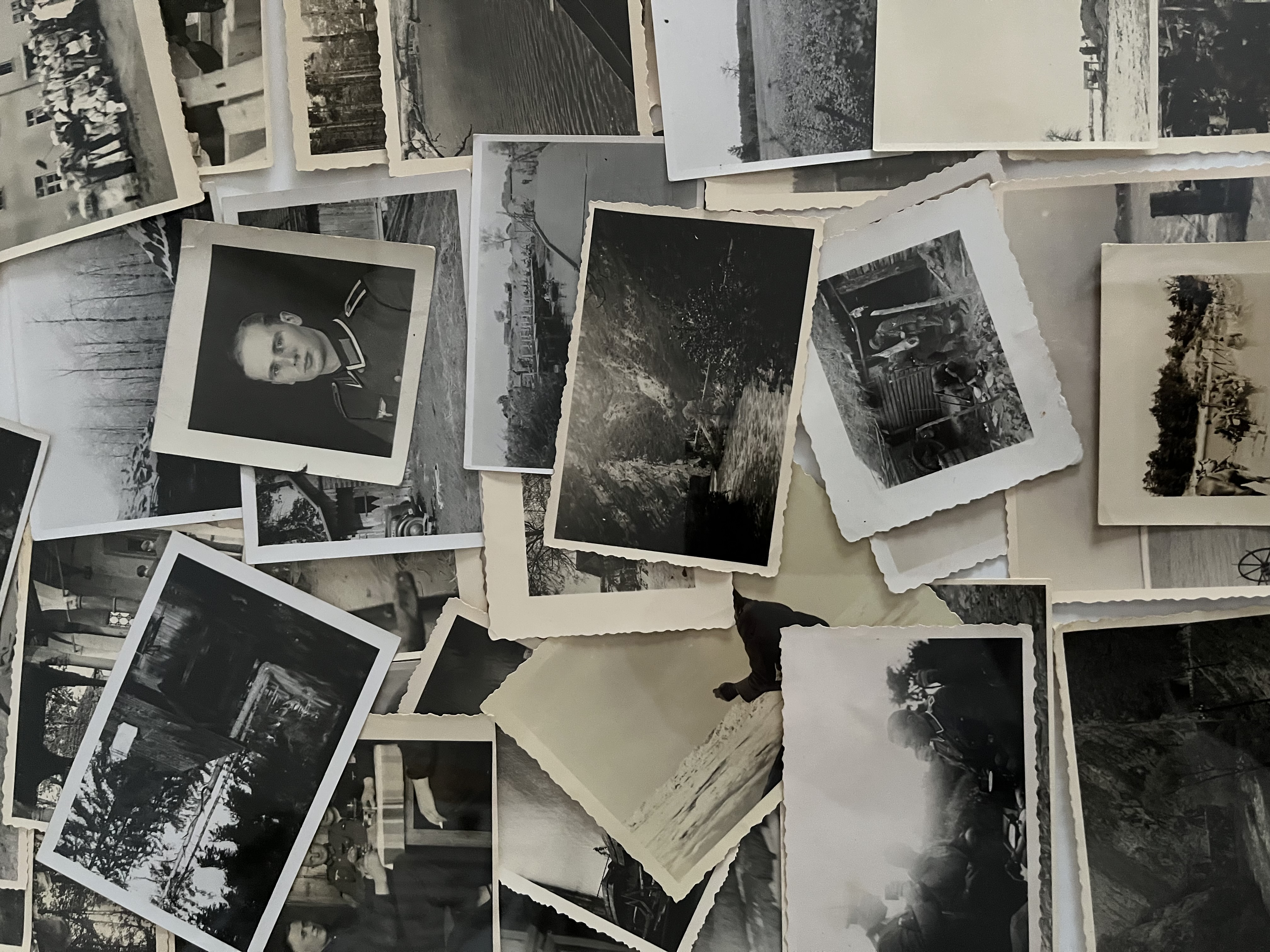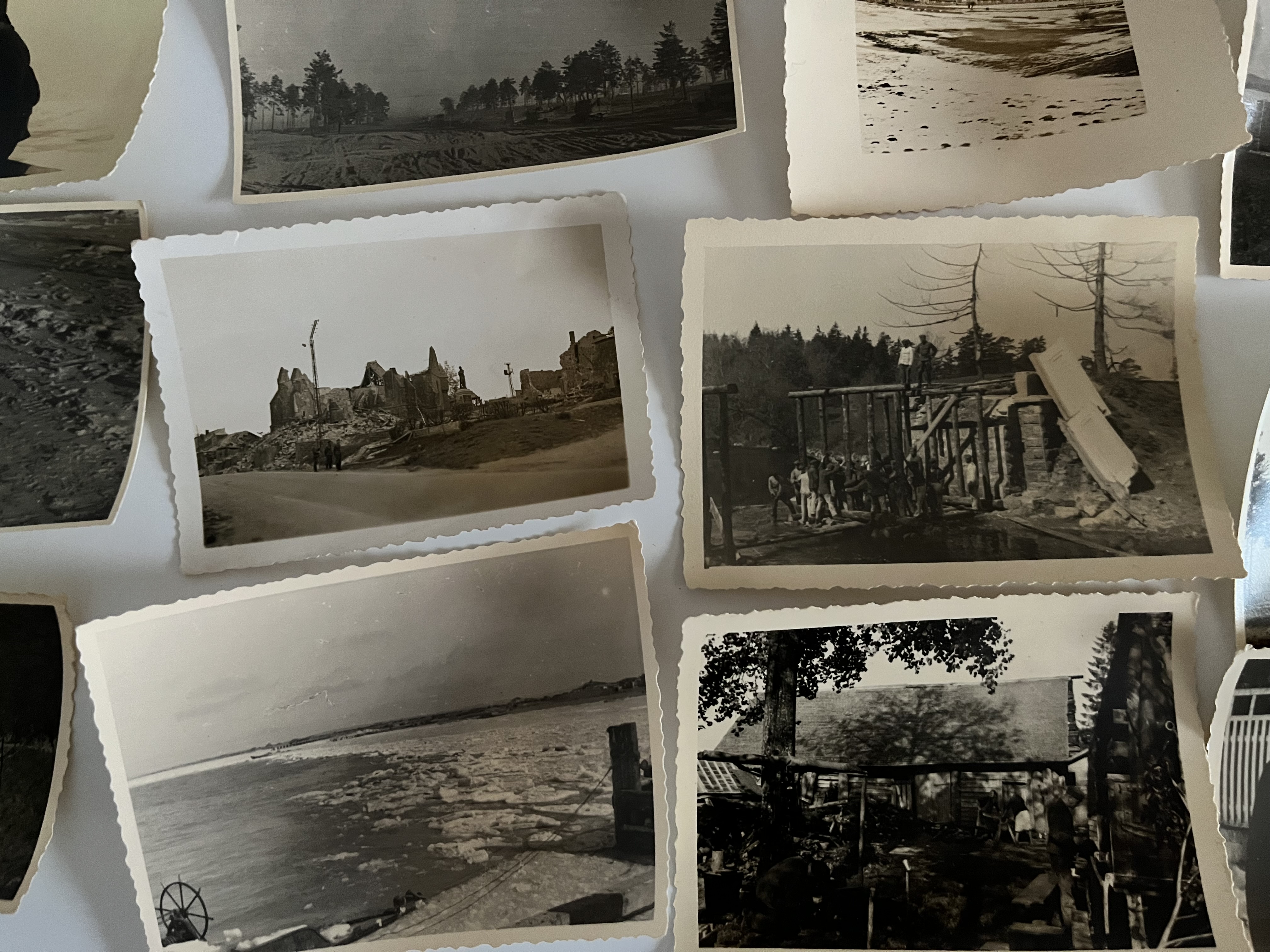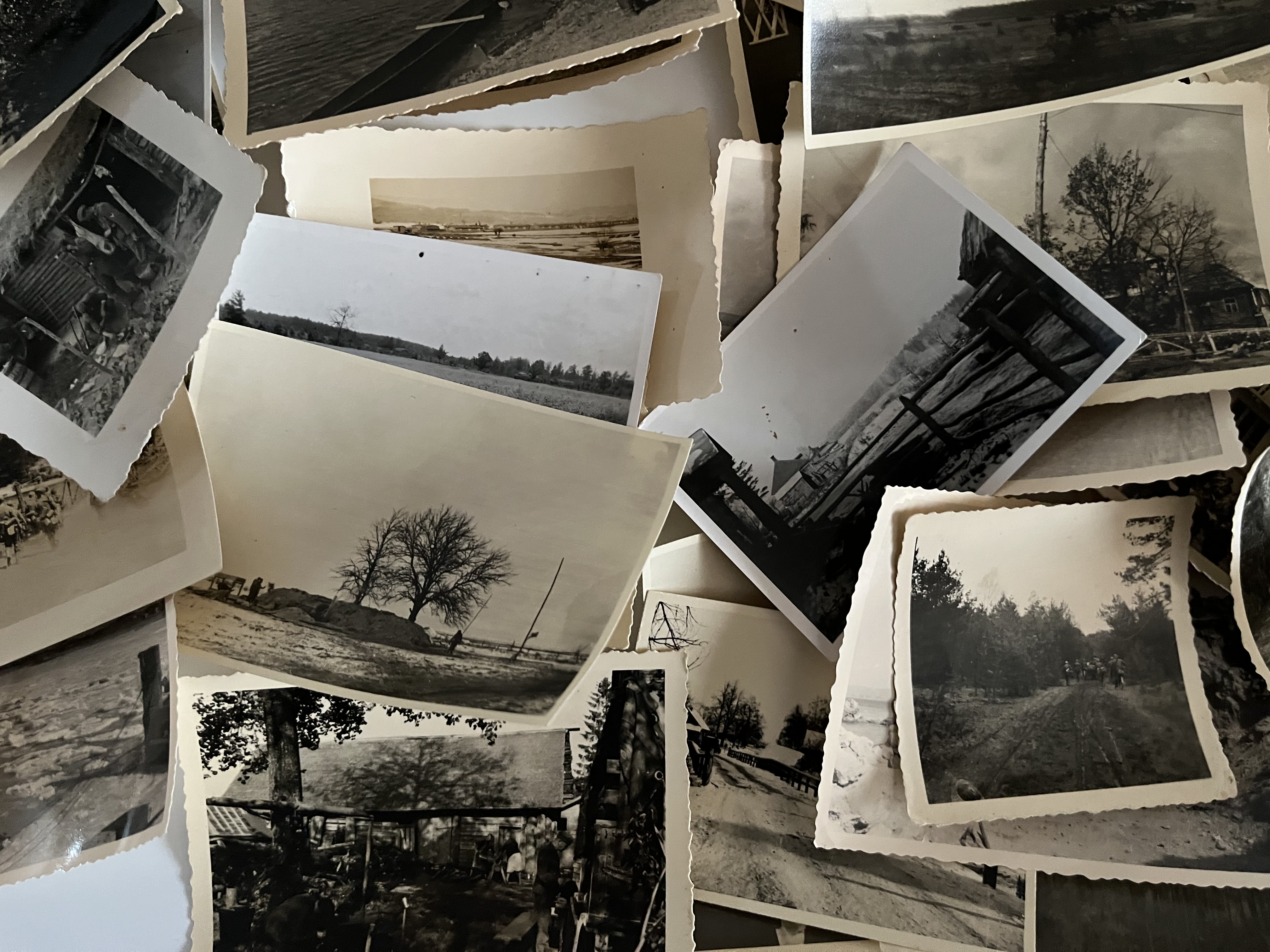 26 (K3-3) Z běžného života a bojů ve válečné Evropě r.1938-1945. Vojenská technika, život na frontě, mapování postupu. Fotografie mají různé formáty, nejmenší 3 x 4 cm, největší 13 x 18 cm. Rozměr kufříku 22,5 x 19 cm, v. 6 cm, obsahuje 144 ks menších formátu. Album rozměr 32 x 24 cm. V albumu jsou fota nalepená, místy archy poškozeny odlepením fotografií. Fotografií v albumu 256 ks. Fotografie civilní i vojenské z fronty, okupované oblasti….Fotografie např. Přelom roku 1941/1942. Německé divadlo Lille Tannhäuser. Z dovolené Kassel, Německo, září 1941.Brusel – Radnice. Velký trh. Mnichov. Prázdniny květen 1942. Graz, Štýrský Hradec. Antverpy. Vojáci s rodinou. V terénu. aj. Kromě domácí fronty obsahuje i řadu kvalitních a dokumentačních záběrů z bojiště a života na frontě německých vojáků včetně civilistů. Některé fotografie obsahují popisky na druhé straně. Zajímavý dokumentační materiál. Vojenská technika, výstroj, výzbroj, bajonety, helmy, zvířata na frontě.