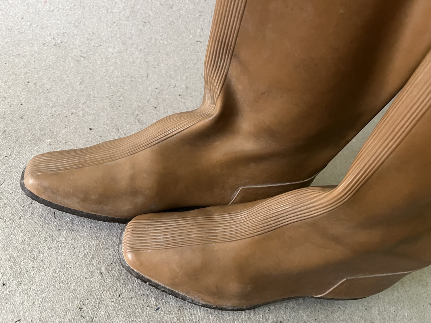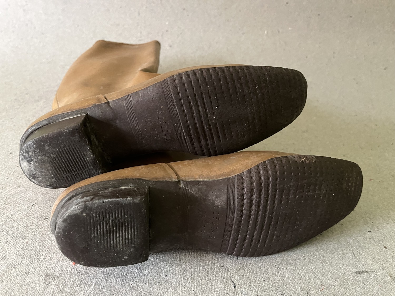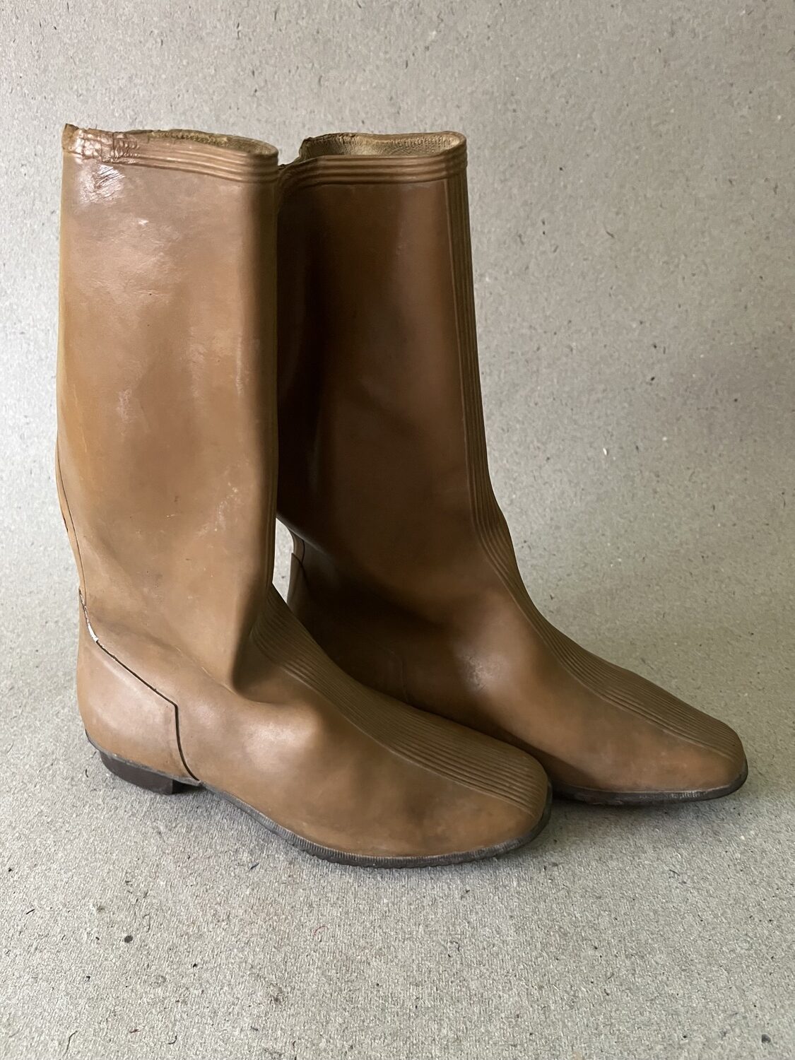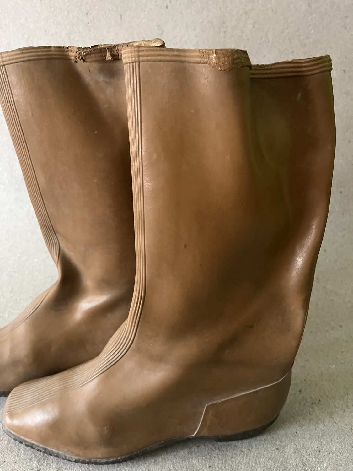26 (t3) Vnitřní velikost stélky cca 25 cm, celková výška holínek 31,5 cm. Boty vhodné k divadlu, na veteránské akce, dobové akce ap. Období 50-80.léta. Máme i další páry, pokud by někdo hledal něco specifického nebo konkrétní velikost.