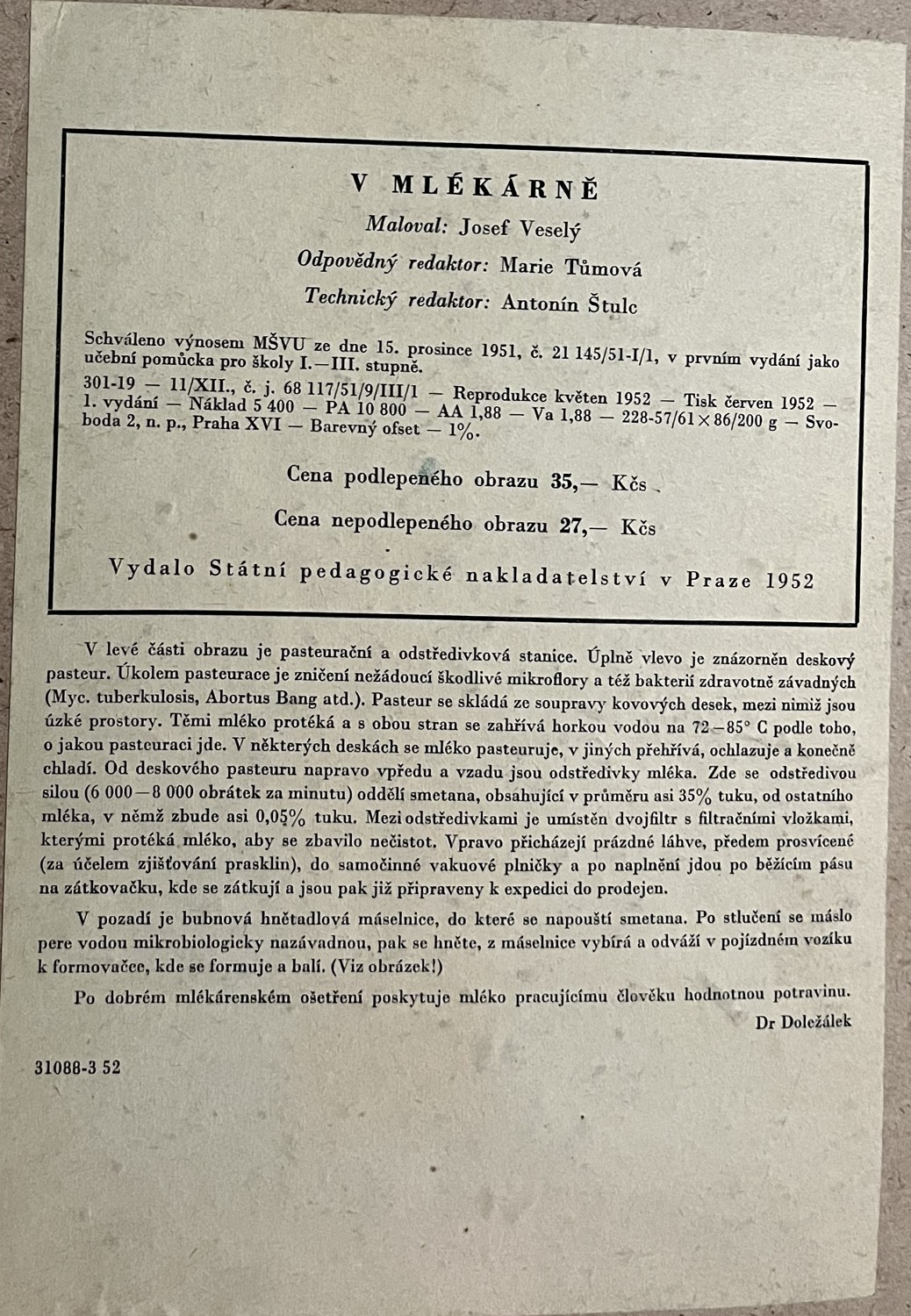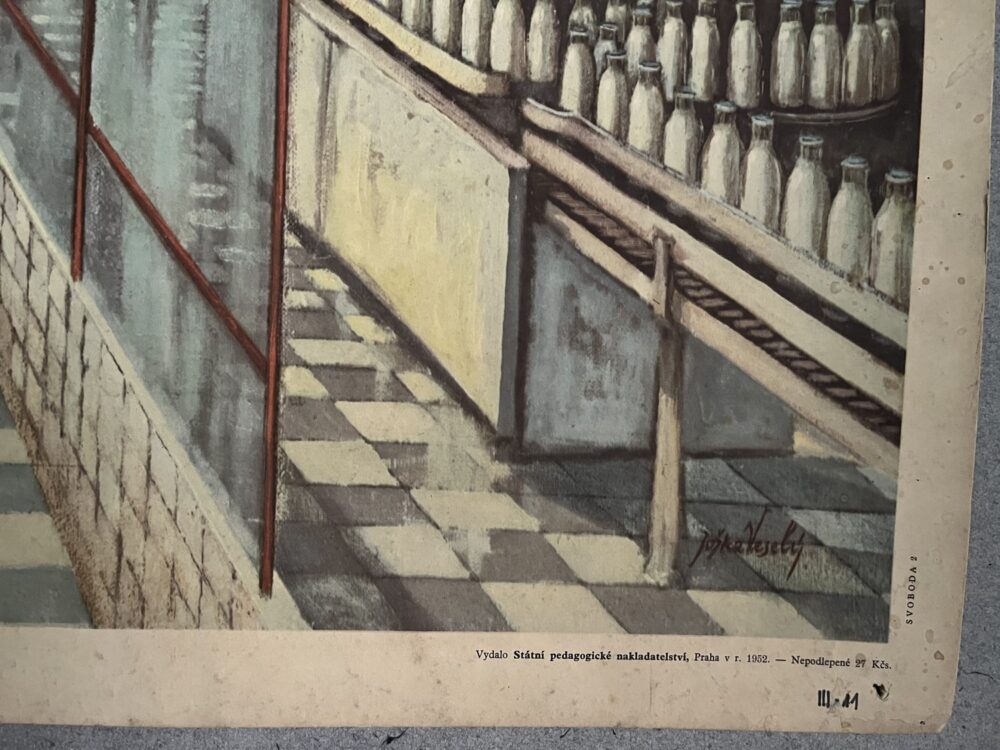 13 (hhh) Rozměr 59,5 x 84 cm. Maloval Josef Veselý, vydalo Státní pedagogické nakladatelství, Praha v r. 1952, popis a razítka na zadní straně cedule.
