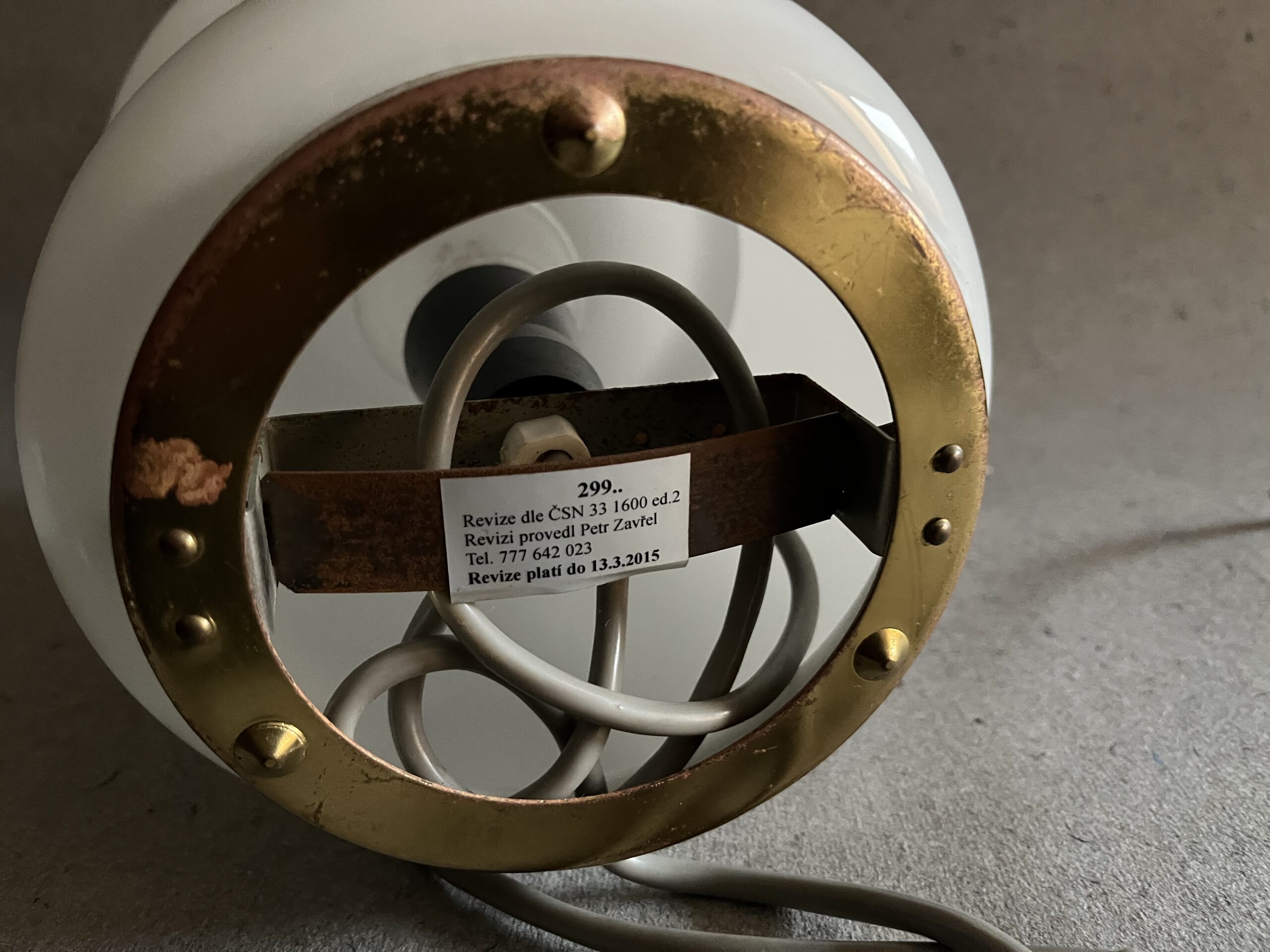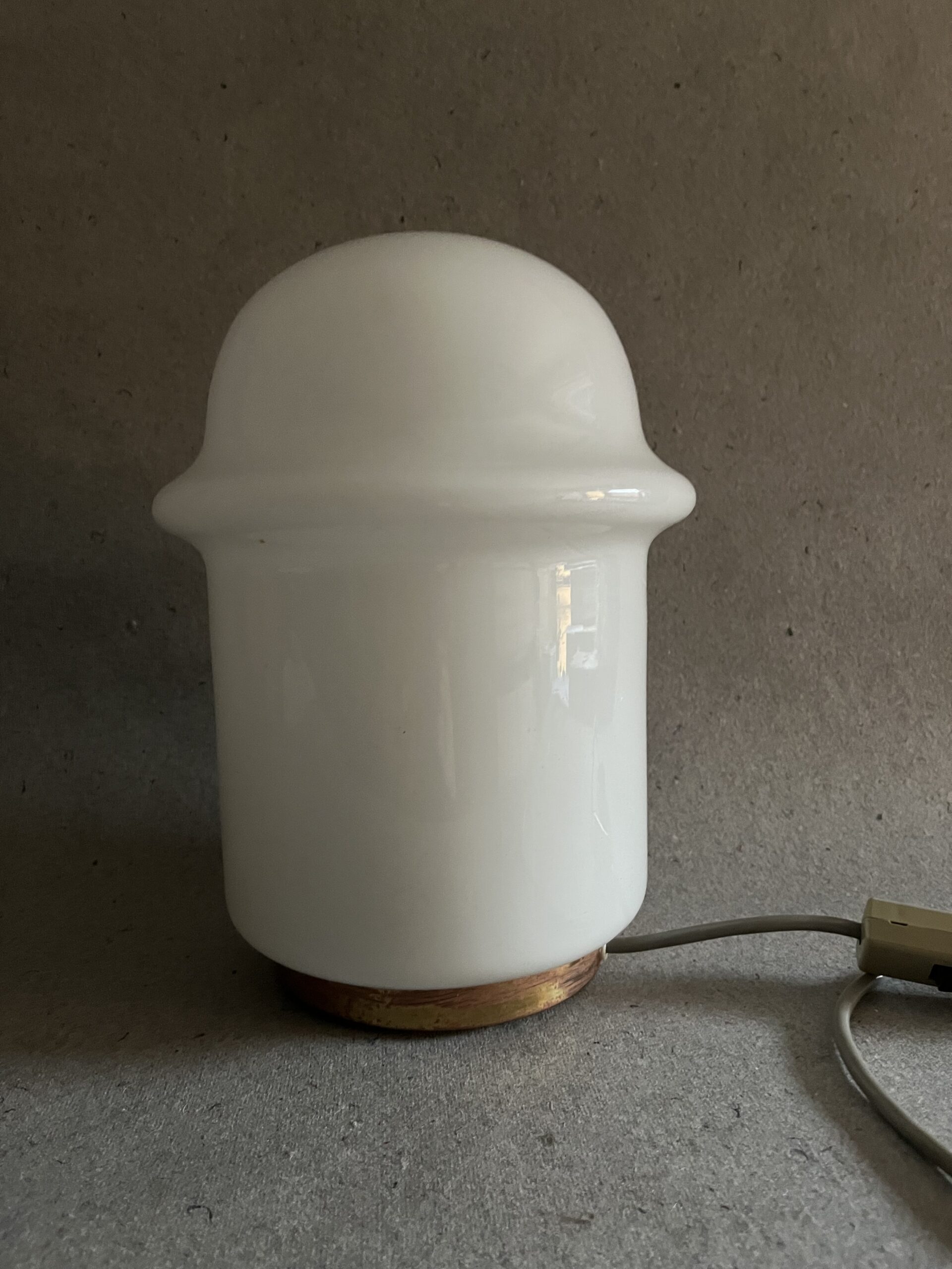 AS-2-b Lampičky z minulého století jsou originálním a hlavně funkčím interiérovým doplňkem.Jednoduchý design, sklo, bílá barva. Lampička je funkční. Podstavec s mosaznou okruží, je potřeba vyčistit. Rozměry v. cca 27 cm, průměr dna 13 cm.