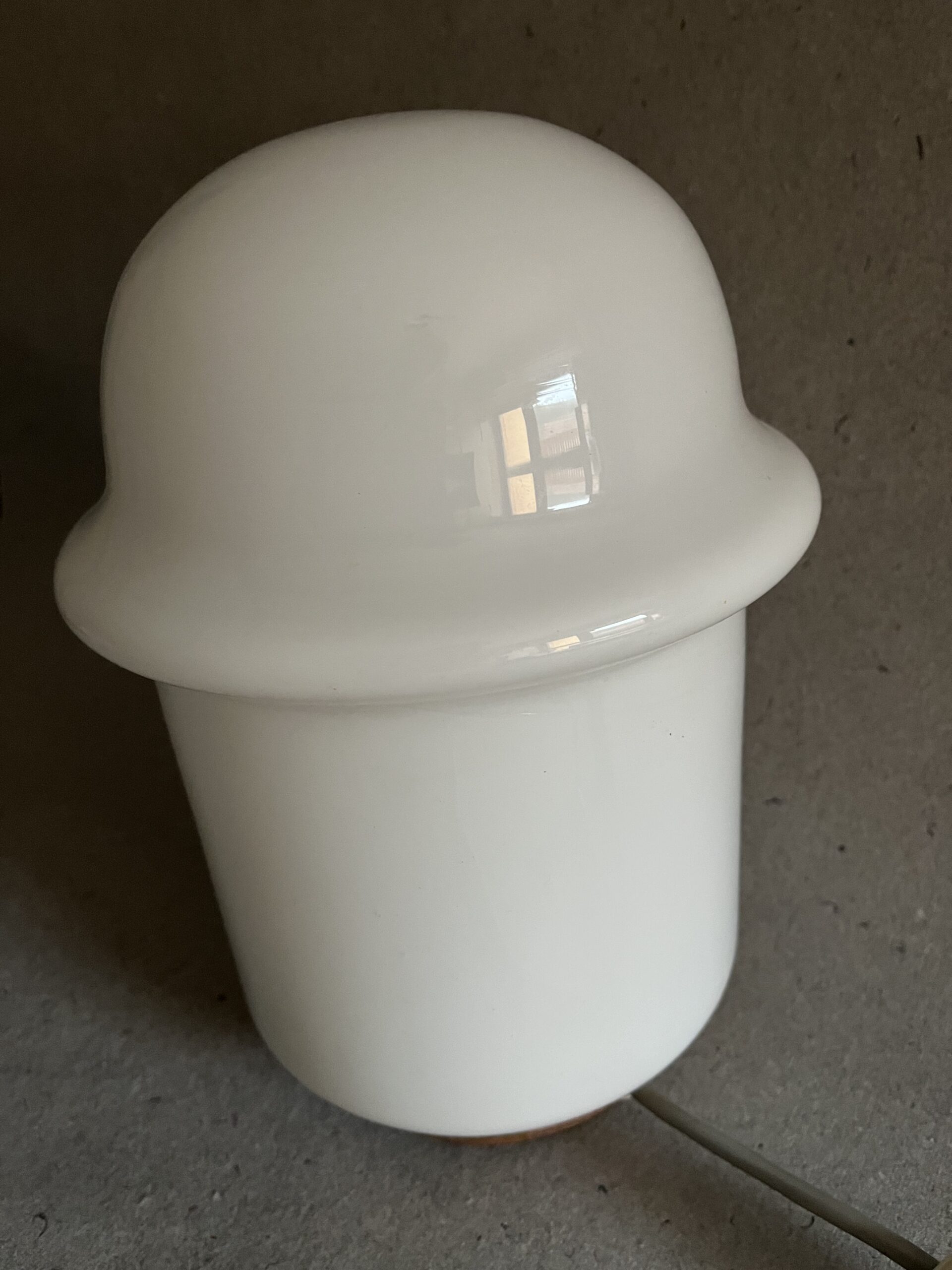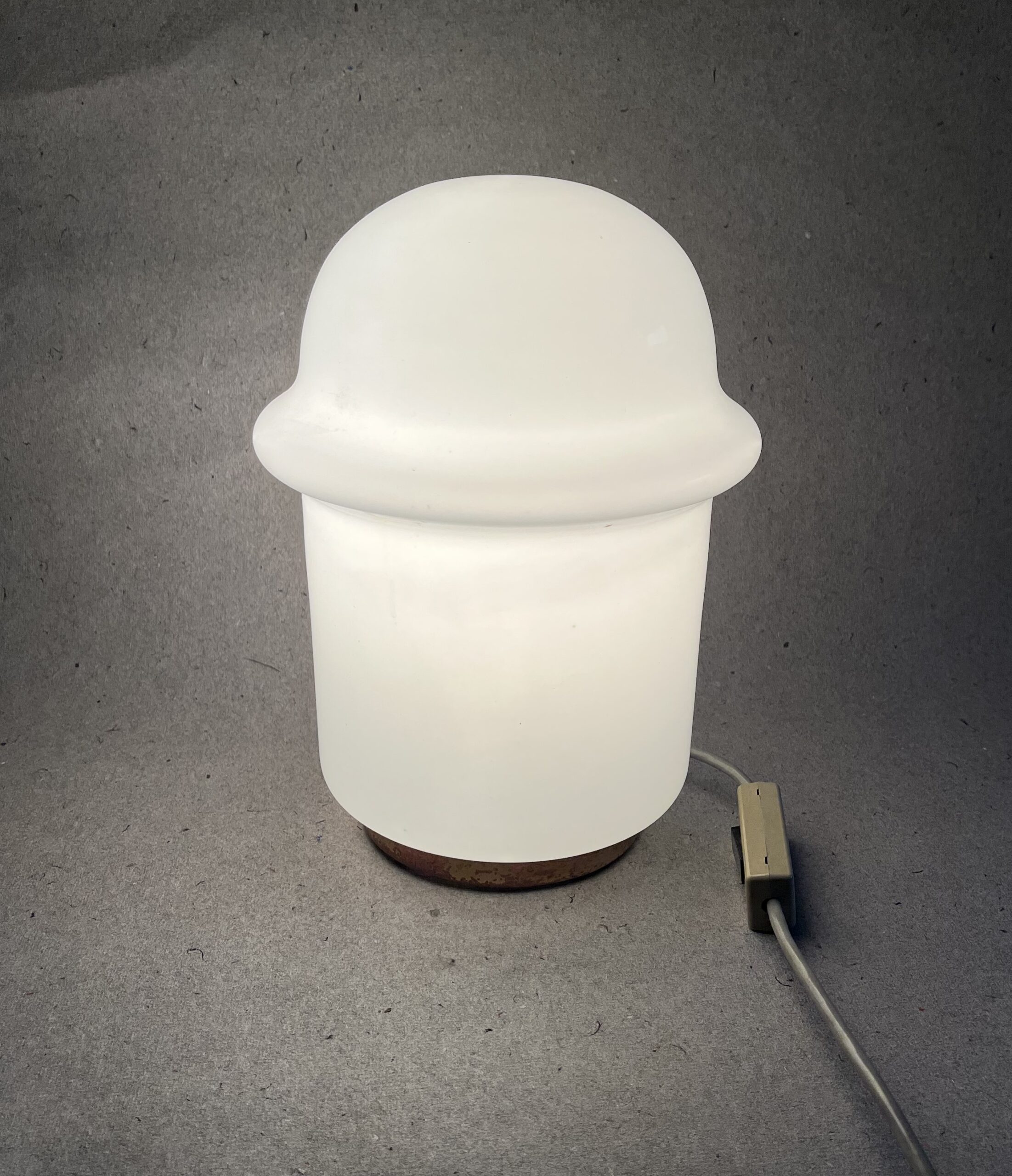 Designová skleněná lampa z opakního skla, 70. – 80. léta funkční