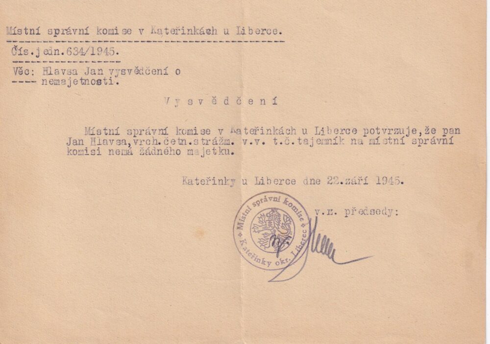 (hhj 42) Rozměr 21x 15 cm, kulaté razítko – Místní správní komise Kateřinky okr. Liberec.