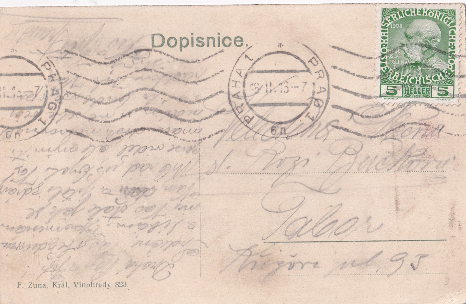 Dopisnice Praha Žižkov - Žižkovo náměstí, rok 1913 - Obrázek 2