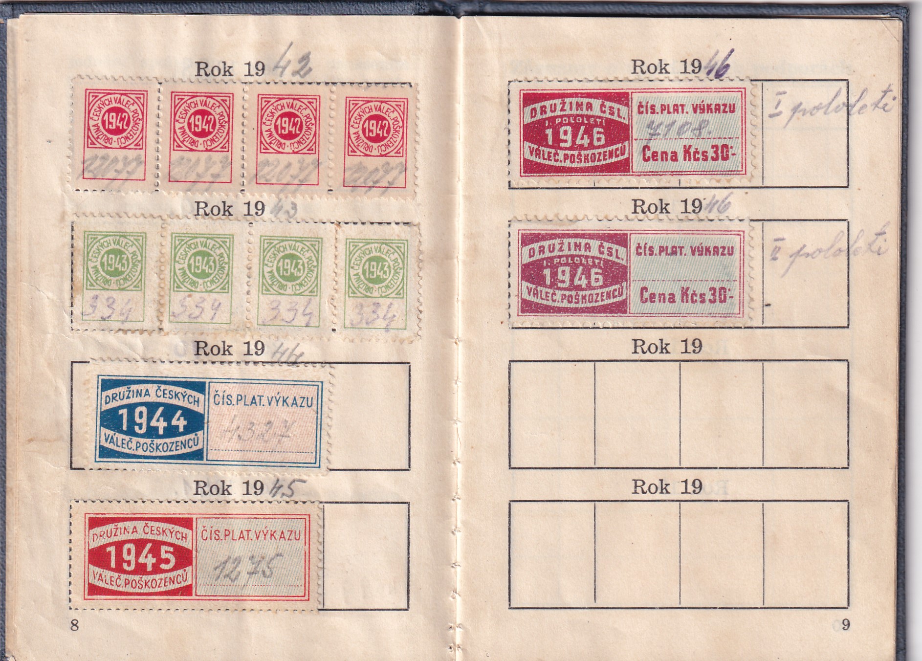 8 (K3-1) Rozměr 8 x 11,5 cm. Je založena 1.ledna 1938 ve skupině Bartovicích. Bydlištěm Šenov. Kolky jsou od roku 1938 do r. 1946. Počet lstů 14.