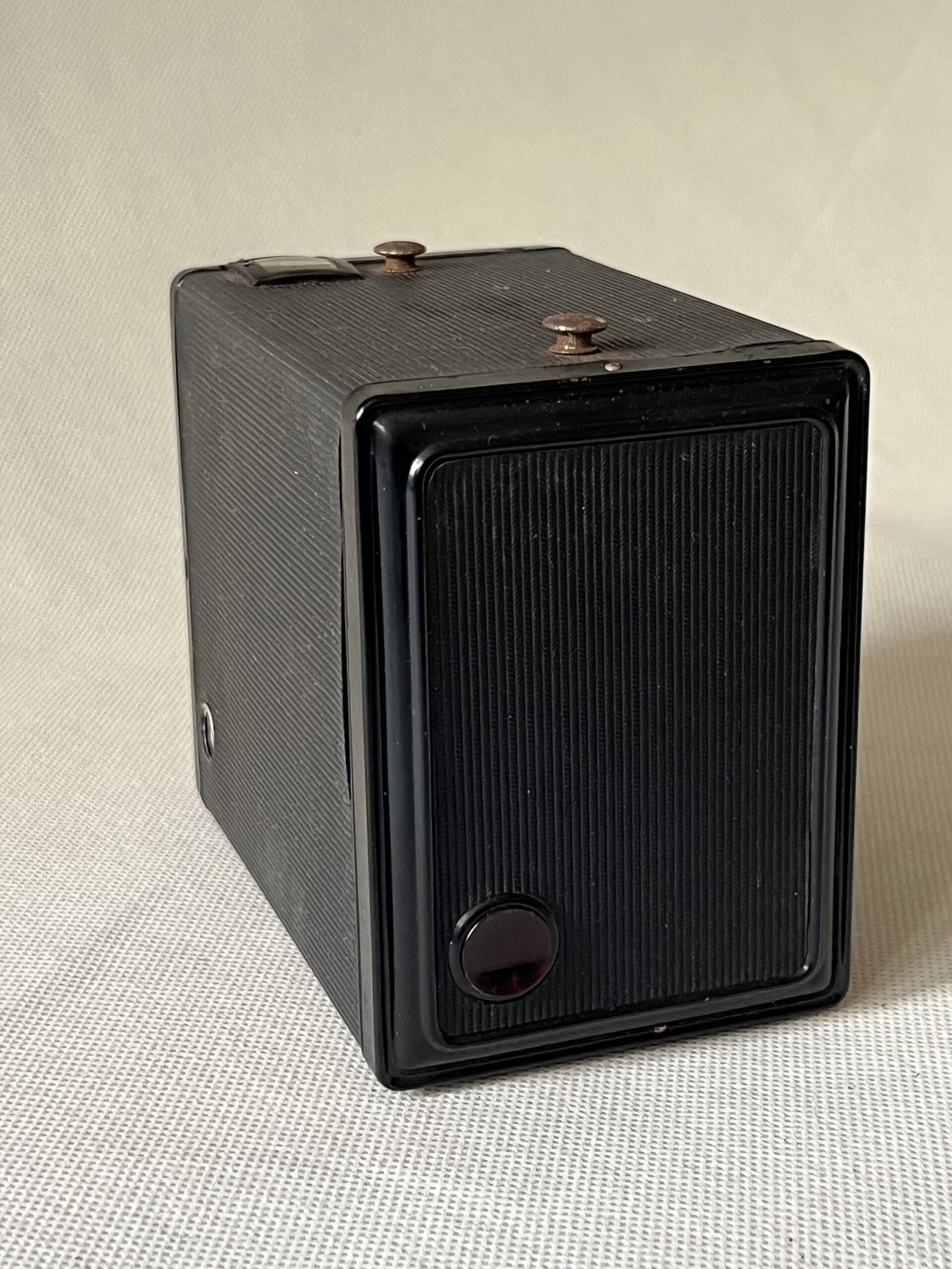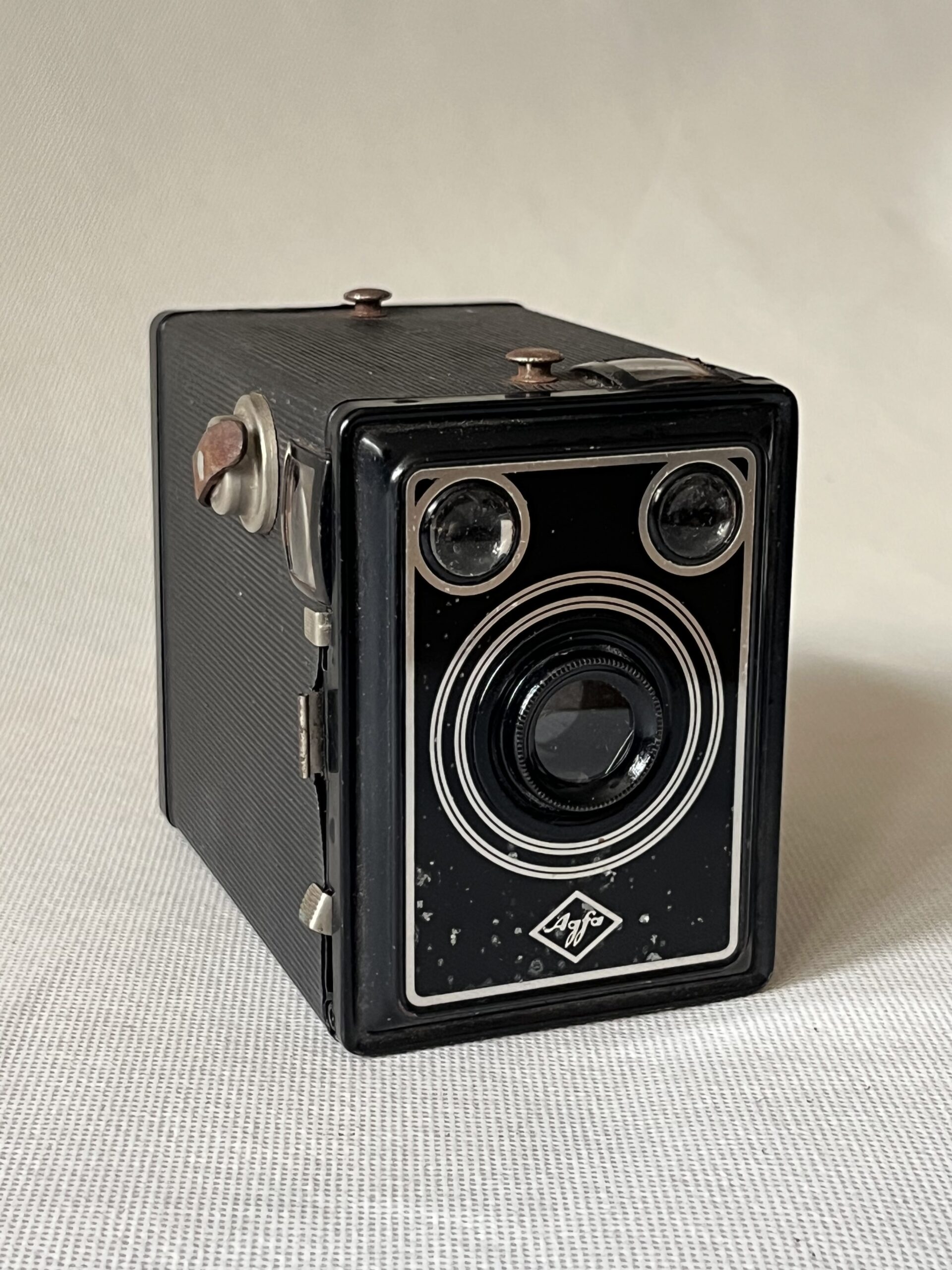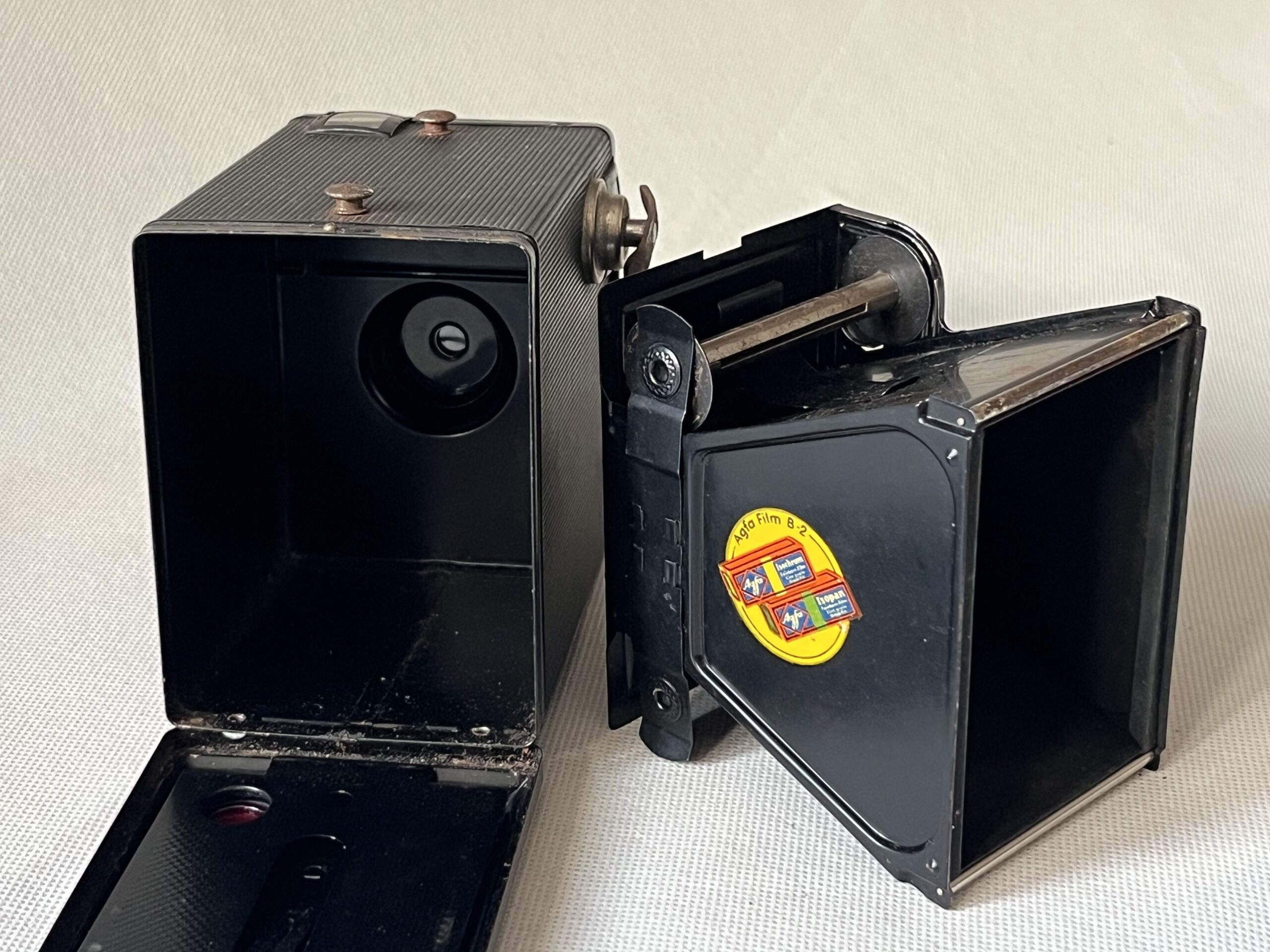 (F-20) Fotoaparát Agfa Box 50, na svitkový film, mechanicky funkční