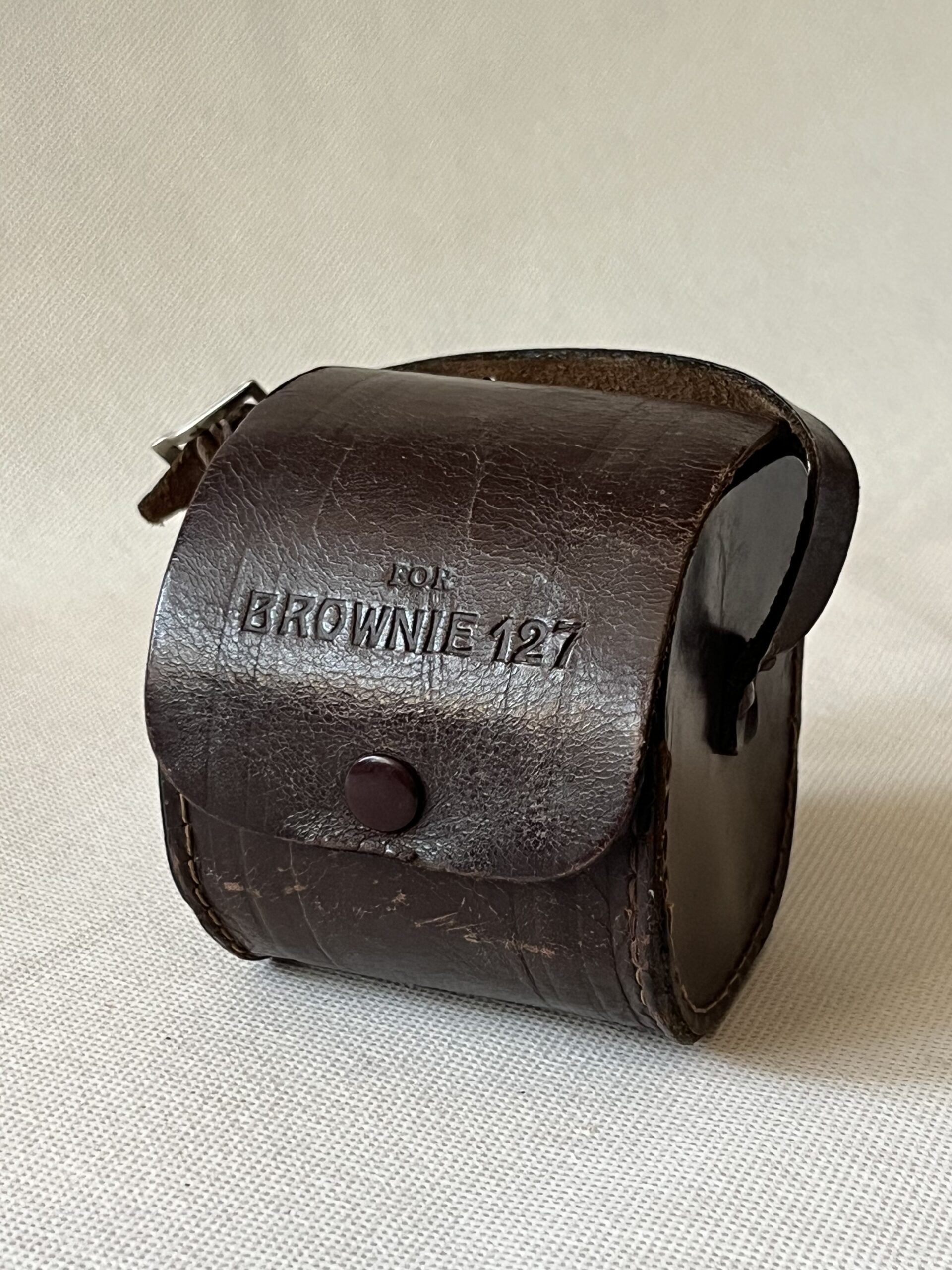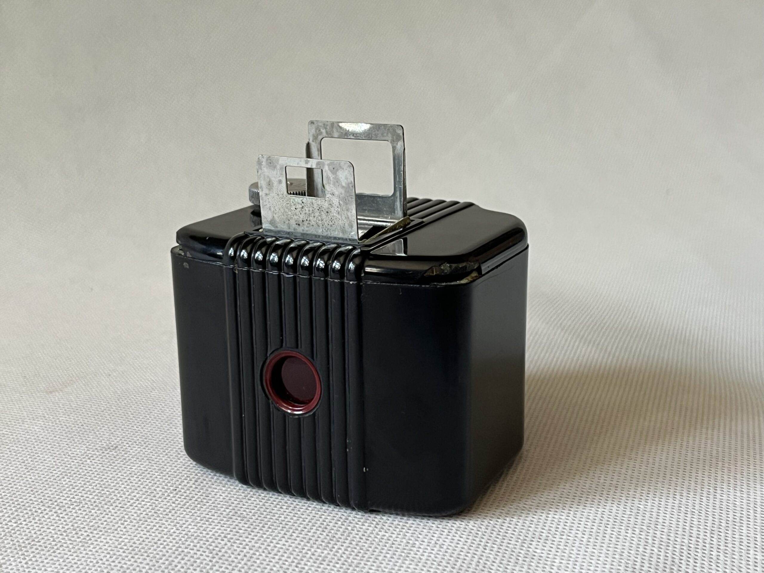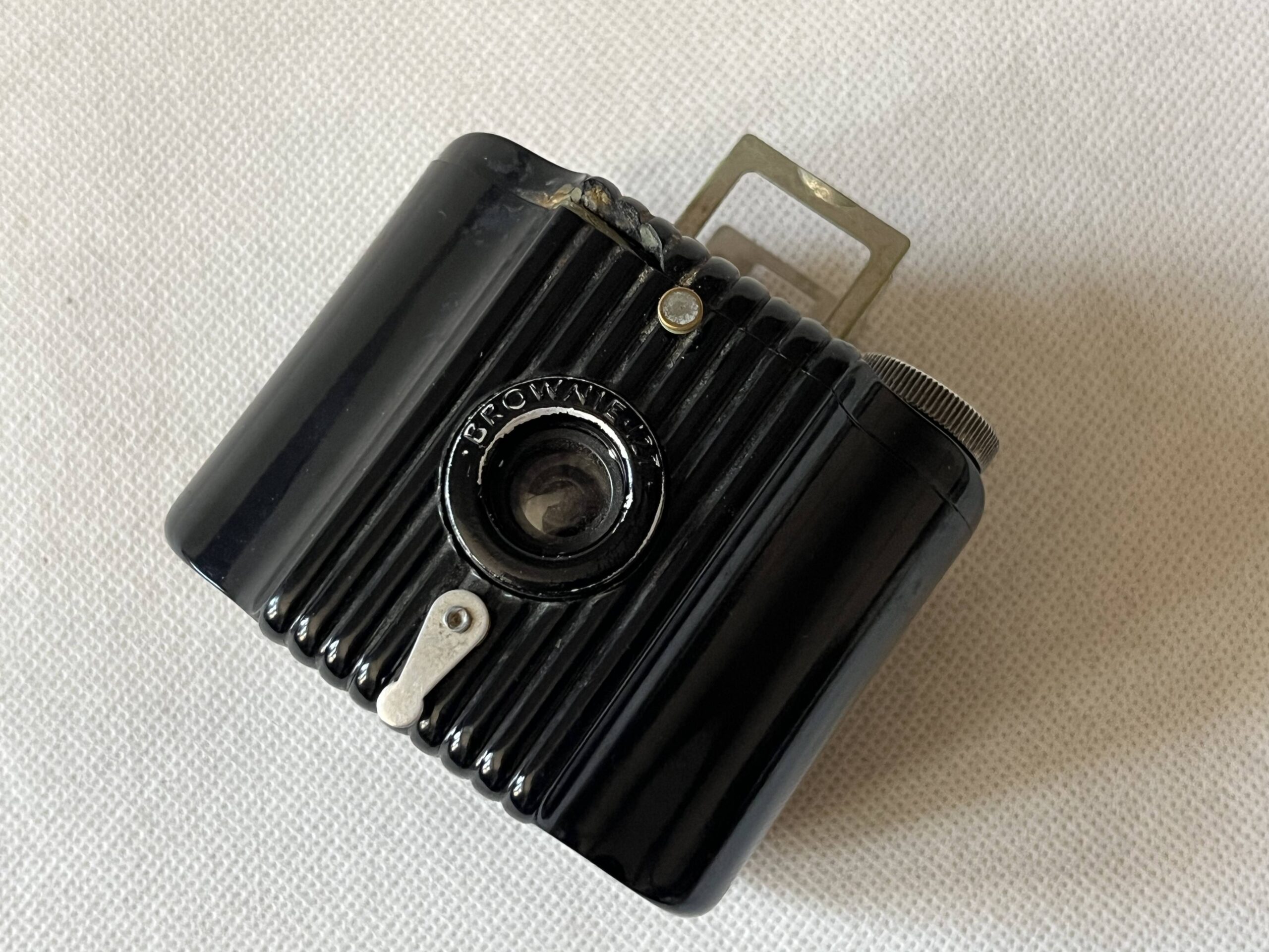 (F-21) Fotoaparát Kodak Baby Brownie 127, bakelitový, na svitkový film 127, vyrobeno v USA, s originální brašnou, ulomené rožky