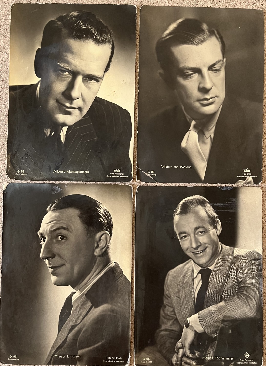 6 (hhc) Rozměr 10,5 x 14,5 cm. Victor Paul Karl Kowalczyk – Německý divadelní herec. Heinz Rühmann – Německý filmový herec. Theo Lingen – herec. Albert Matterstock -Německý herec. 1.pol.20.stol.
