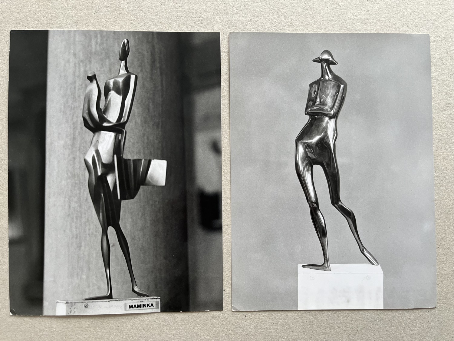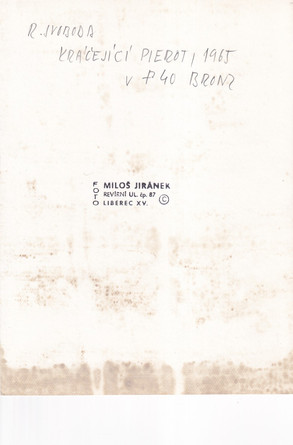 40 (ggw 1) Rozměr 17 x 23 cm. Sochař Rudolf Svoboda – Kráčející Pierot, bronz 1965, Maminka, bronz 1965. Autorské razítko Miloš Jiránek.