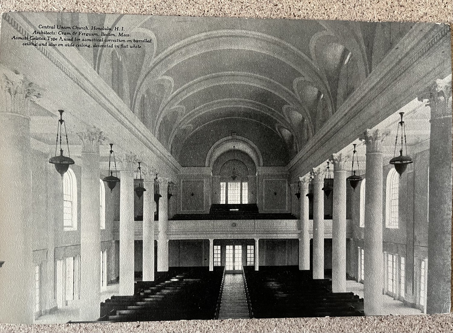 14 (hhc) Rozměr 23 x 15 cm. Vysílací studio pro varhany Lyon Healy Chicago. Posluchárna střední školy. Ústřední unijní kostel. Honolulu.