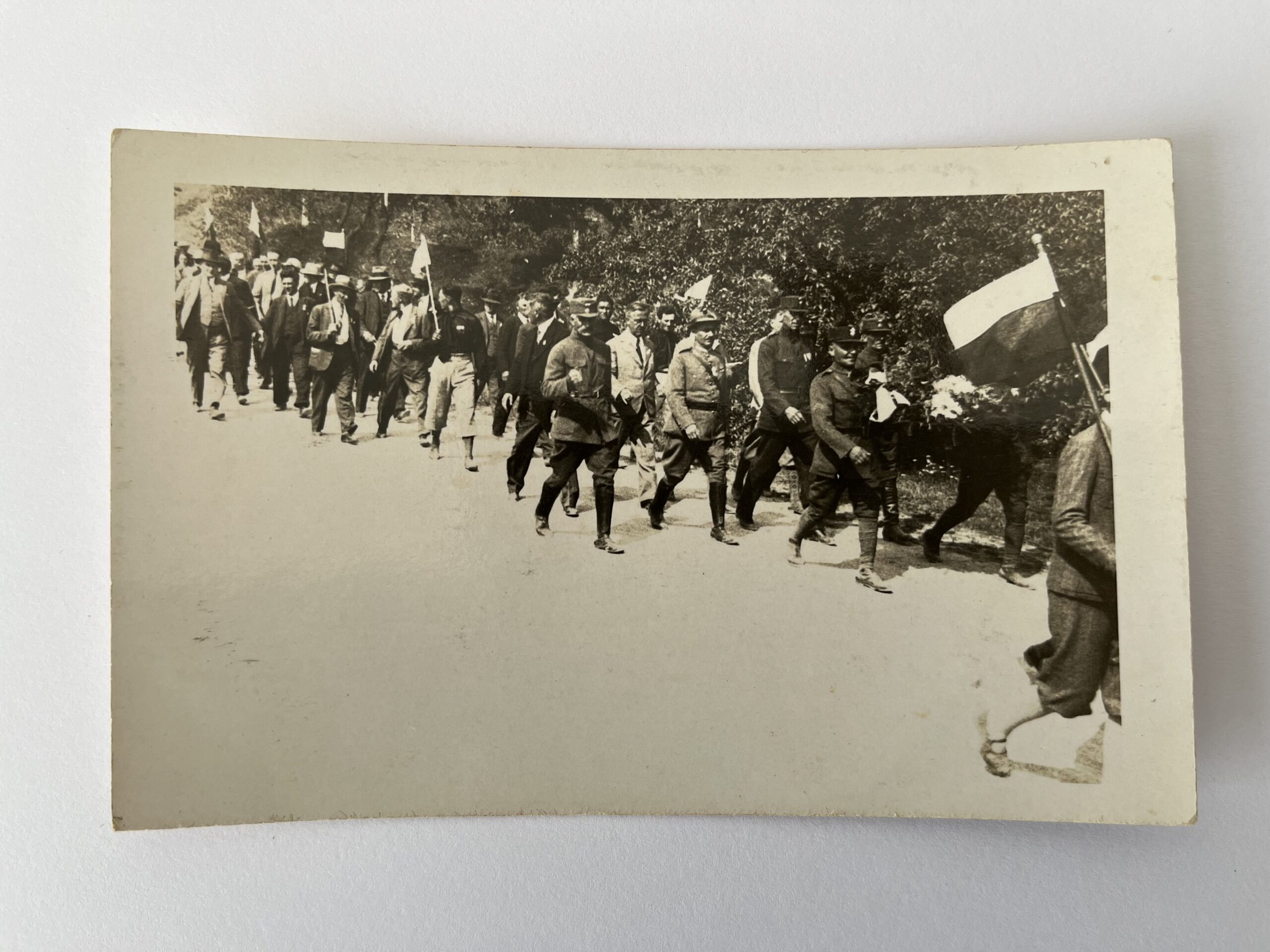 Fotopohlednice - Vojáci v průvodu, vlajky foto Kellar Čáslav - Obrázek 2