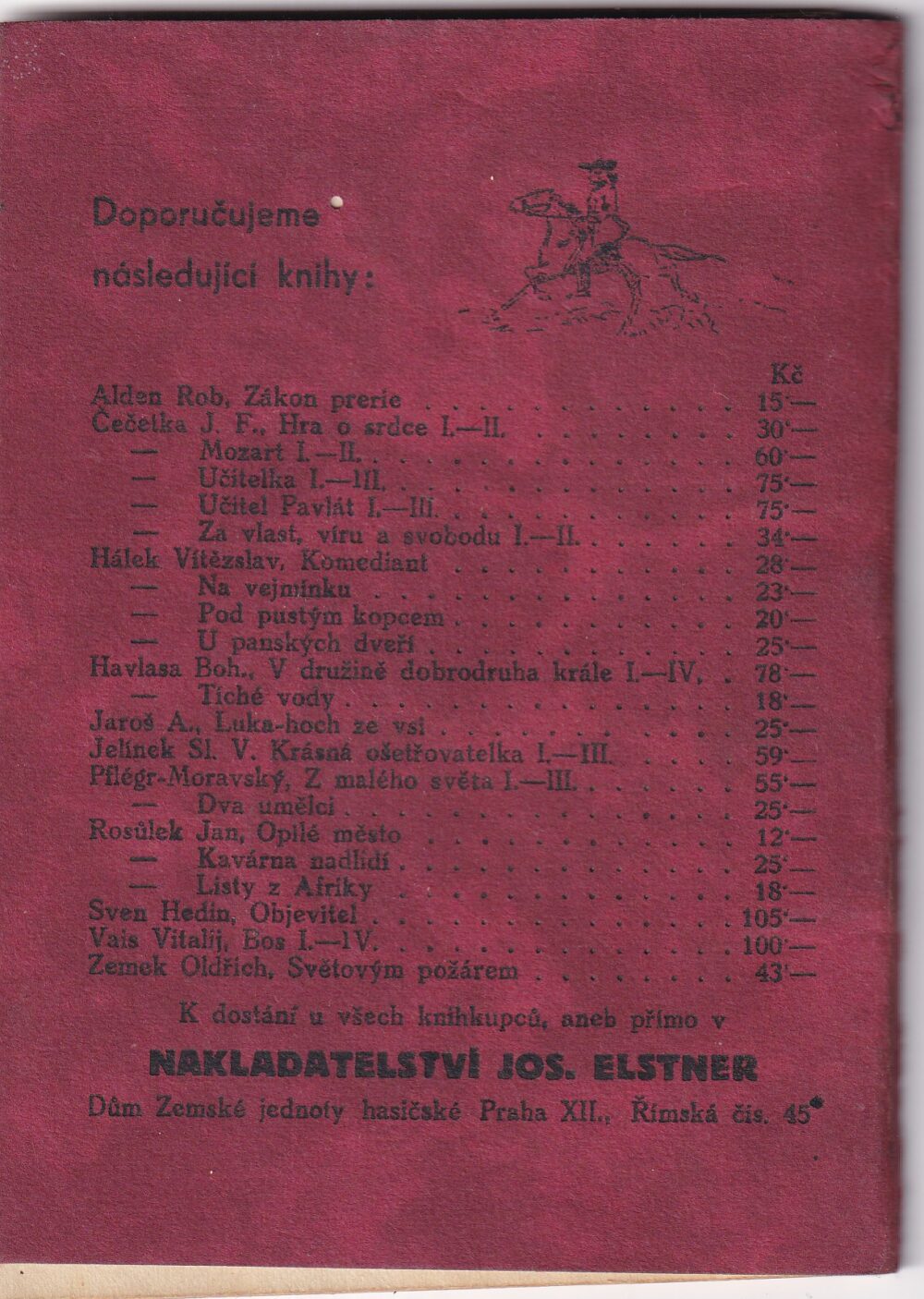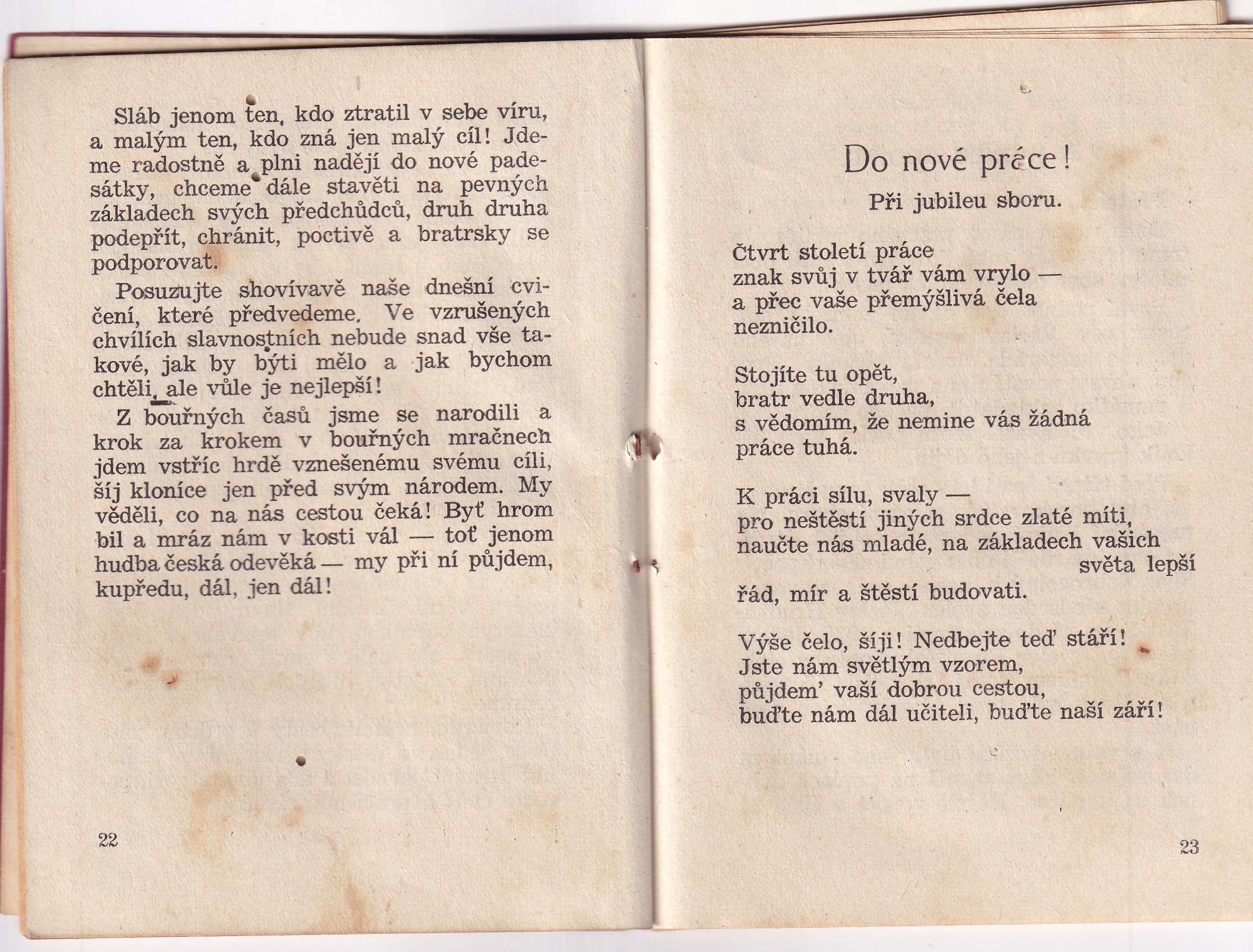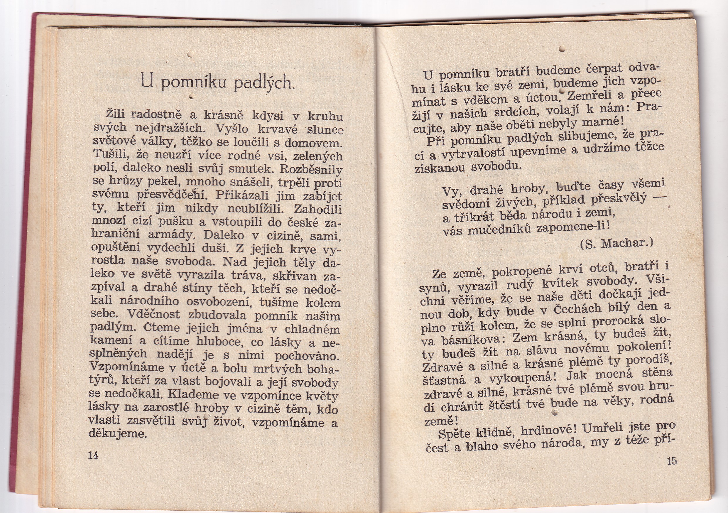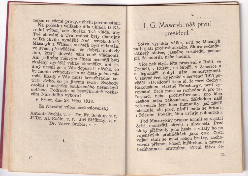 26 (K3-2) Rozměr 10 x 14 cm. Hasičské příručky. Svazek 1. Zlatá knížka – Příručka živých slov k slavnostem a ke každé příležitosti pro dobrovolné hasiče a jejich přátelé. V Praze 1934. Nakladatel Josef Elstner. Z obsahu: Zvony svobody. Provolání Národního výboru. T.G.Masaryk, náš první prezident. U pomníku padlých. Jan Žižka z Trocnova. Bílá Hora. Hesla…ad., uvolněná vazba, počet stran 64.