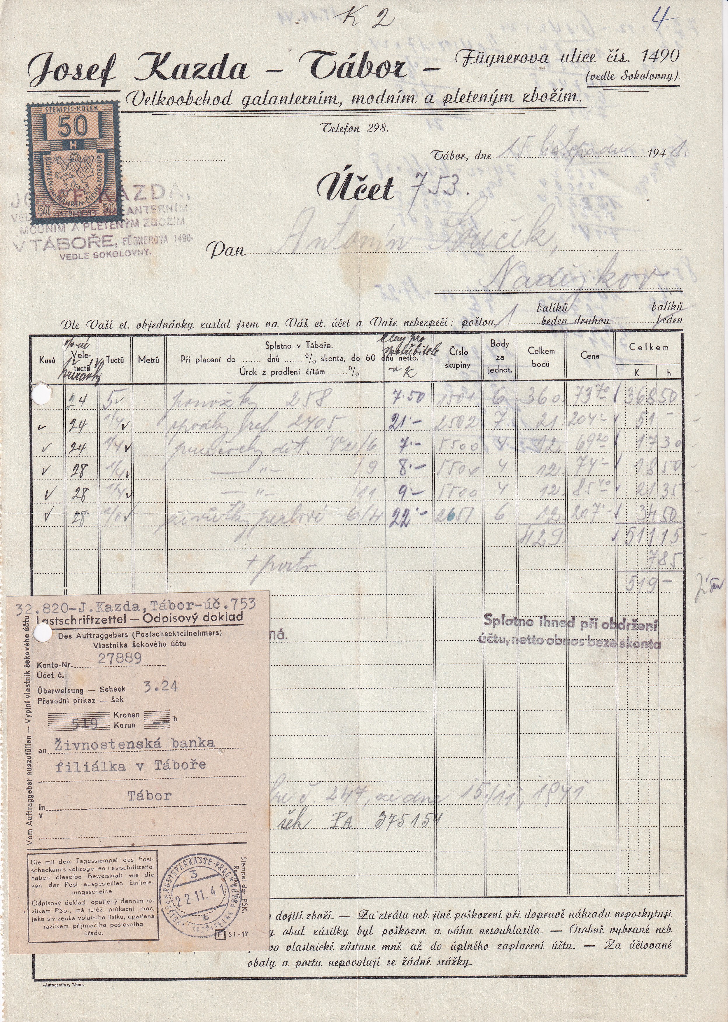 HomeObchodÚčtyHlavičkový účet Galanterní aj., Josef Kazda