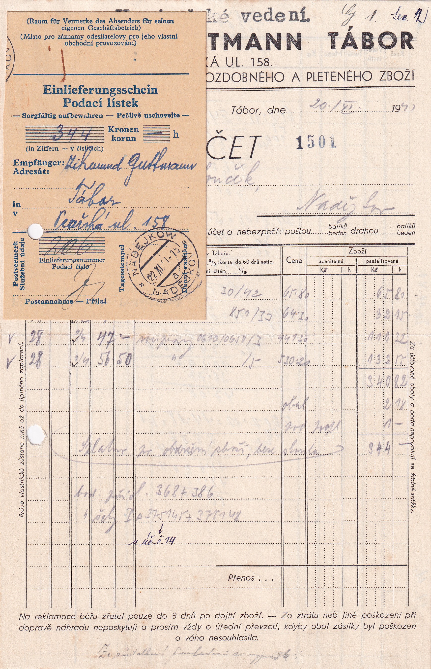 SKU: 8063 Category:Účty Tags:galanterie, guma, hlavičkové účty, hlavičkový účet, Jihočeský kraj, móda, obchod, pletené zboží, podvazky, prodej, první polovina 20století 1900-1945, stuha, Tábor, účet, účty, US, velkoobchod, Zikmund Guttmann