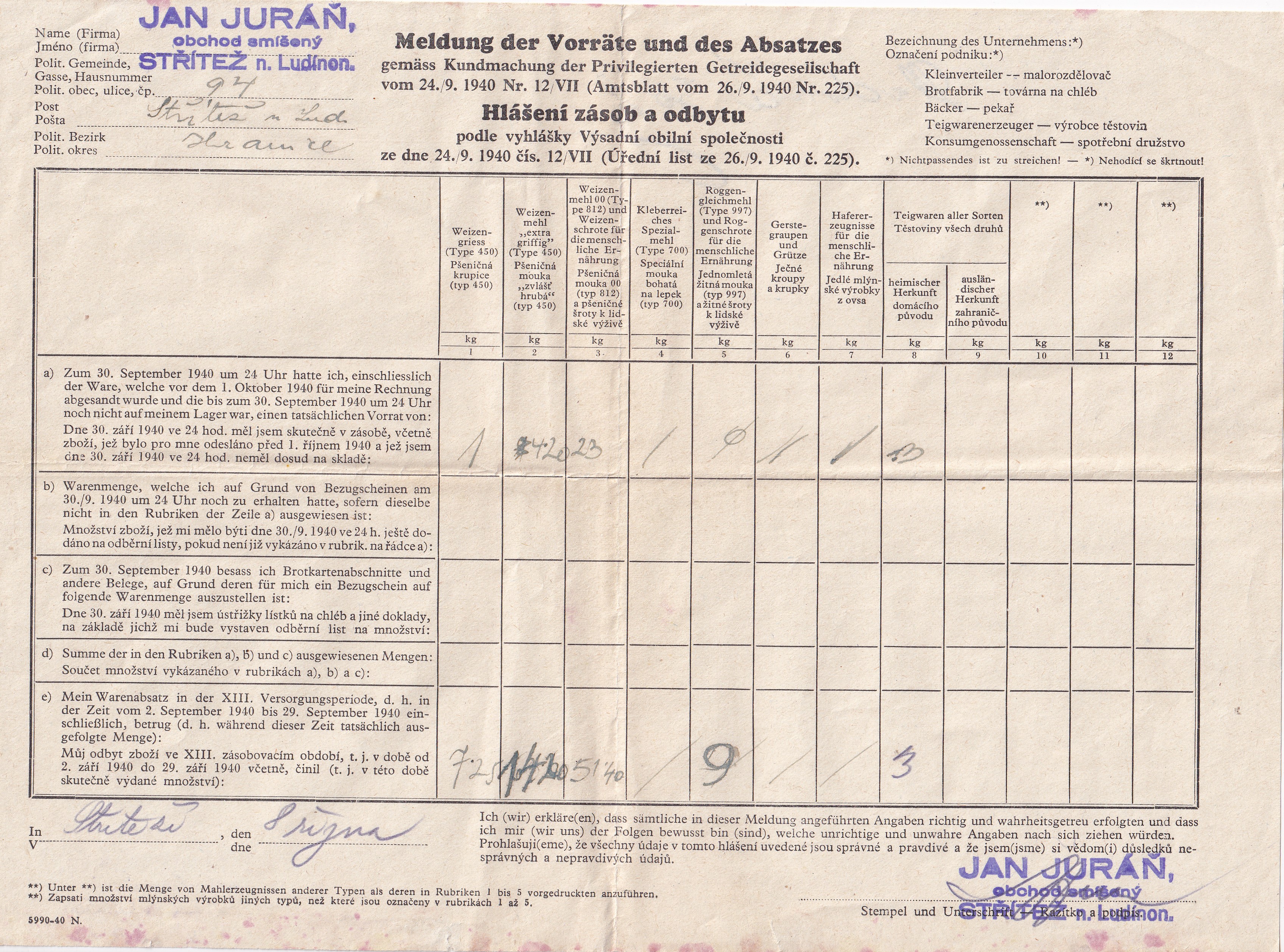 SKU: 8069 Category:Účty Tags:hlášení zásob a odbytu, hlavičkové účty, hlavičkový účet, obchod, okres Přerov, Olomoucký kraj, prodej, první polovina 20století 1900-1945, Smíšené zboží, Střítež nad Ludinou, účet, účty, US