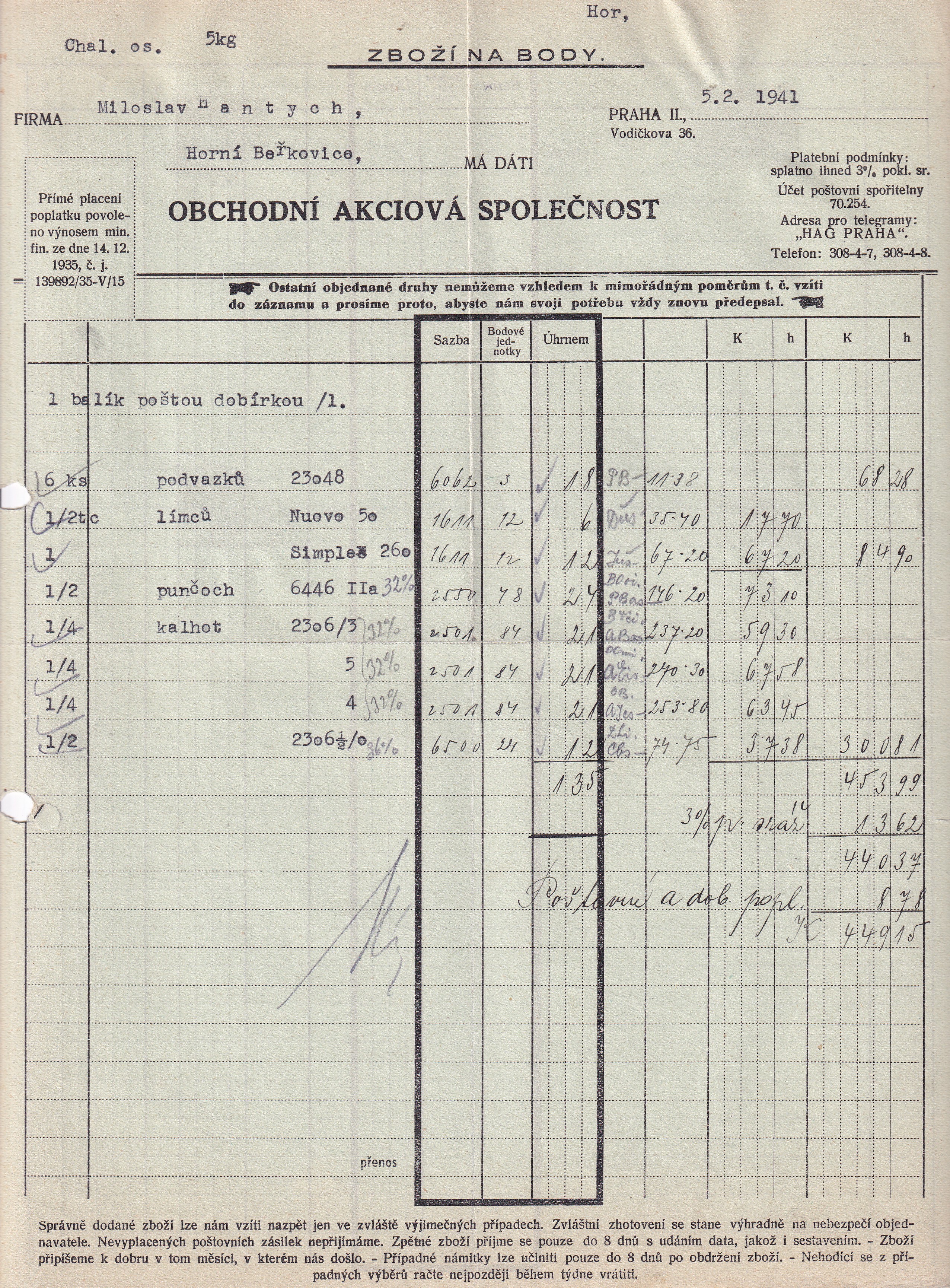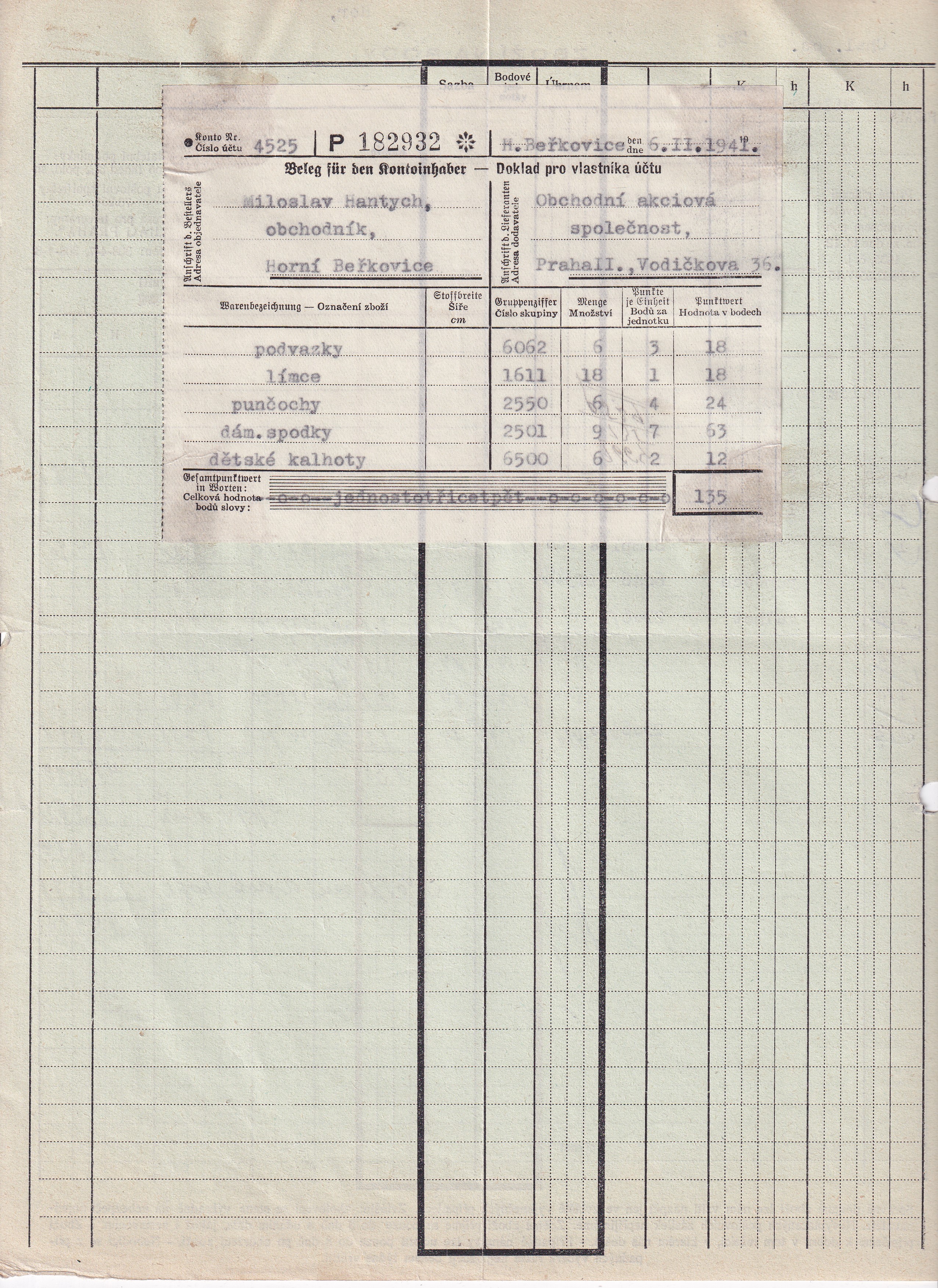Hlavičkový účet Obchodní a. s., Praha, 1941