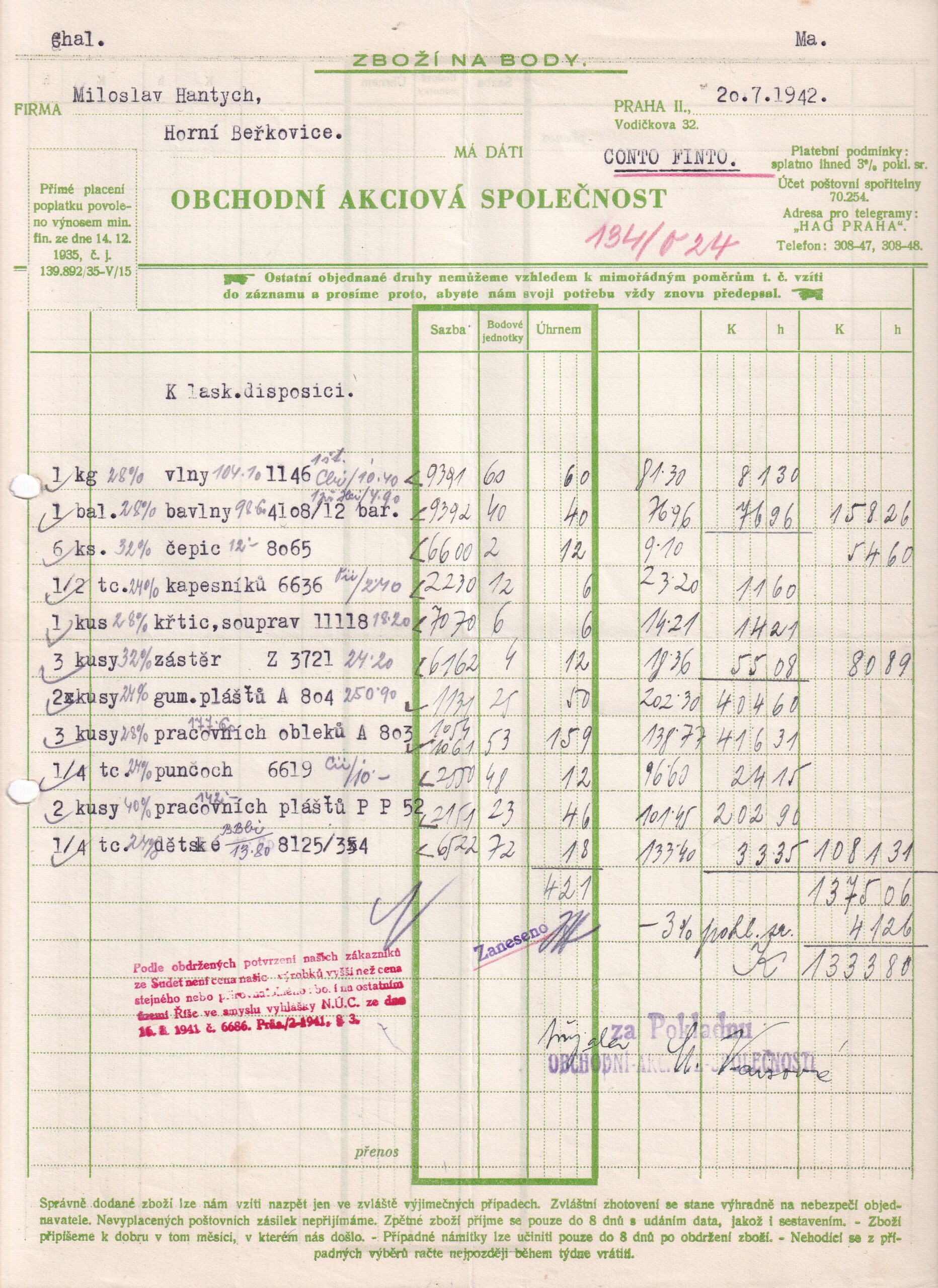 Hlavičkový účet Obchodní a. s., Praha, 1942