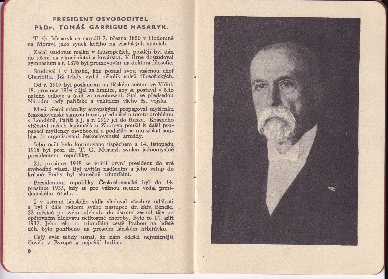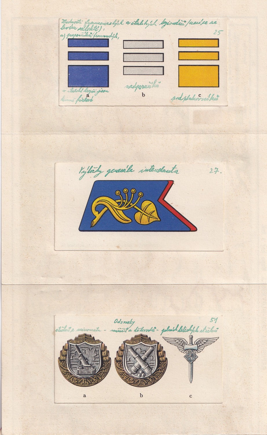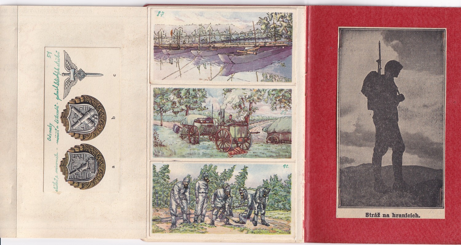 (hhj 66) Rozměr: 11 x 15 cm. Kalendář mladých obránců vlasti, 1938. Kalendář není kompletní, chybí strana 9 – 24. Počet stránek od 1 – 8 a 25 – 32 + mapka – Republika Československá. Mapa hor a řek. Dolepeny kartičky 9 ks – hodnosti, výložky, odznaky, Ruský legionář, památník odboje na Žižkově a jiné. Vydalo ministerstvo obrany hl. štáb – oddělení branné výchovy, v nakladatelství Svazu čs. důstojnictva „V O K“ v Praze. Tiskem fy Bayer v Kolíně.