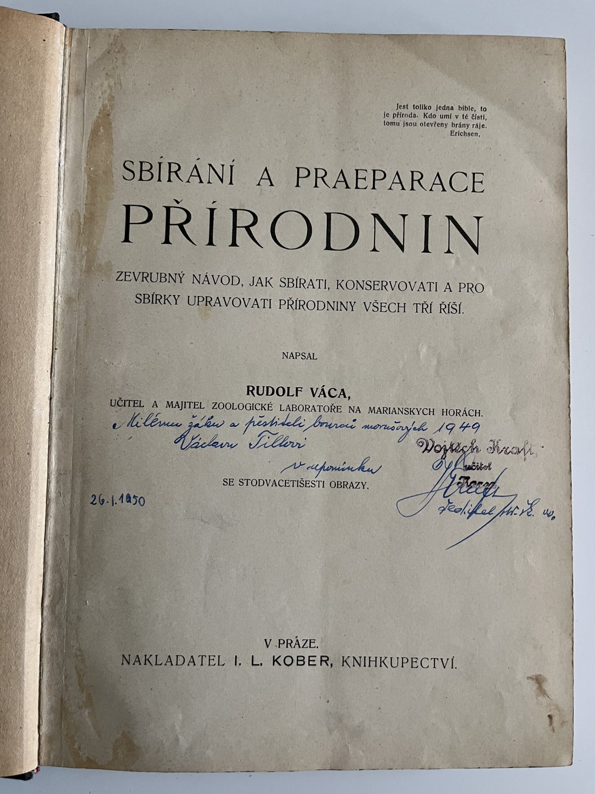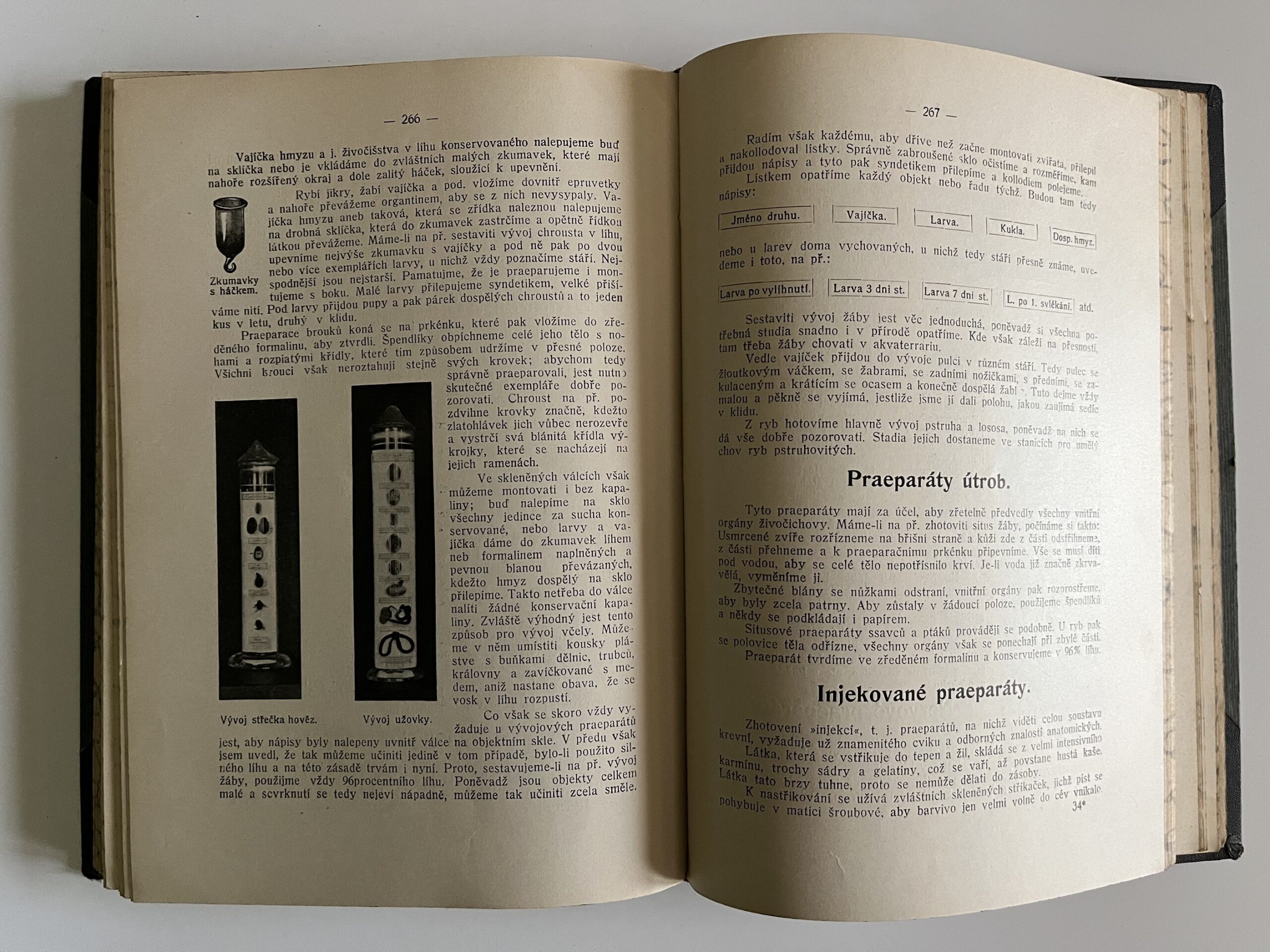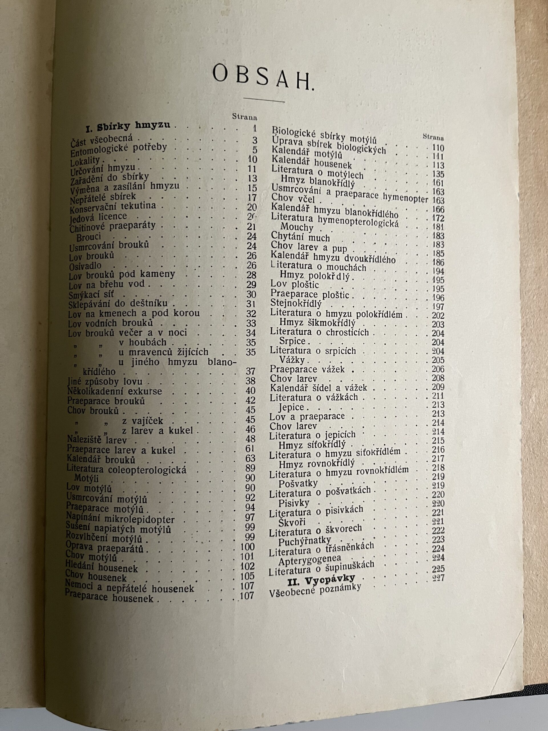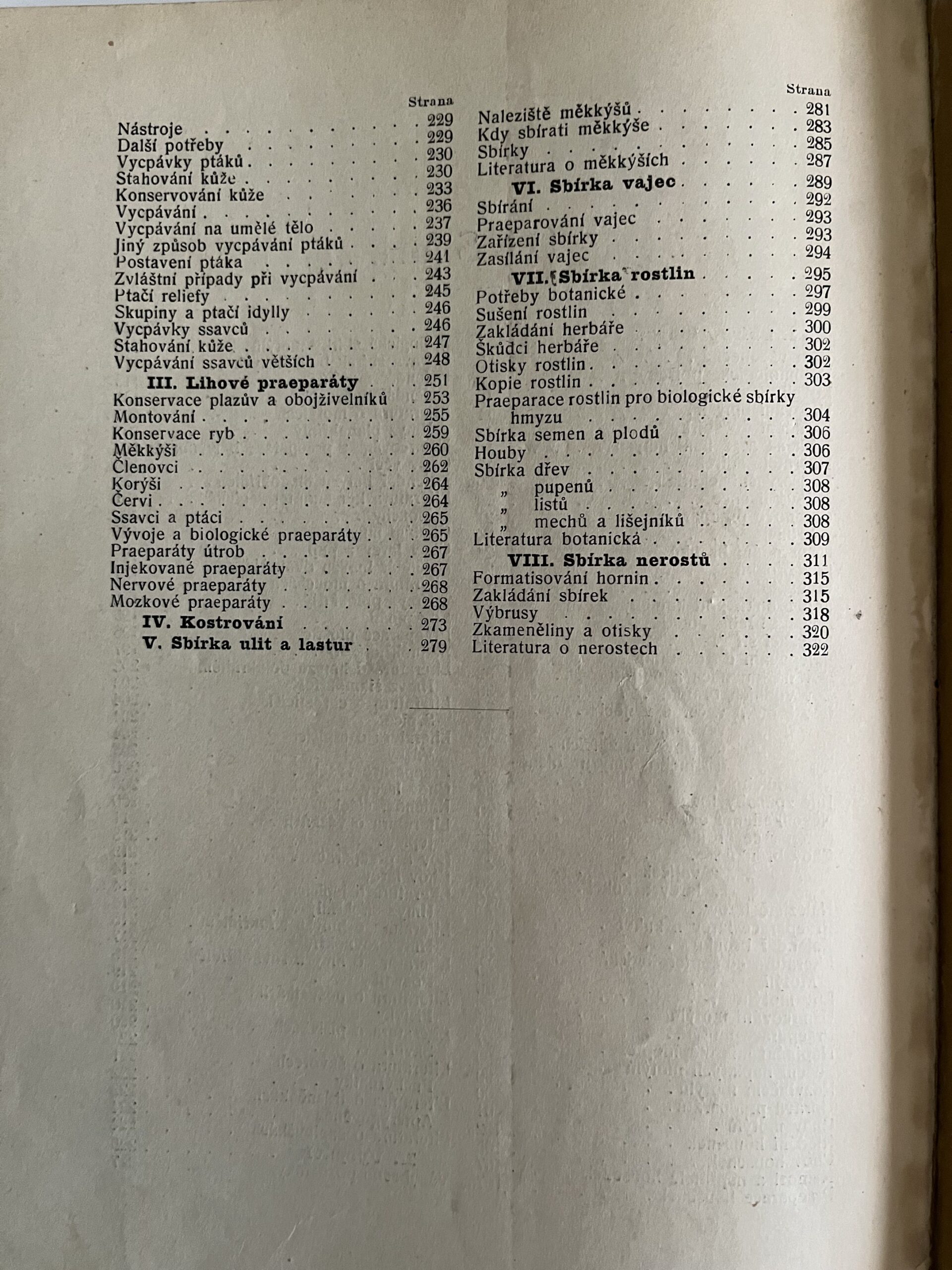 HHY Rozměr: 18 x 25 cm. Z obsahu: I. Sbírky hmyzu. II. Vycpávky. III. Lihové praeparáty. IV. Kostrování. V. Sbírka ulit a lastur. VI. Sbírka vajec. VII. Sbírka rostlin. VIII. Sbírka nerostů. Ilustrace. Počet stran 322.