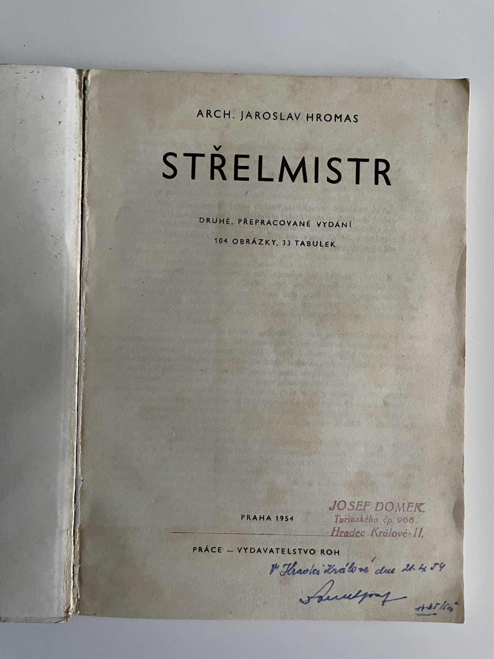 HomeObchodŘemesla a průmyslKniha STŘELMISTR, Arch. J, Hromas Pro stavební praxi a těžbu hmot 1954