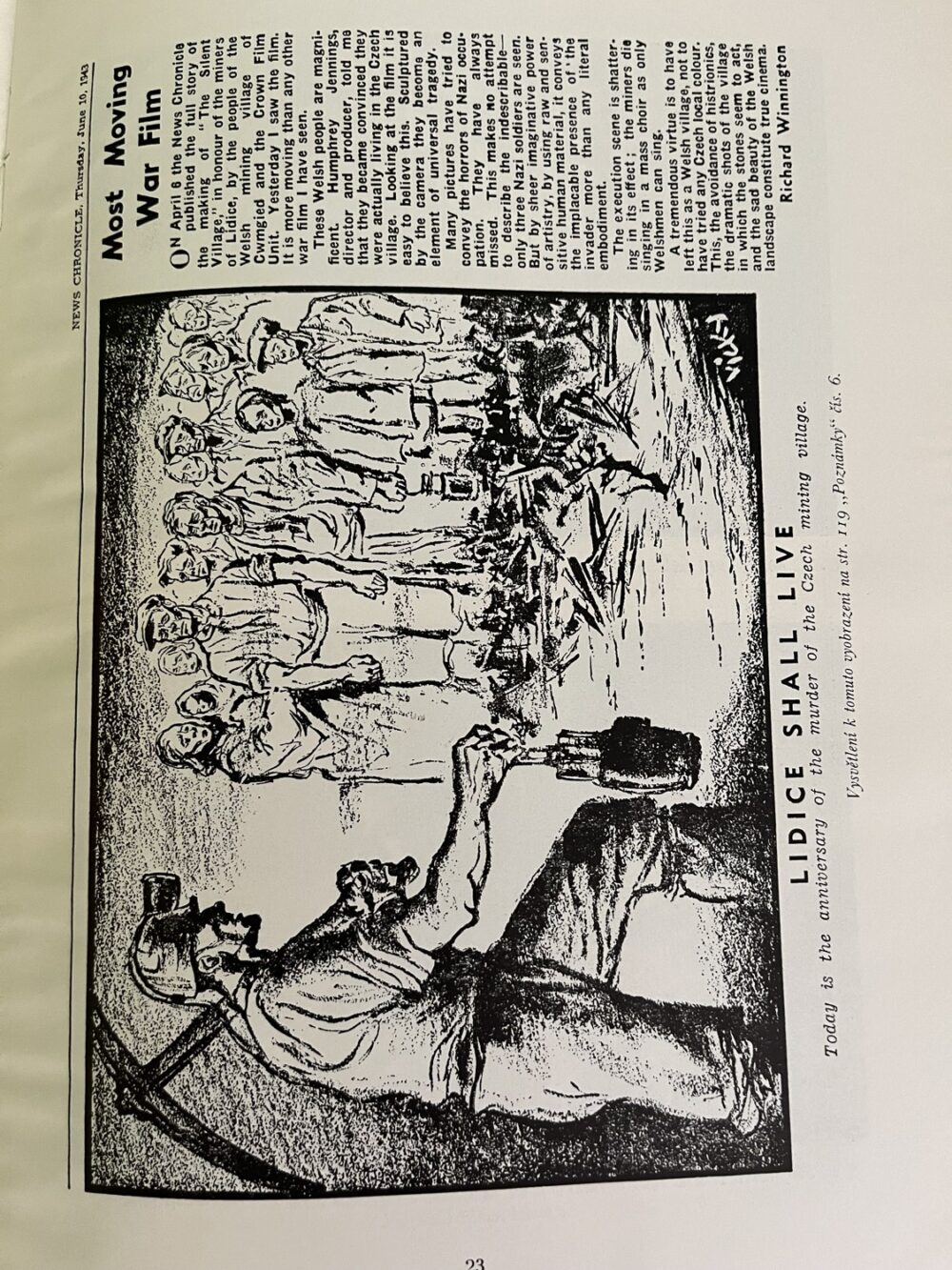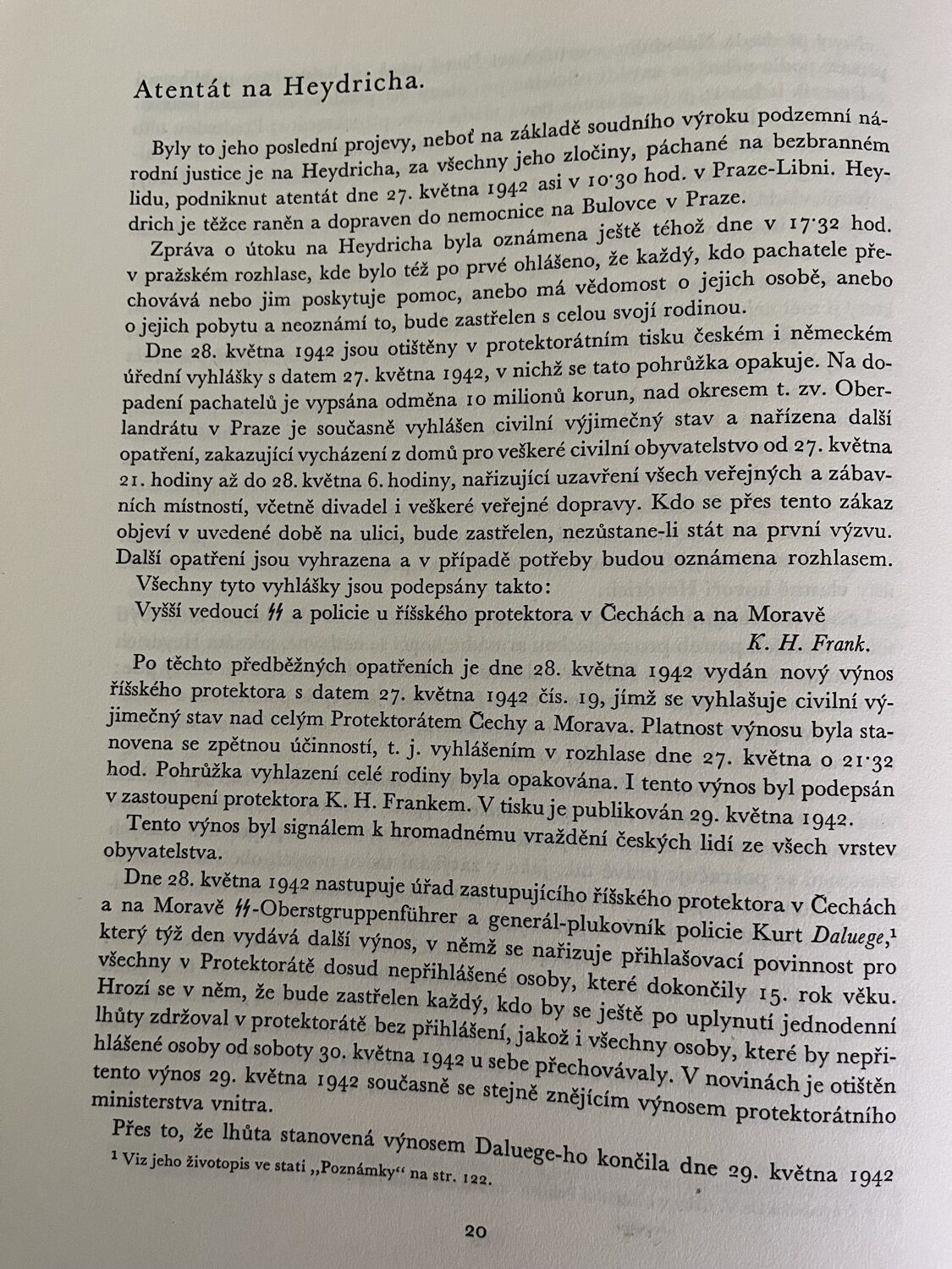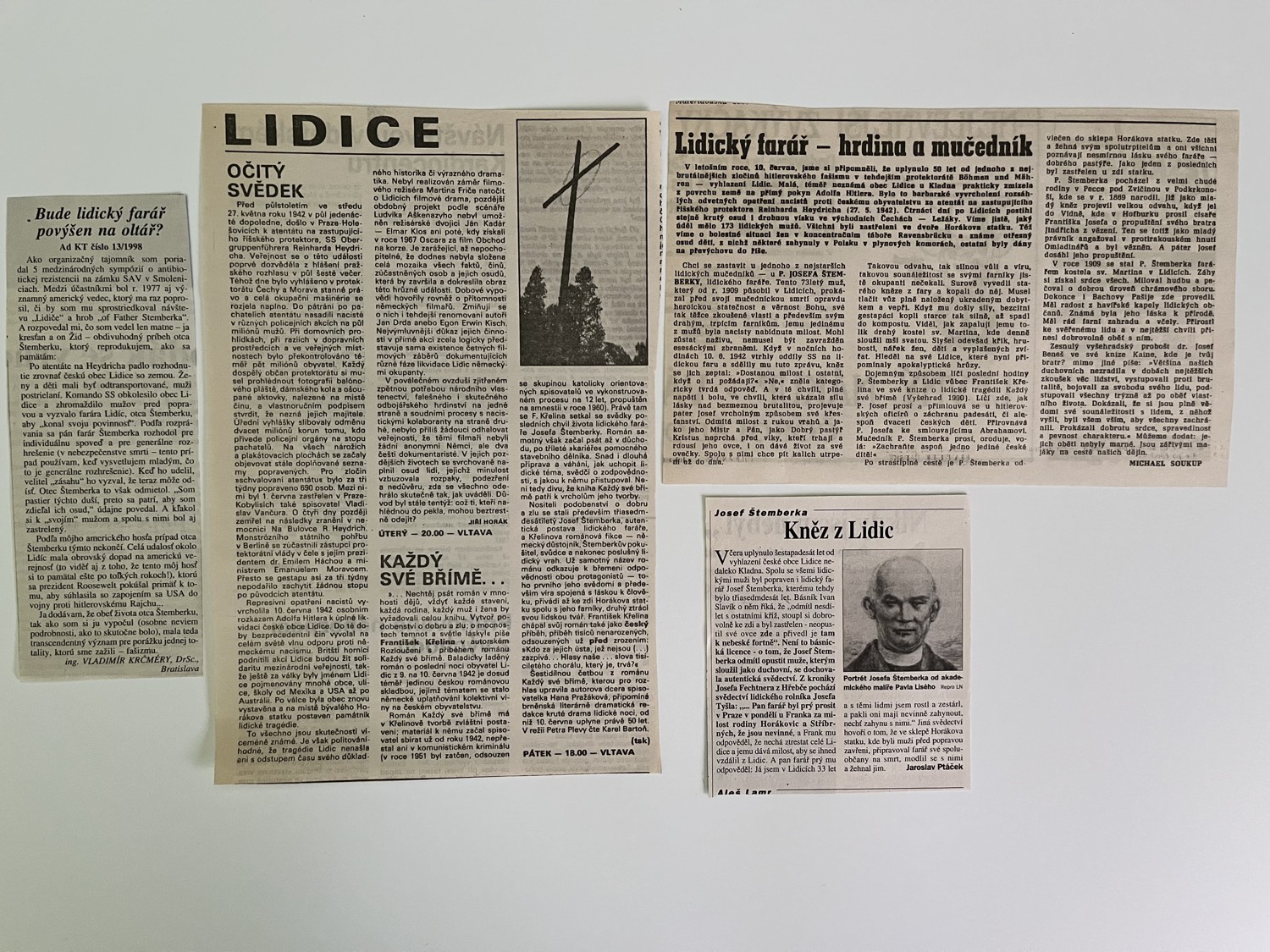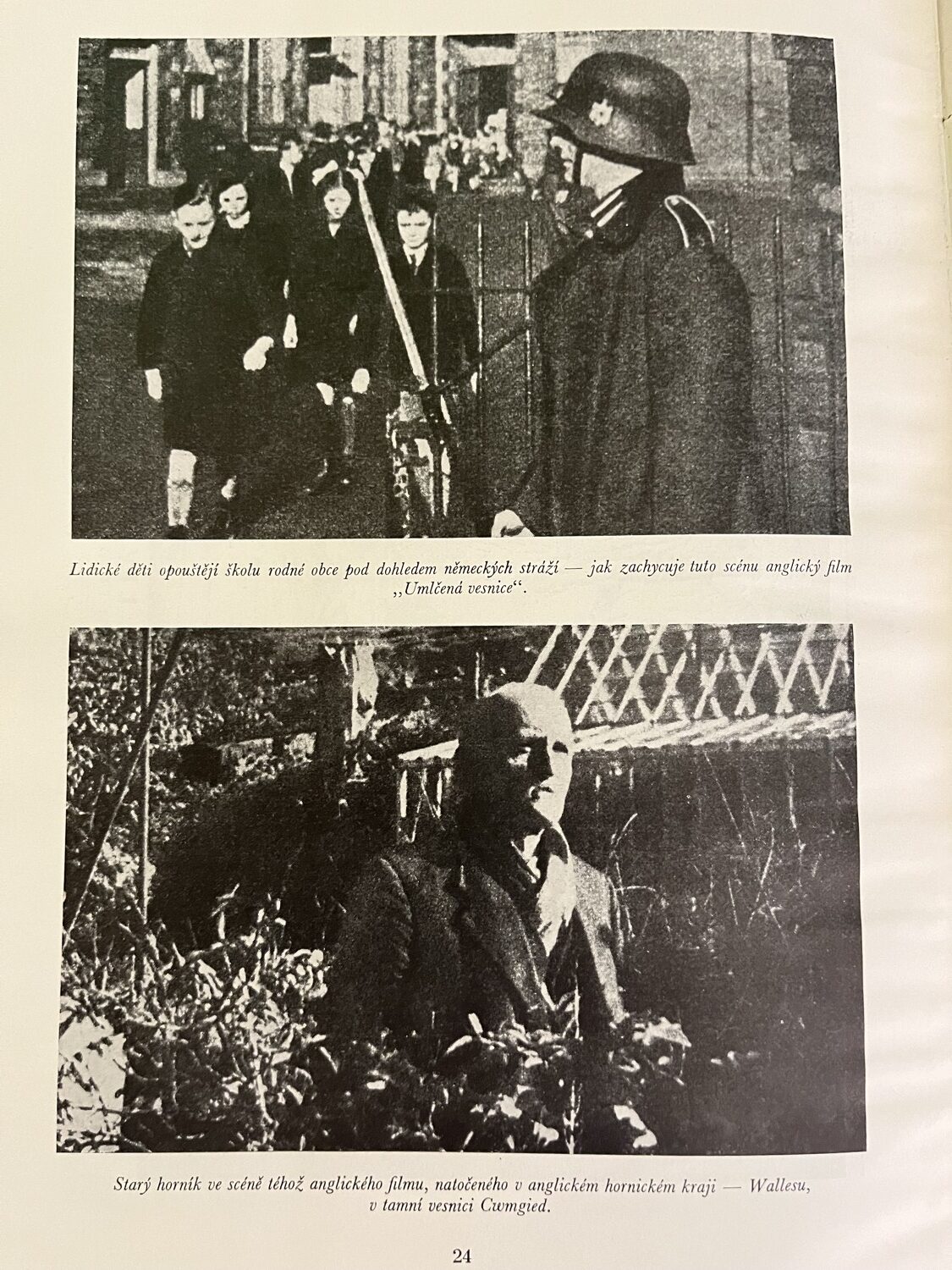 hhj 19 Rozměr: 14,5 x 20,5 cm. Kniha Lidice, napsal Cyril Merhout. Vydalo Ministerstvo informací v Praze, 1945. Počet stran 29. Rozměr: 21 x 30 cm. Lidice Ministerstvo vnitra Odbor pro politické zpravodajství. Lidice – Čin krvavého teroru a porušení zákonů i základních lidských práv. Počet stran 123 + obsah, seznam vyobrazení + 30 stran, které obsahují fotografie, ofocené dokumenty, články, ilustrace, snímky, mapka, plánky + přiloženy výstřižky z novin a kartička s portrétem lidického faráře Josefa Štemberka.