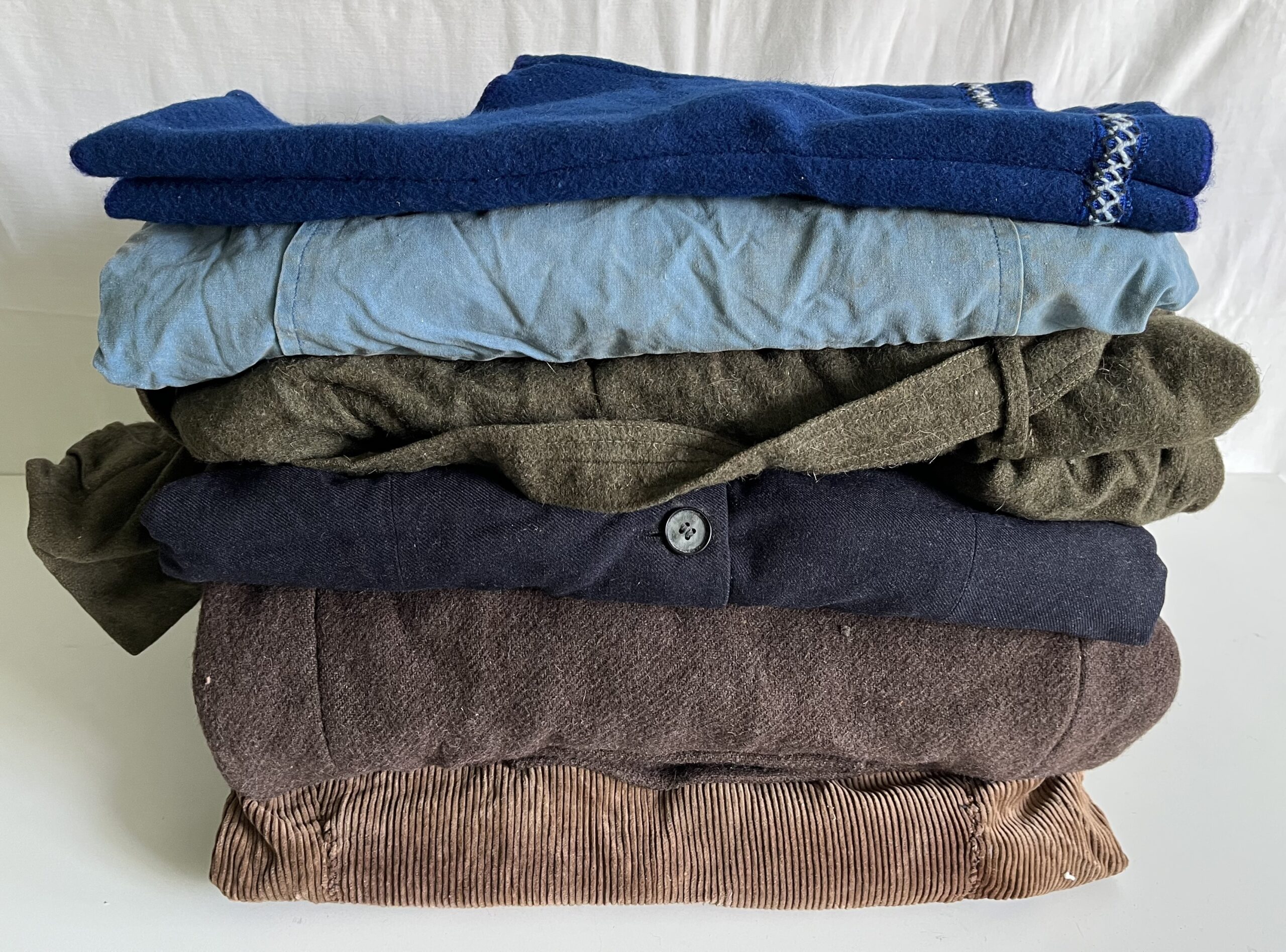(HHZ T-8) 6 ks. Modrá vestička. Bunda – Severka. Kabátek hnědý – Severka. Sako. Kabátek – Oděvné závody kpt. Nálepku, Prešov. Manšestrový kabát. Originální kusy z dob socialismu jsou vhodné např.pro divadelní, filmové či veteránské akce ap. Cena je za konvolut, ale lze po dohodě zakoupit jednotlivě.