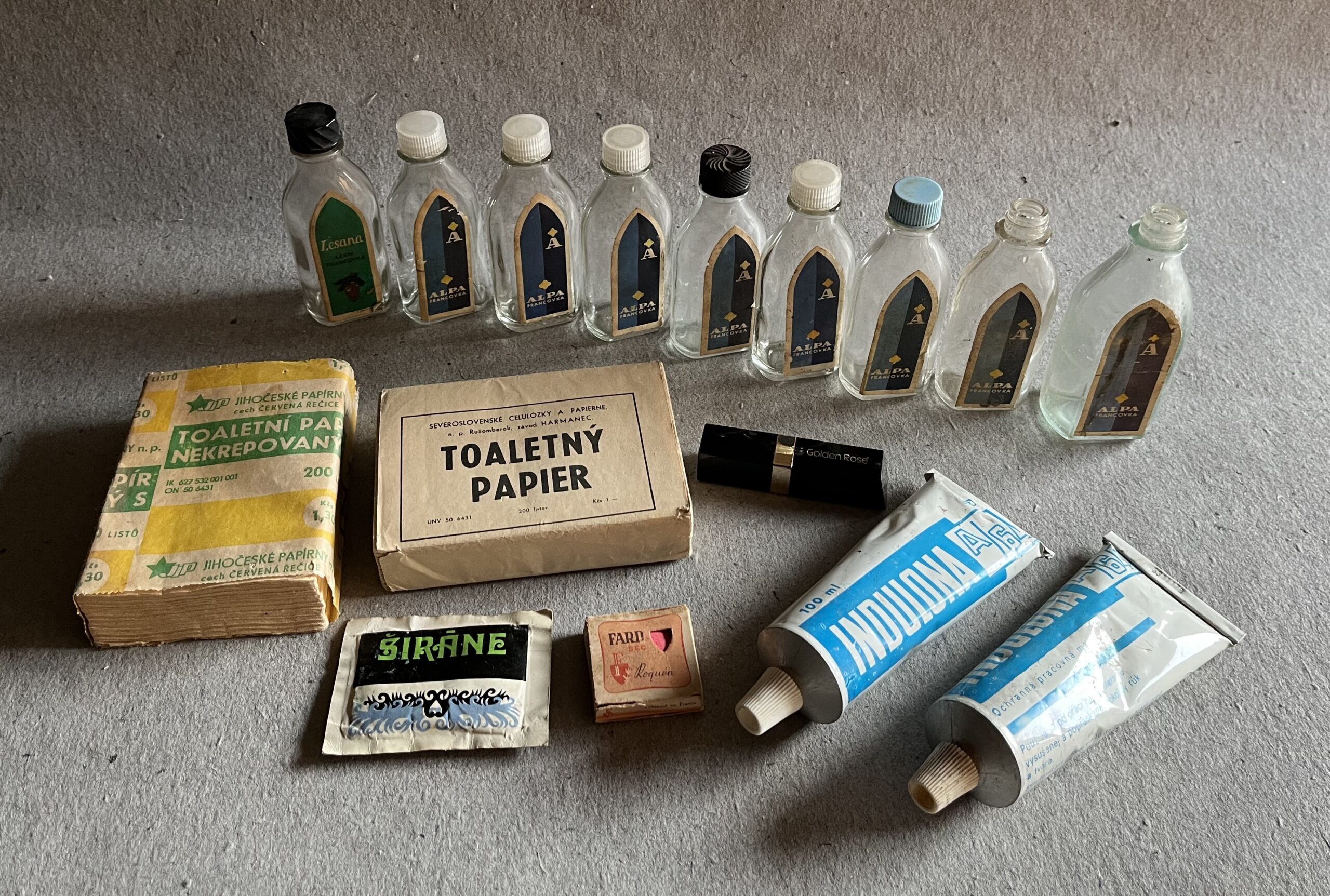 Konvolut drogerie, kosmetiky z dob socialimu, 16 ks Alpa toaleťák