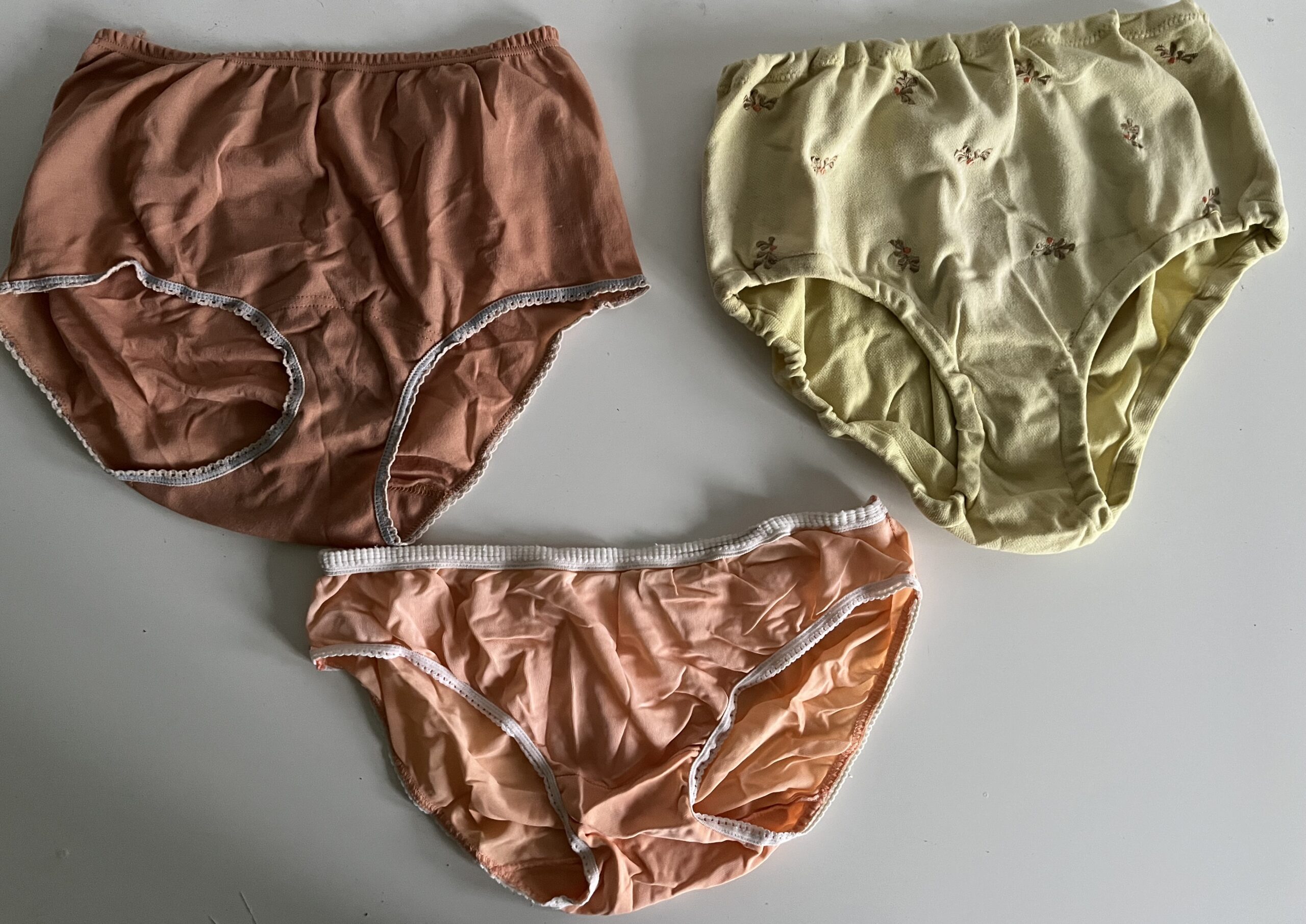 (HHZ T-6) Cena je za konvolut, ale lze po dohodě zakoupit jednotlivě. Spodní prádlo – kalhotky nenošené, uloženky. Originální kusy z dob socialismu jsou vhodné např.pro divadelní či filmové akce ap.