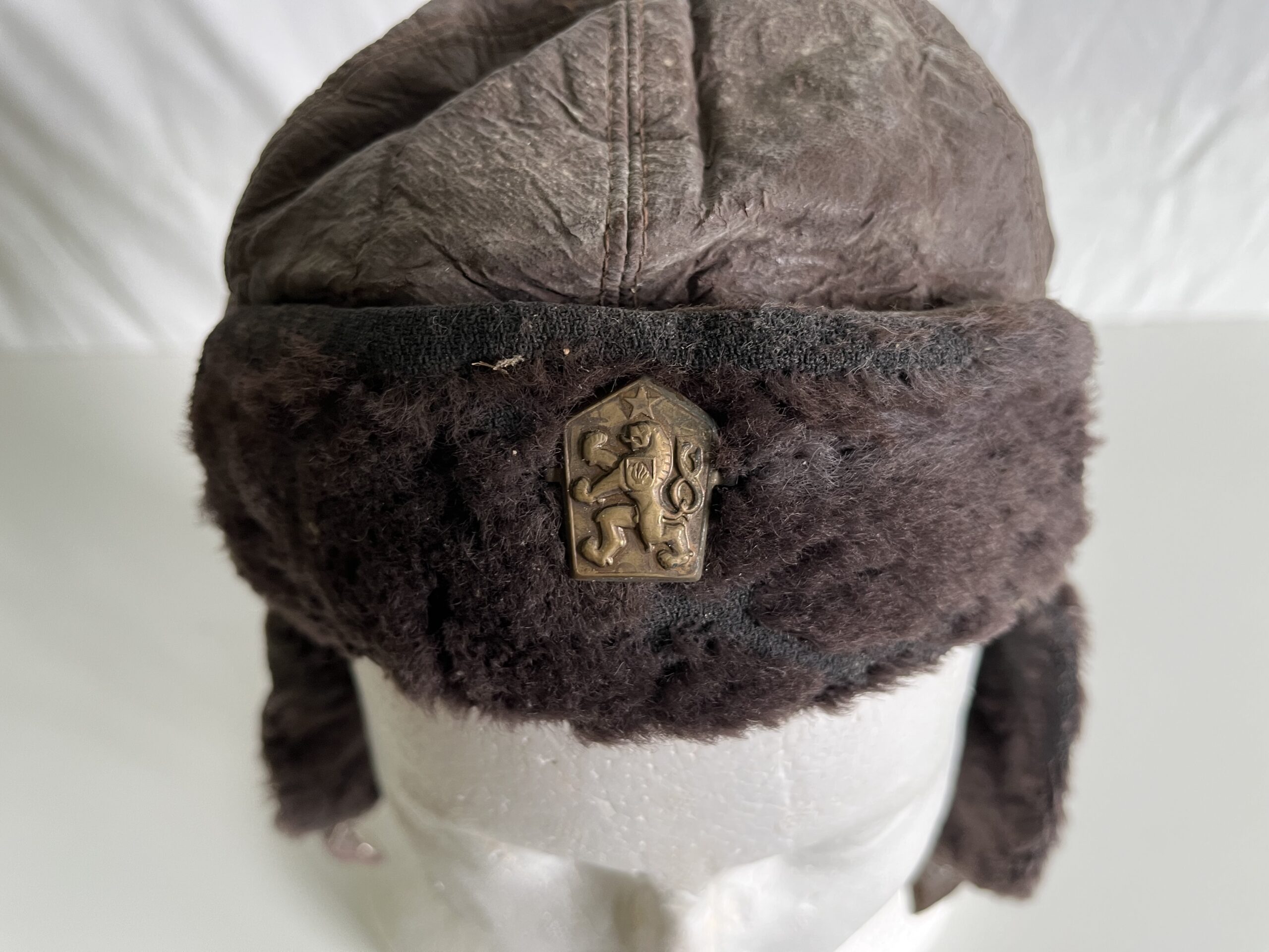 (HHZ T-2) Konvolut z vojny – Bunda Otavan. Košile Šohaj – Strážnice n.p. Ušanka beranice s oznakem Lva. Brašna. Peněženka. 2.pol.20.století.