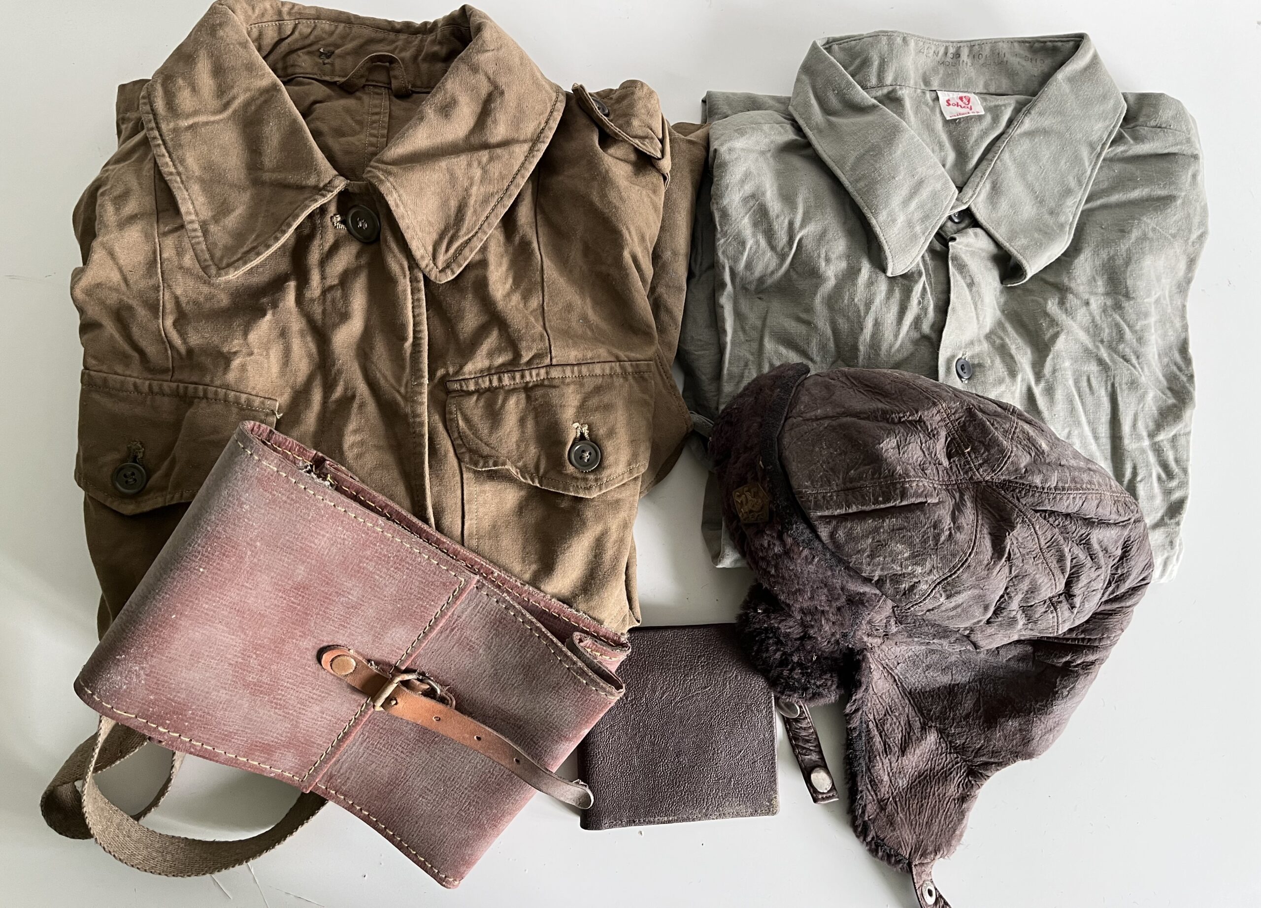 Konvolut z vojny – Bunda Otavan, košile, ušanka, brašna, peněženka
