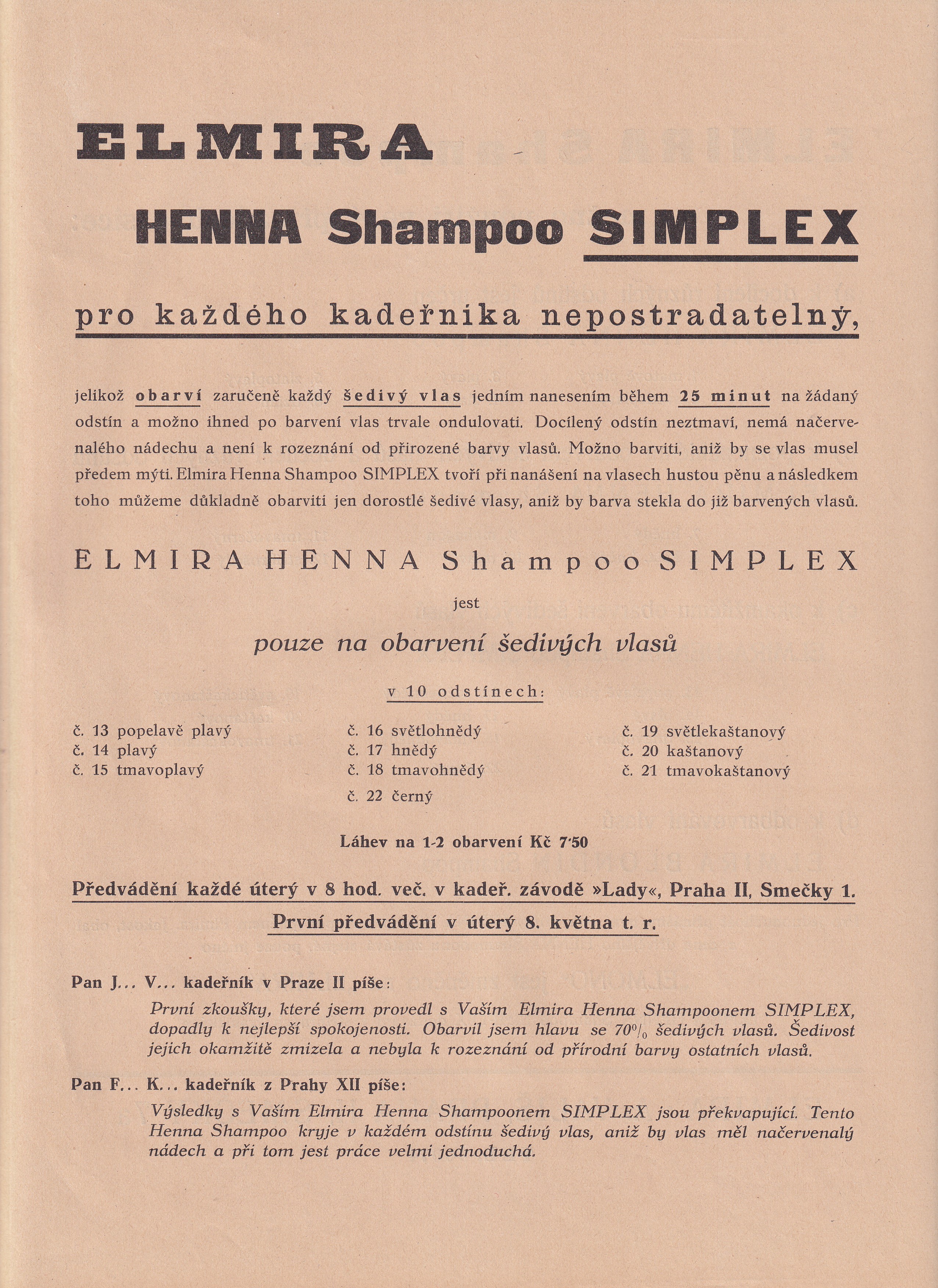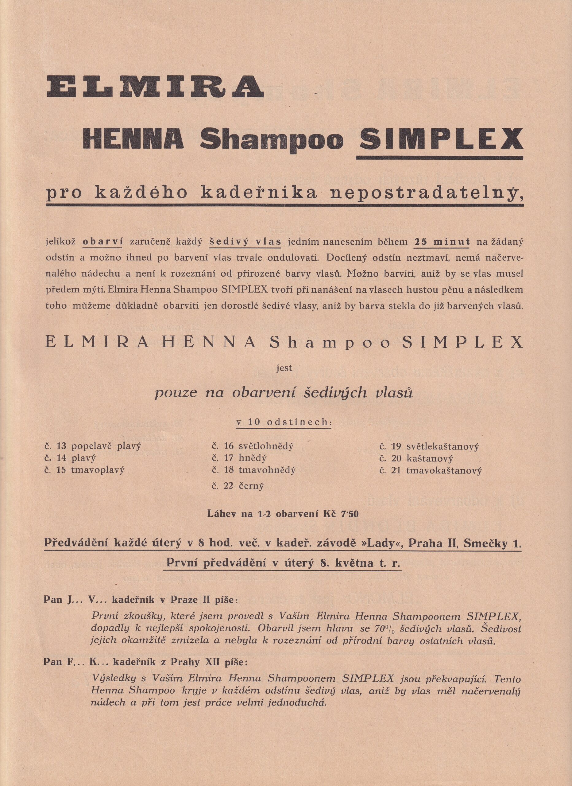 Leták, Henna šampon Simplex, Praha