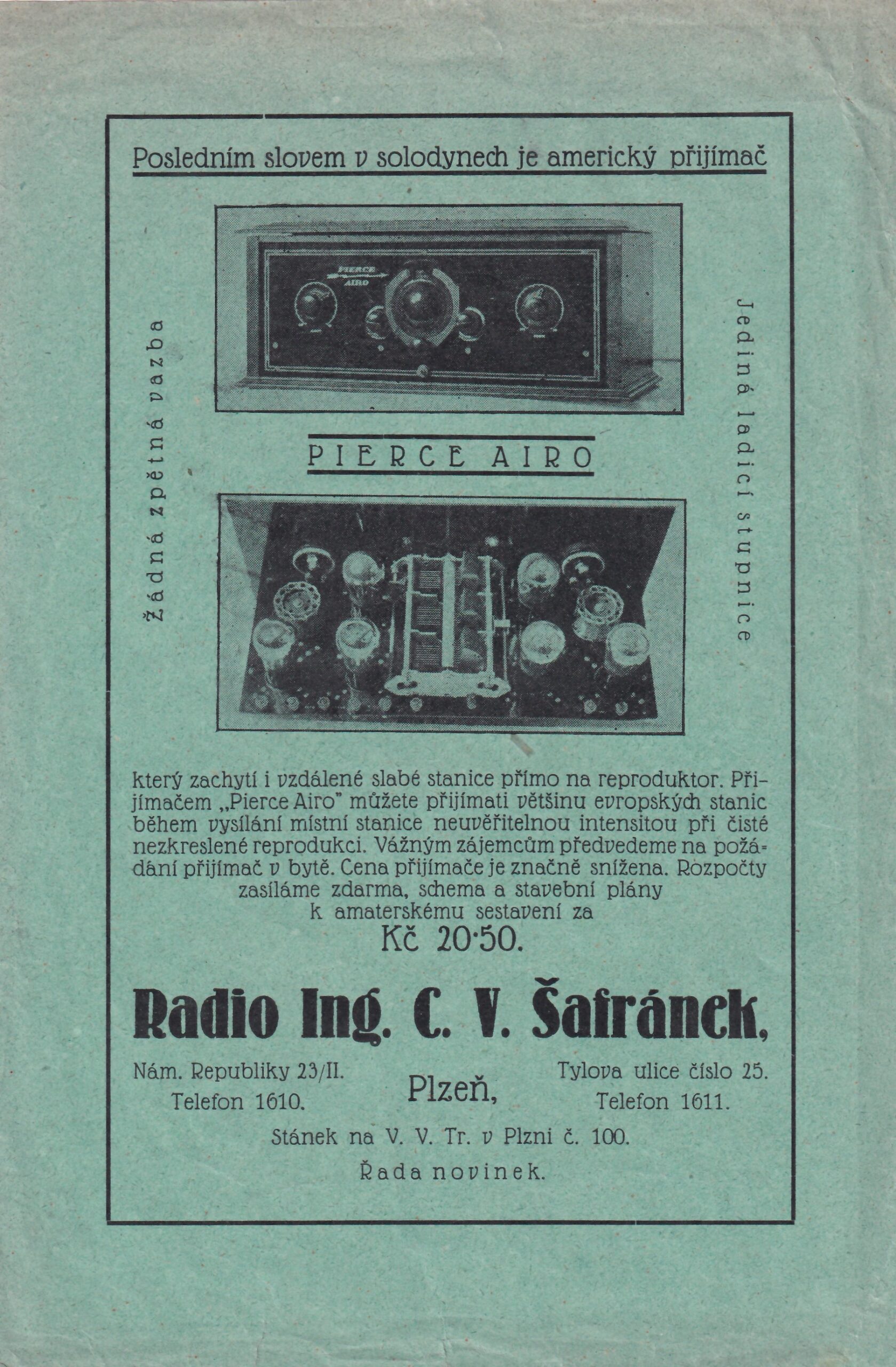 SKU: 9827 Category:Letáky Tags:leták, letáky, okres Plzeň, PI, Pierce Airo, Plzeň, přijímač, přijímače, první polovina 20století 1900-1945, rádia, rádio, Šafránek, technické přístroje a elektřina