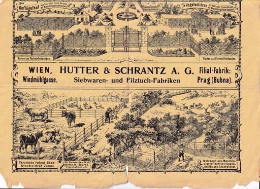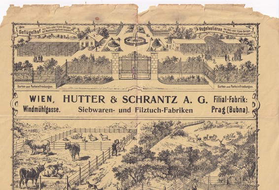 Leták textil Hutter a Schrantz, Vídeň, Praha