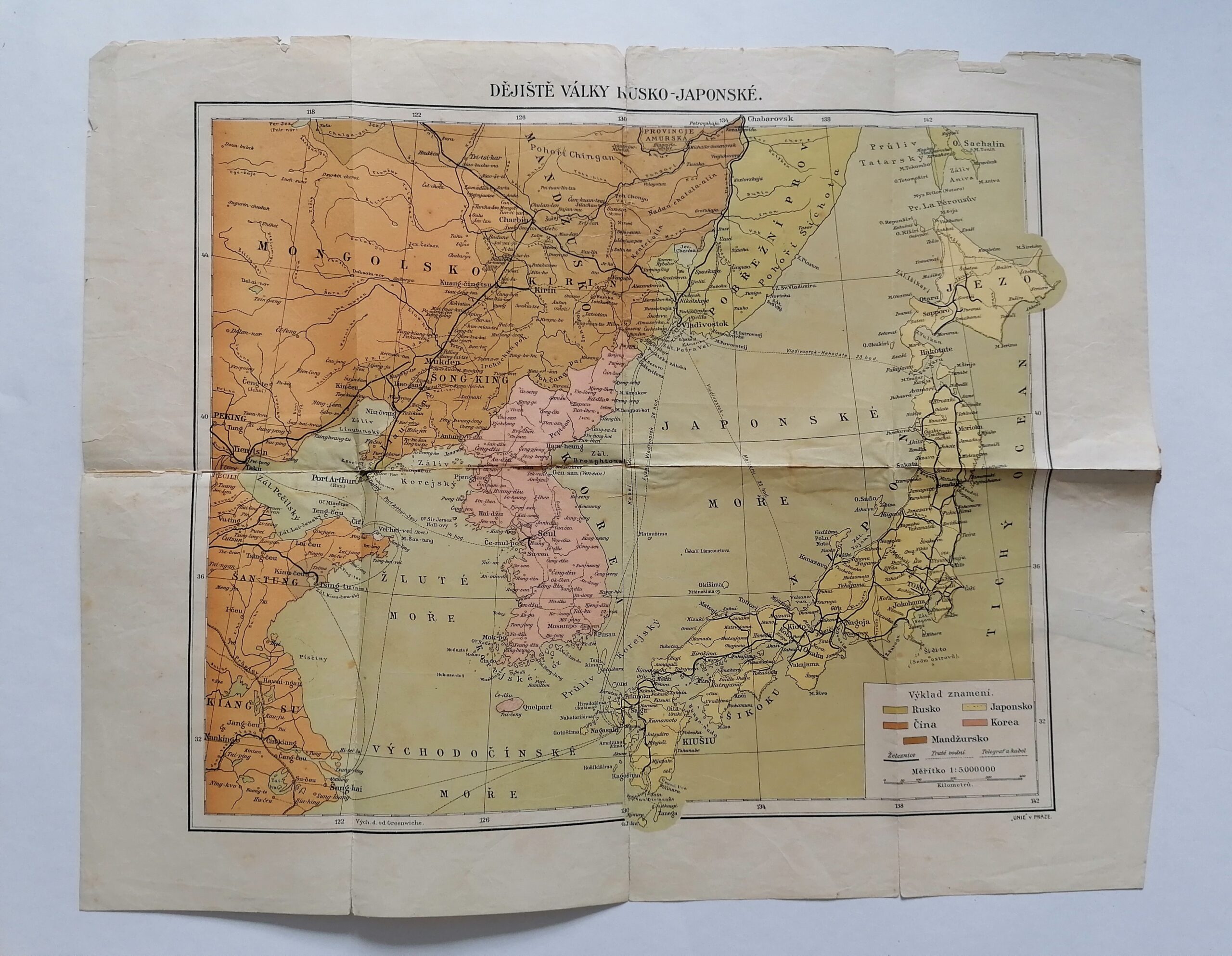 (XB-107-151) Rozměr: 56×45,5 cm; Stav: horní okraj potrhaný; Měřítko 1:5000000;