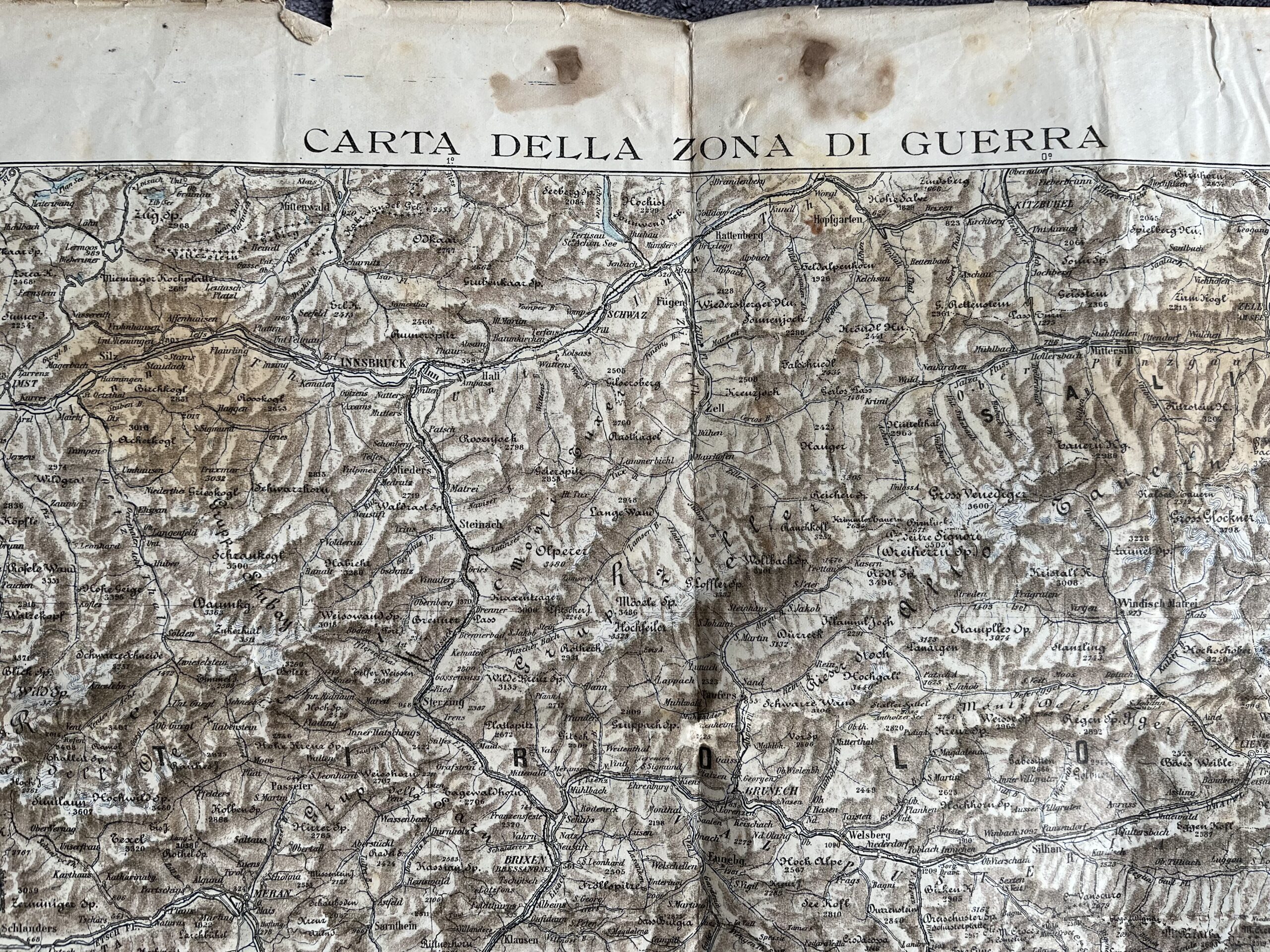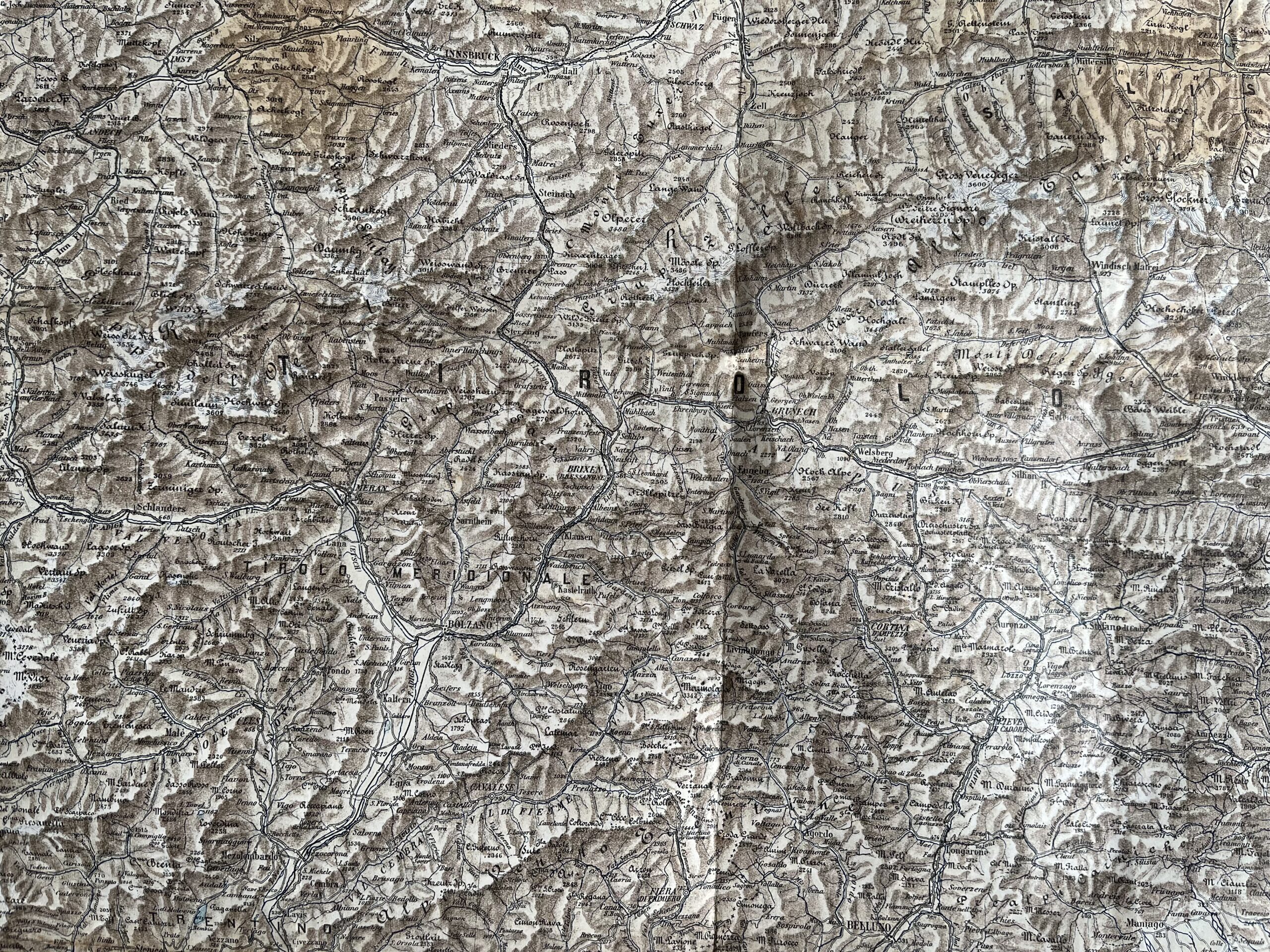 15 (K3-1) Rozměr 71 x 93 cm. Kilometrová stupnice 500 000. Mapa místy a v ohybech natržená. meziválečné zóny, vojenský geografický ústav 1915