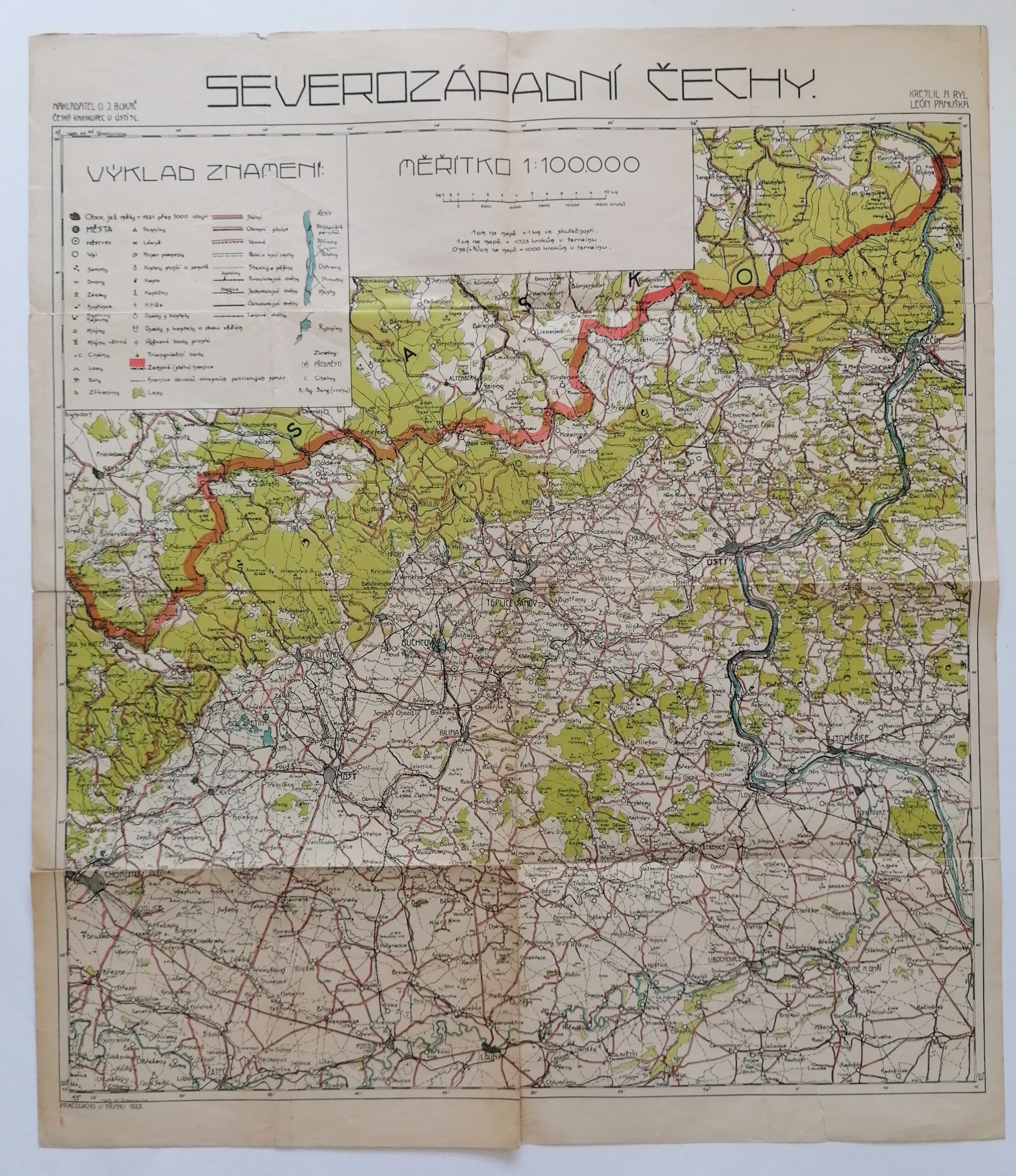 (XB-107-229) Rozměr: 65,5×76 cm; Stav: v ohybech natržená; Měřítko 1:100000; První republika 1918-1938;