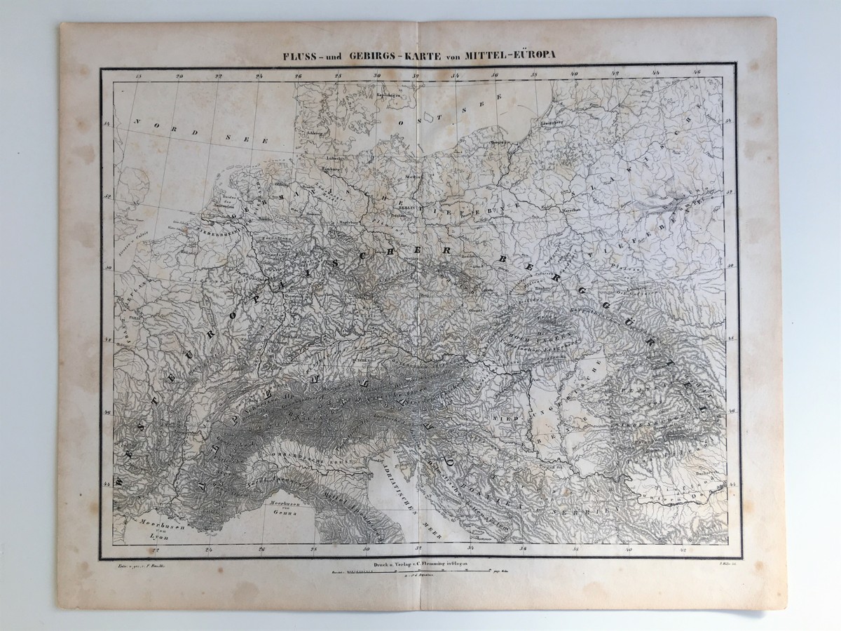 Mapa z první poloviny 19.století,  Centrální Evropa