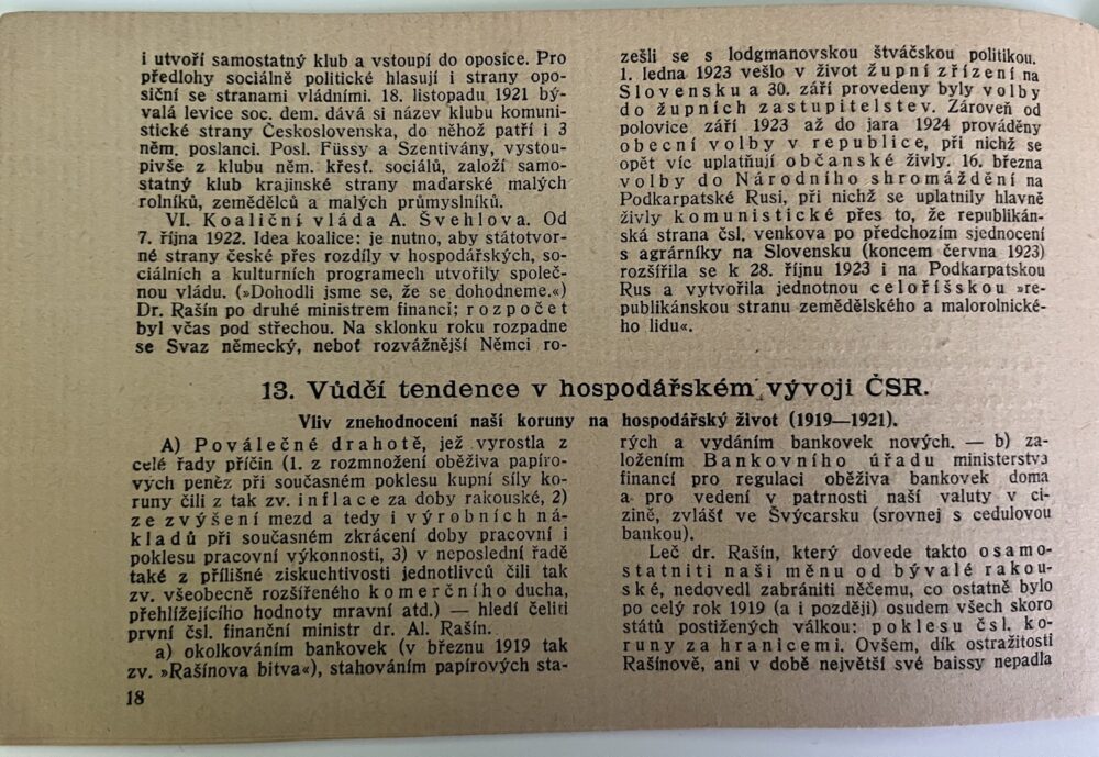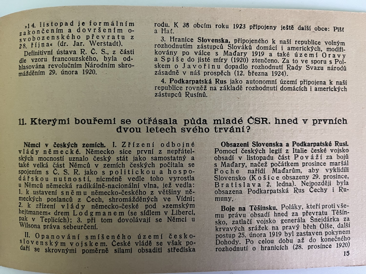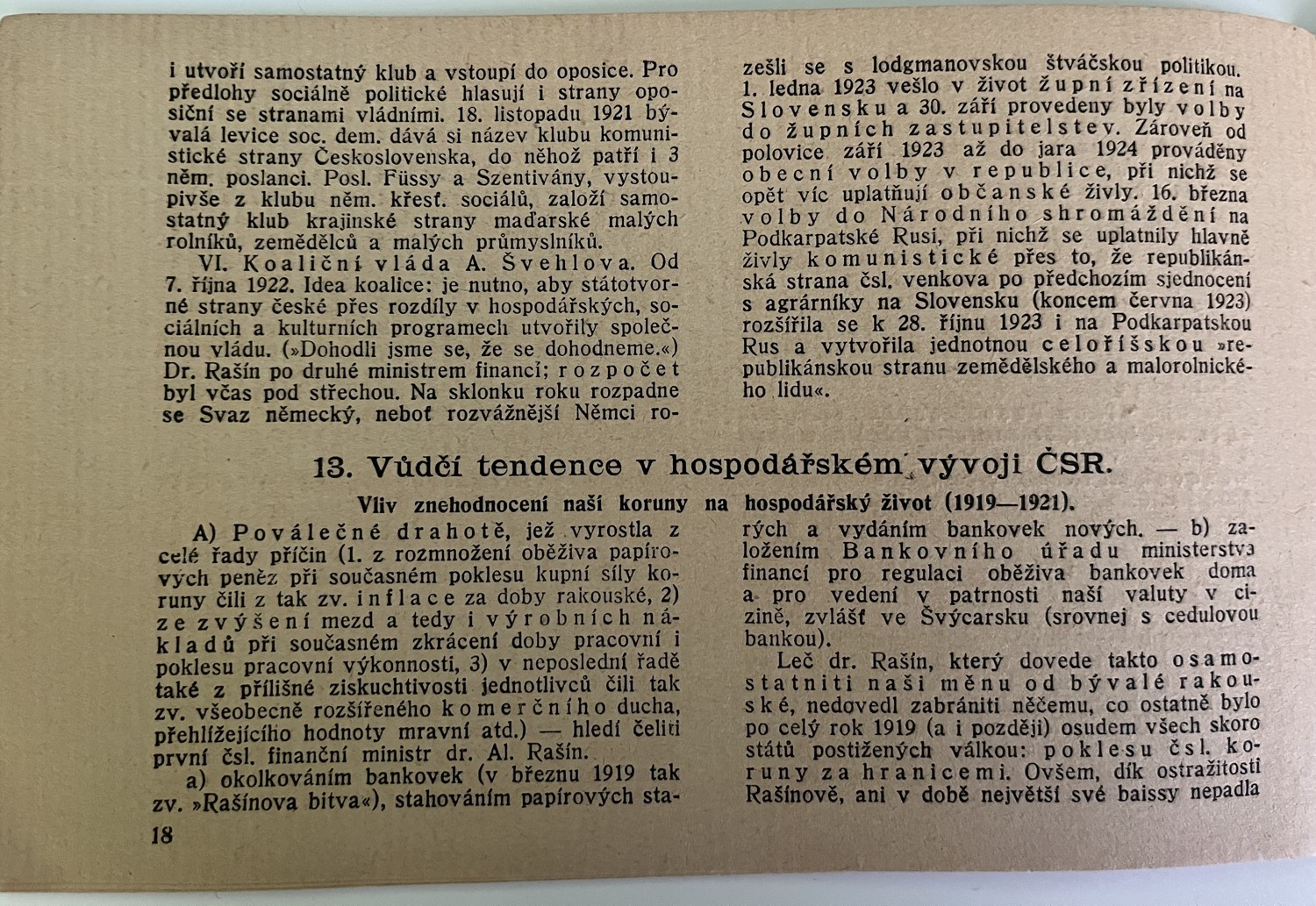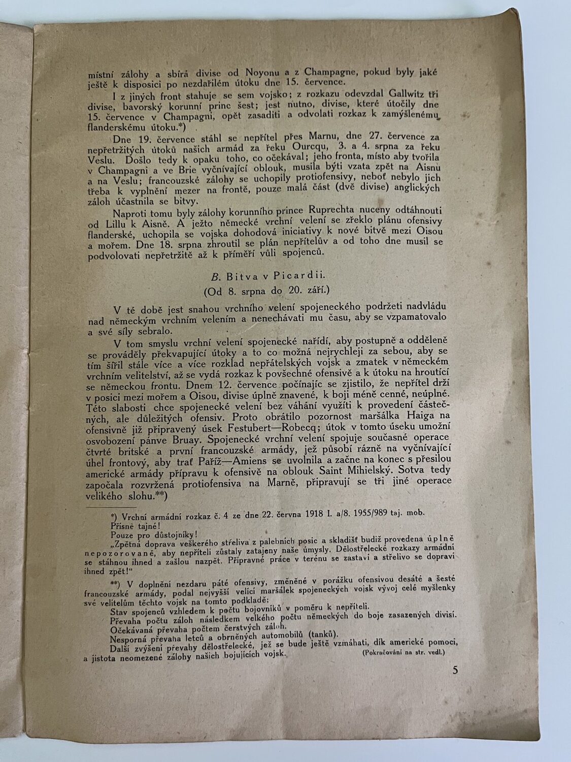 (hhj 17) 3 x kniha. Proč se Německo 11. listopadu 1918 vzdalo? – Pojednání o událostech na západní frontě a překlad některých služebních svědectví franzouzského hlavního stanu, vydáno v Paříži 1919. Přeložil Major J. Marek. Počet stran 24 + 3 x mapka. Mučednictví českého lidu ve světové válce. Knihovna československých republikánů, napsal Petr Bezuchov, vydala firma: tiskárna Tuček Holešov. Počet stran 78 + obsah, vazba uvolněná. Přehledy o válce světové a o vývoji Československé republiky 1914 – 1924. Upravil Ad. E. Vašek gymn.profesor v Brně, 1924. Počet stran 24.