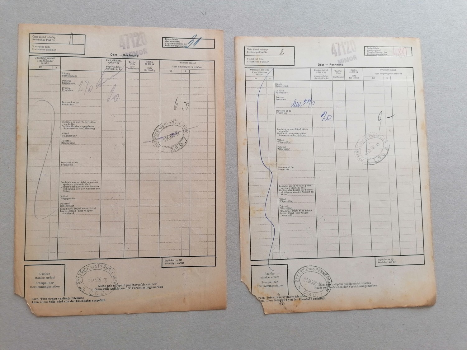 36 (ggq) Rozměr 21 x 30 cm 2 ks s kolky a s razítky