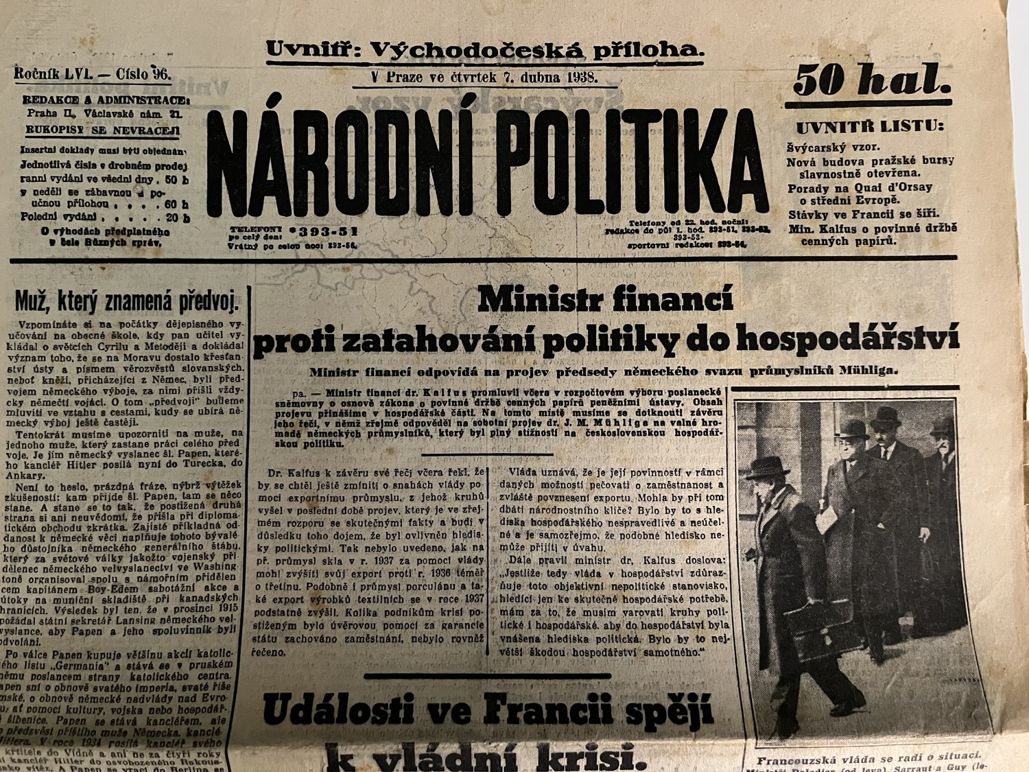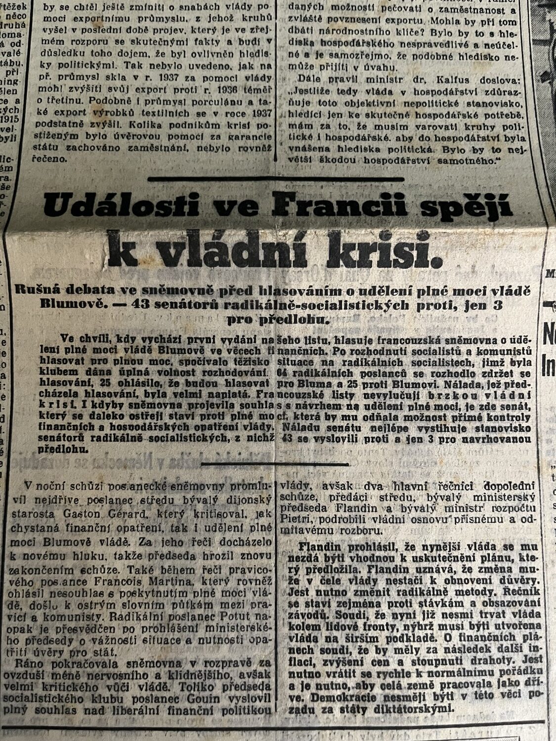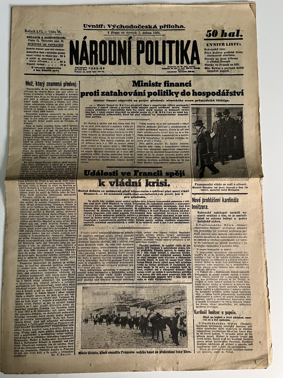 (hhj 6) Rozměr: 32 x 47 cm. Z obsahu: Ministr financí proti zatahování politiky do hospodářství. Události ve Francii spějí k vládní krisi. Nová prohlášení kardinála Innitzera ad. 12 stran.
