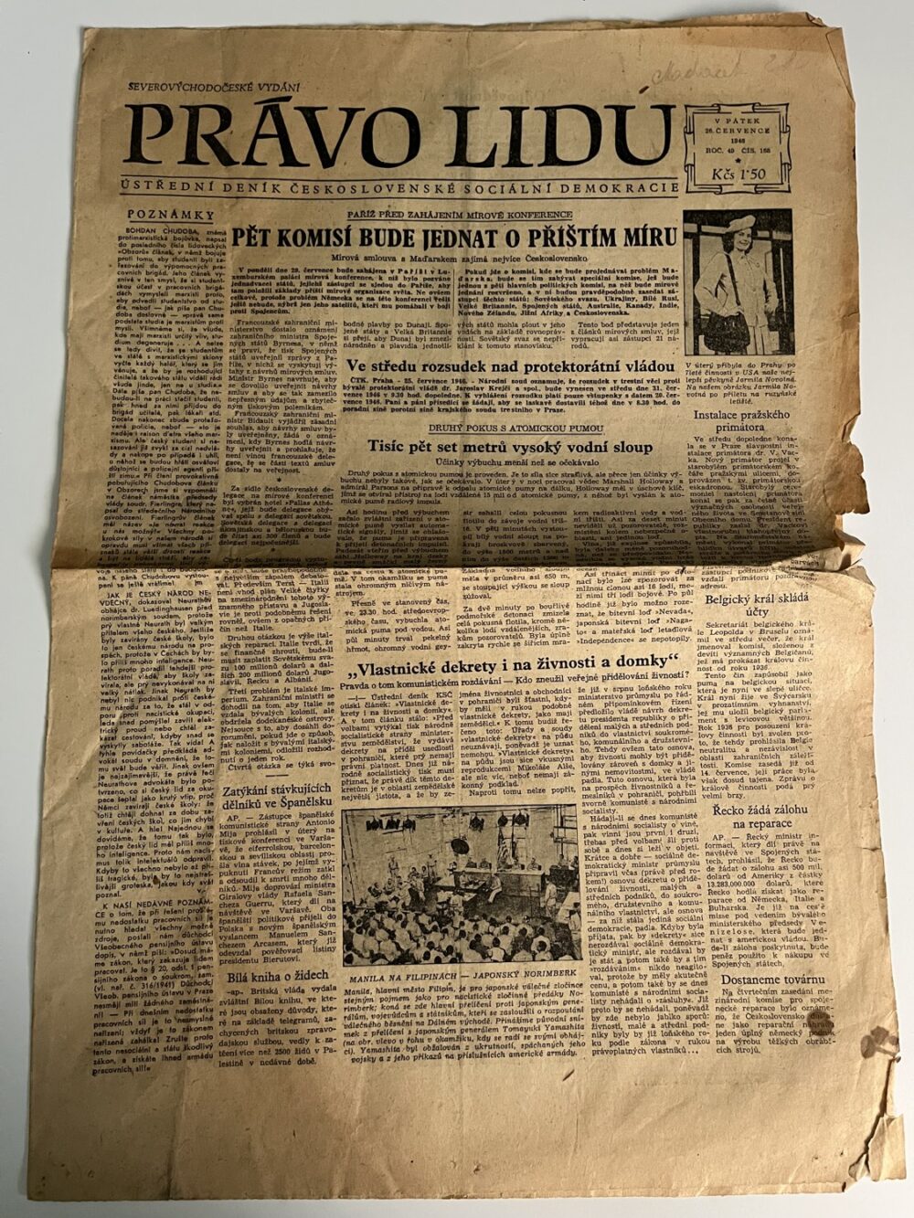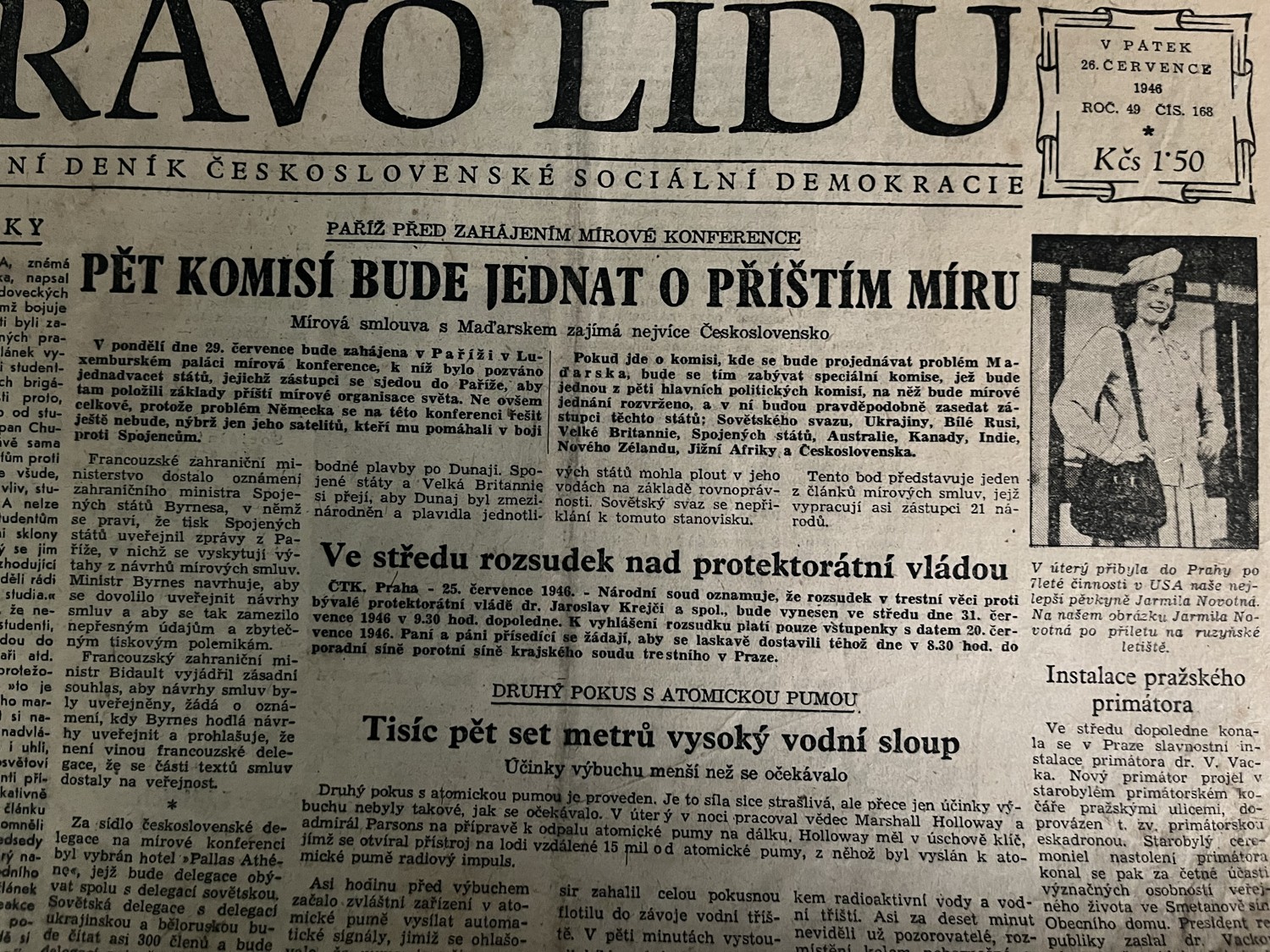 Noviny Právo lidu Paříž před zahájením mírové konference r.1946