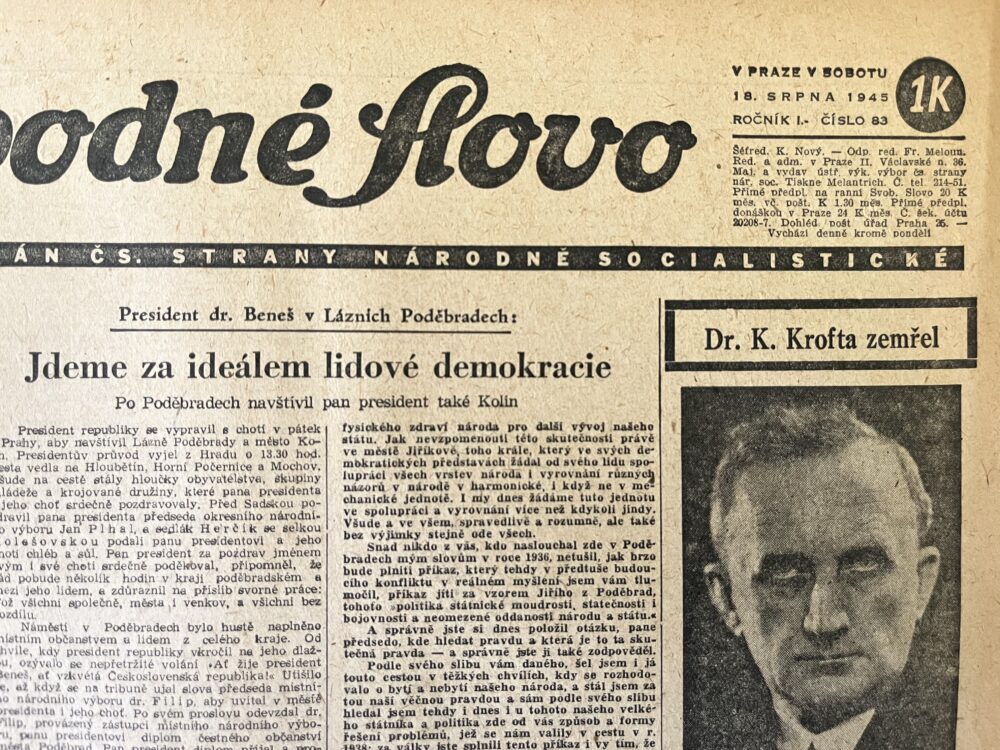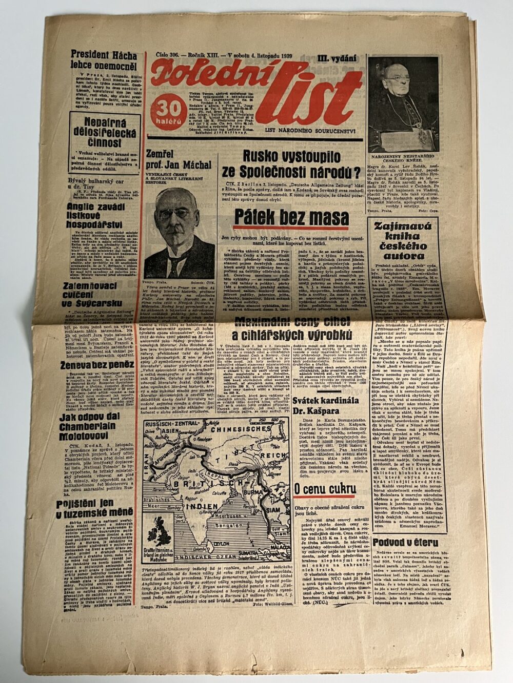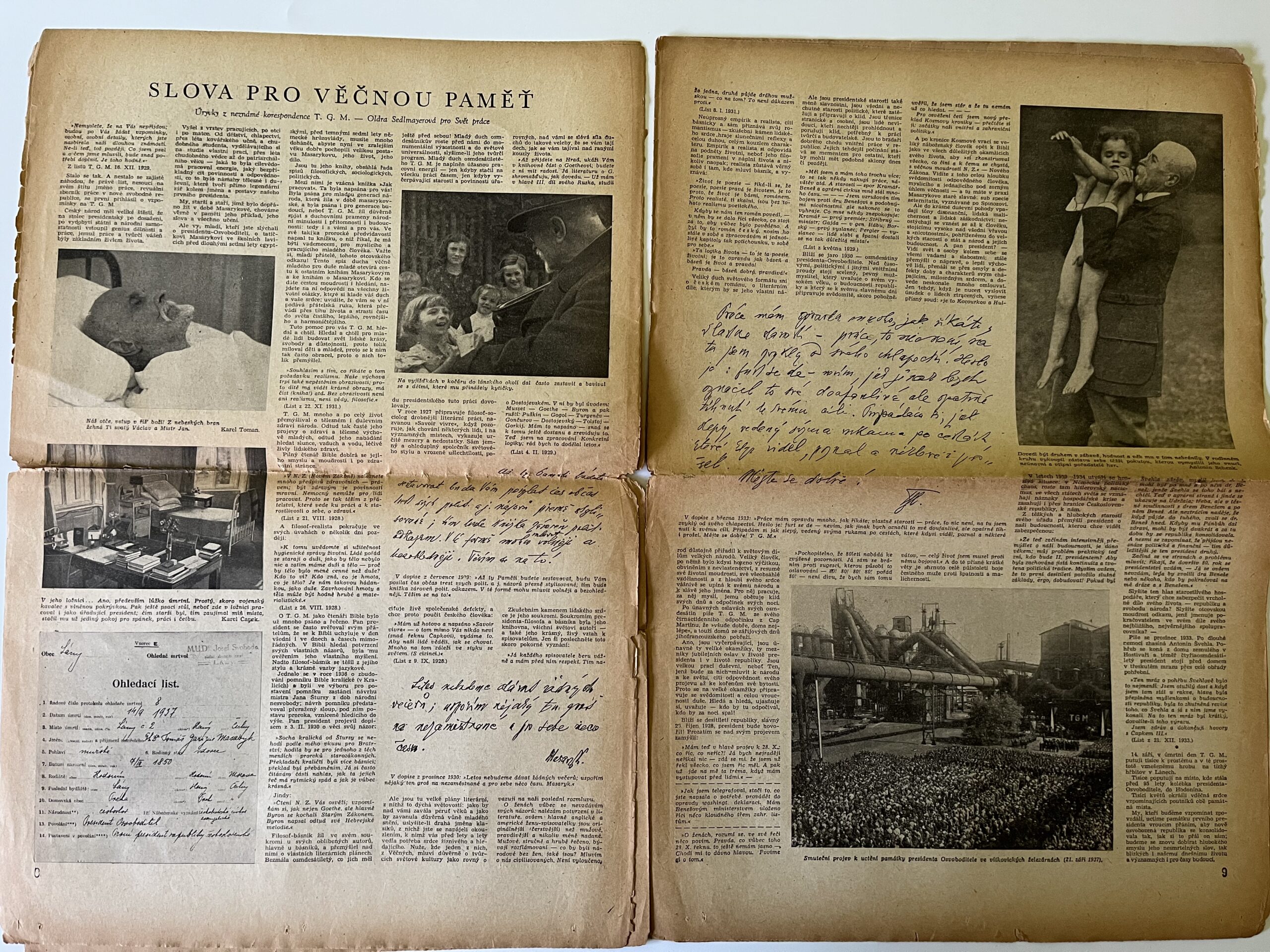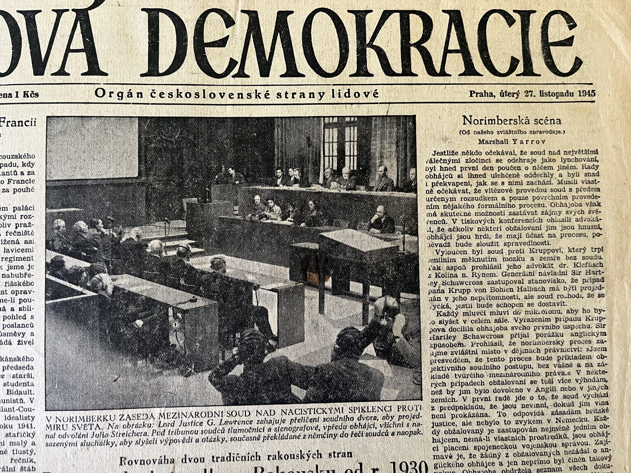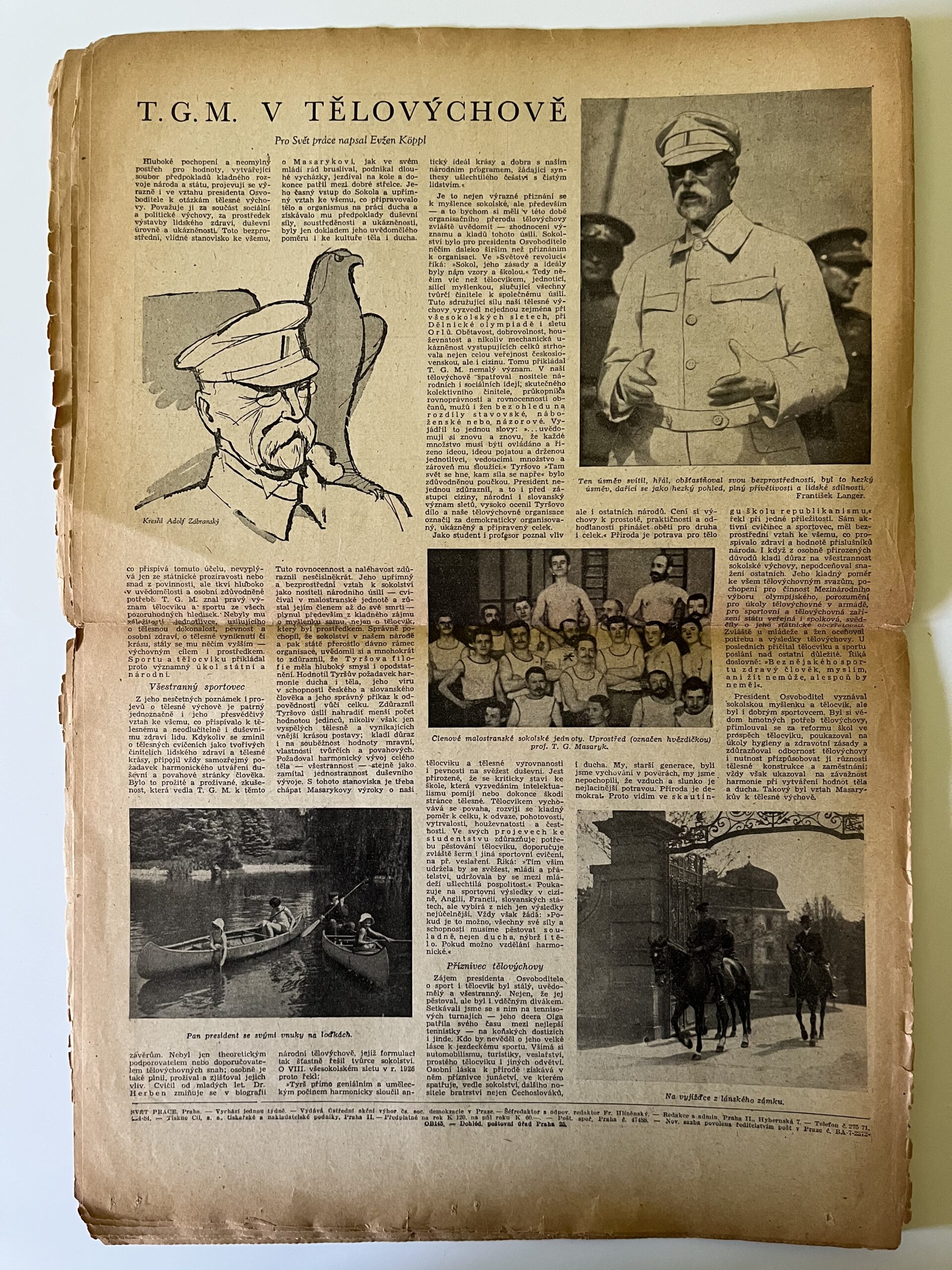 7 (K3-3) MY 45,Svobodné Slovo,Svět práce,Lidová demokr. Rozměr jedné strany 32 x 47 cm. Celek novin obsahuje Svět práce 13.září 1945 – Právo a revoluce. Masarykův odkaz. Věrni Masarykovým ideálům. T.G.M v tělovýchově…aj. 8 listů. 2 x Lidová demokracie 19.srpna 1945 Mobilisace všech pracovních sil…aj. 1 list. 27.listopadu 1945 První svobodné volby v Rakousku od r.1930. Norimberská scéna…aj. 1 list. 3 x Svobodné Slovo – První československé volby v říjnu. Buď spolupráce nebo zničení světa…aj. 4 strany. Svobodné Slovo 18.srpna 1945 – Jdeme za ideálem lidové demokracie. Poselství amerických krajanů národu…aj. 4 strany. Svobodné Slovo 21.srpna 1945 – Národ oslavil úspěch žní. Vlastenec Ladislav Rašín…aj. 4 strany. 2 x MY45 15.prosince 1945 – Deset let. Pro stát a národ…aj. 12 stran, hezký stav. MY45 20.října 1945 – Na okraj dní. Volby a okolo nich. Výstavba Slovenska je věcí mládeže…aj.6 stran, zachovalý stav. Některé noviny jsou v přehybu poškozené.