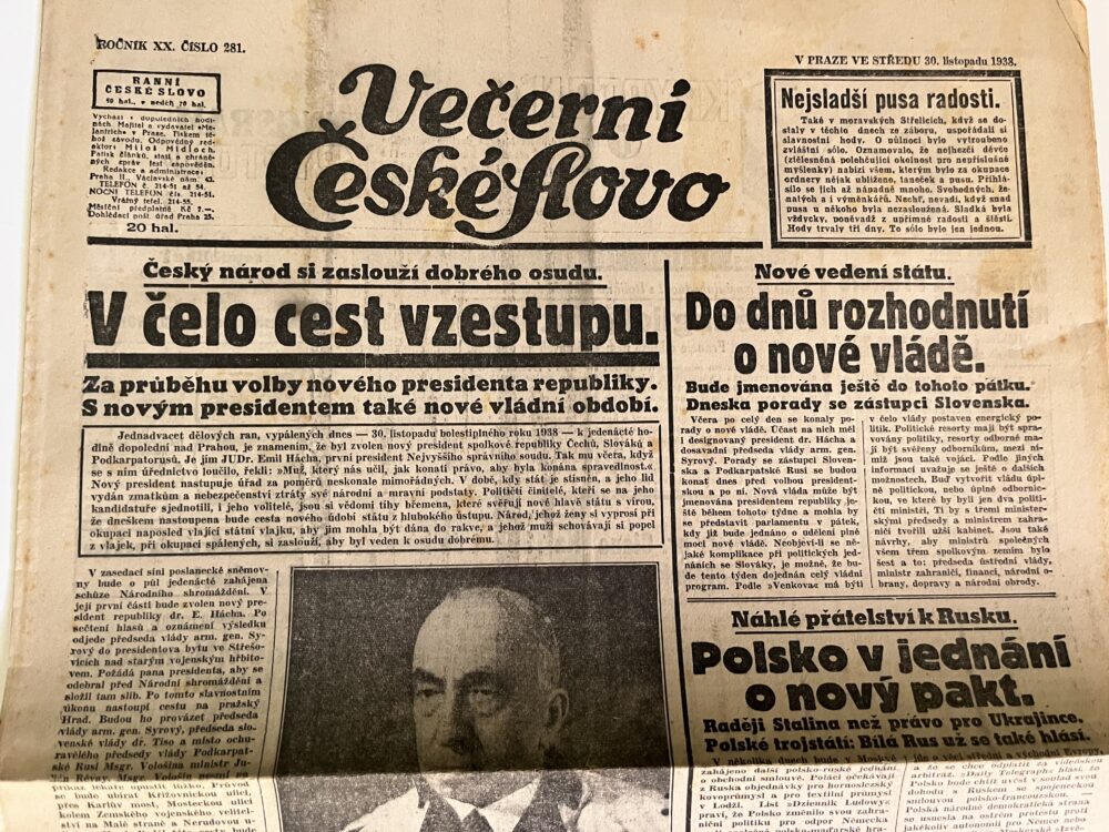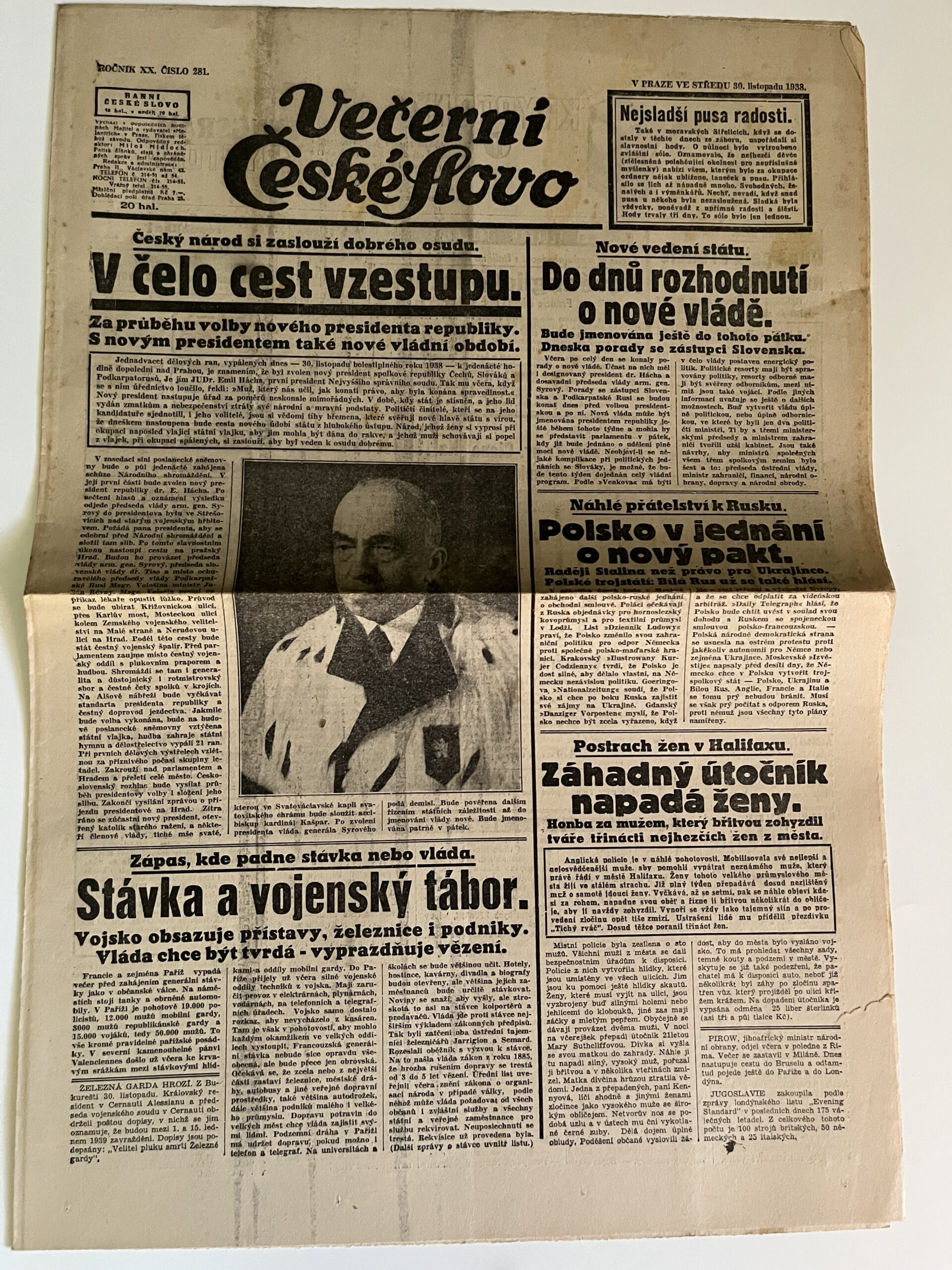 HomeObchodNoviny a časopisyNoviny Večerní České Slovo a Polední národní politika,1938 Hácha