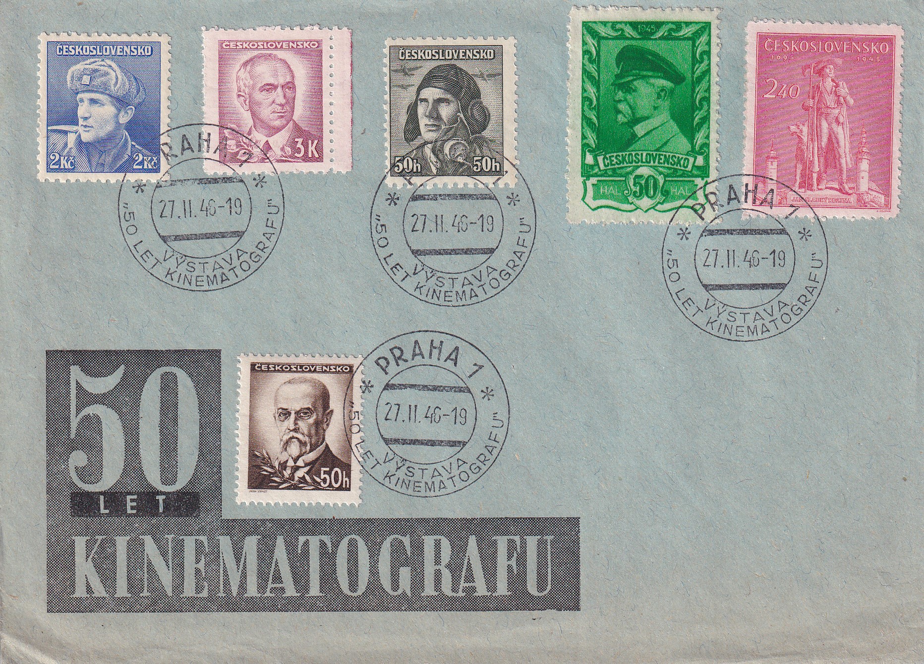 Obálka 50 let KINEMATOGRAFU, se známkami r.1946