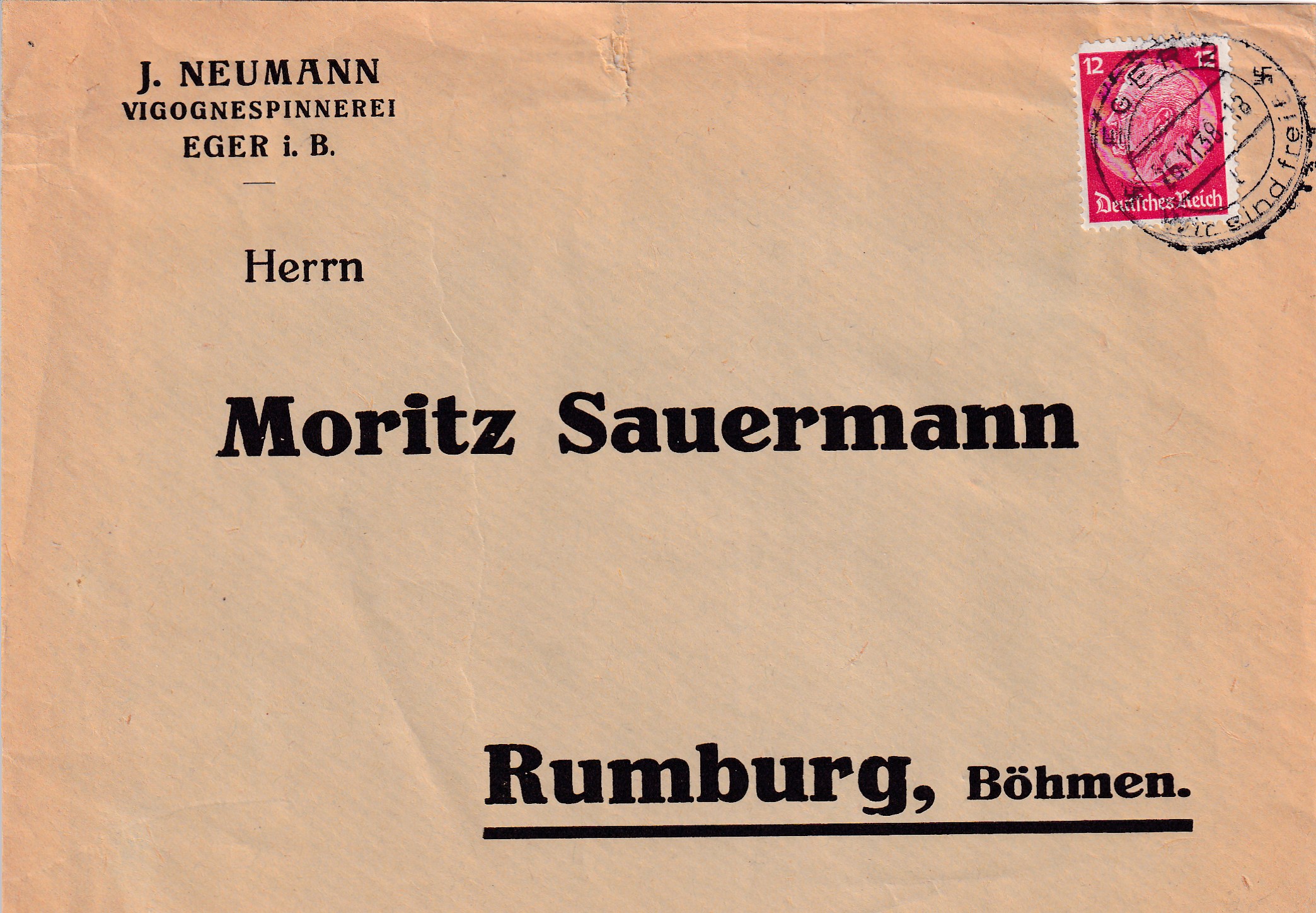 (ggj) Rozměr 17,5 x 13 cm, adresát – Moritz Sauermann, Rumburk